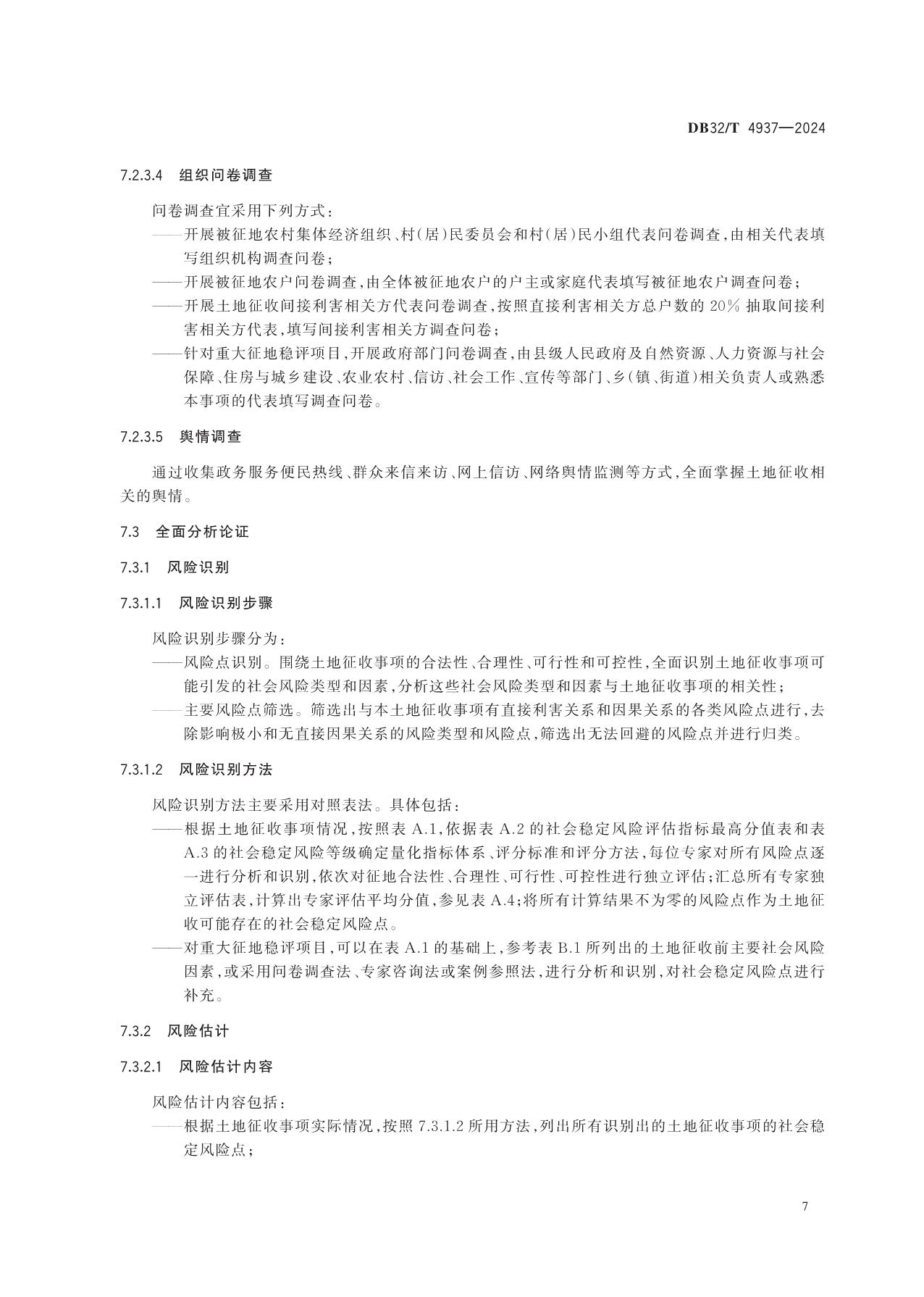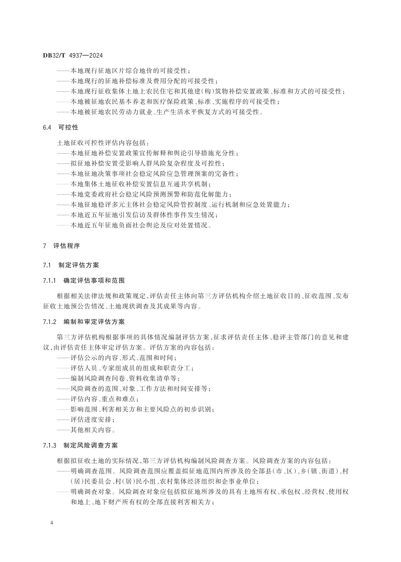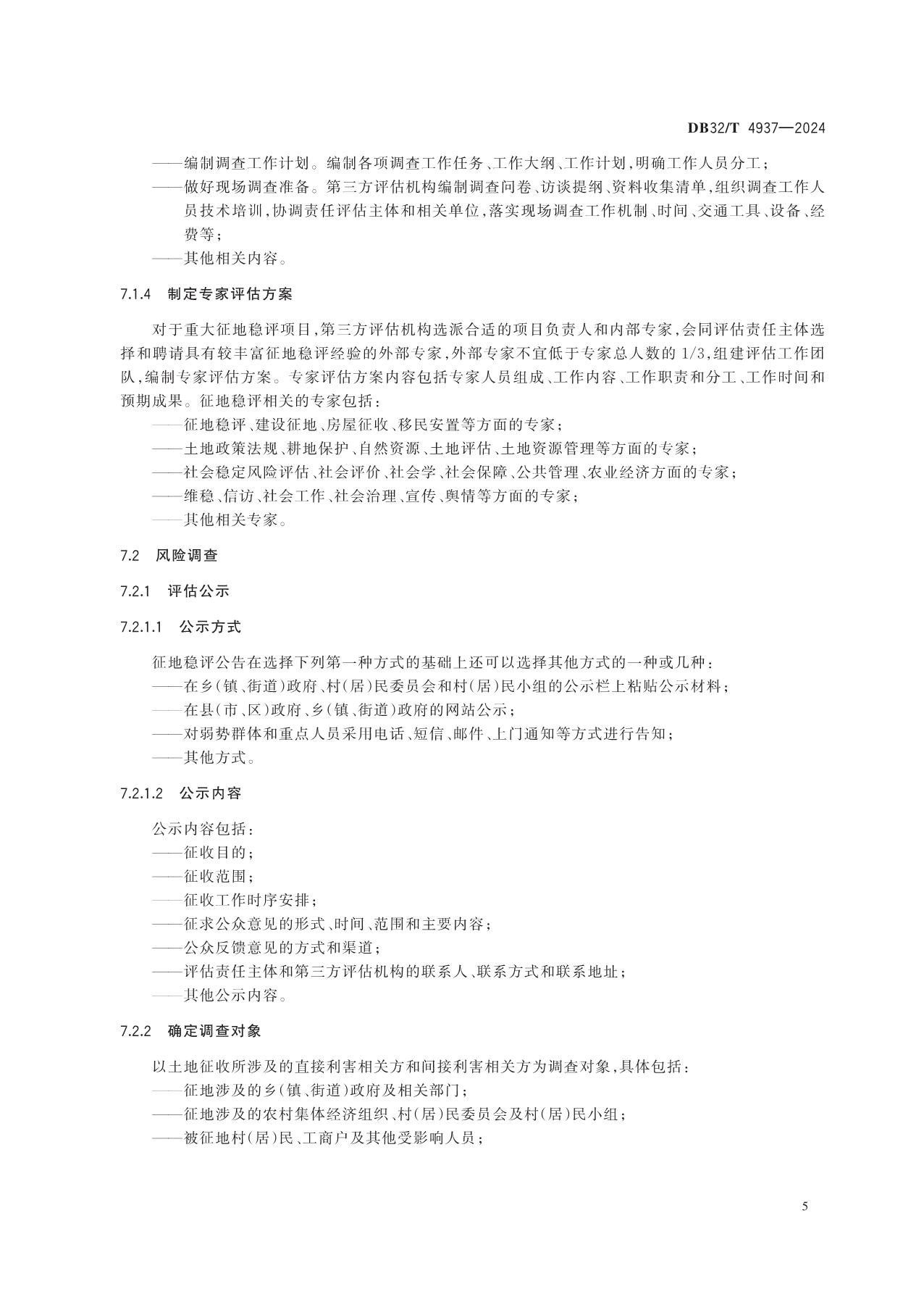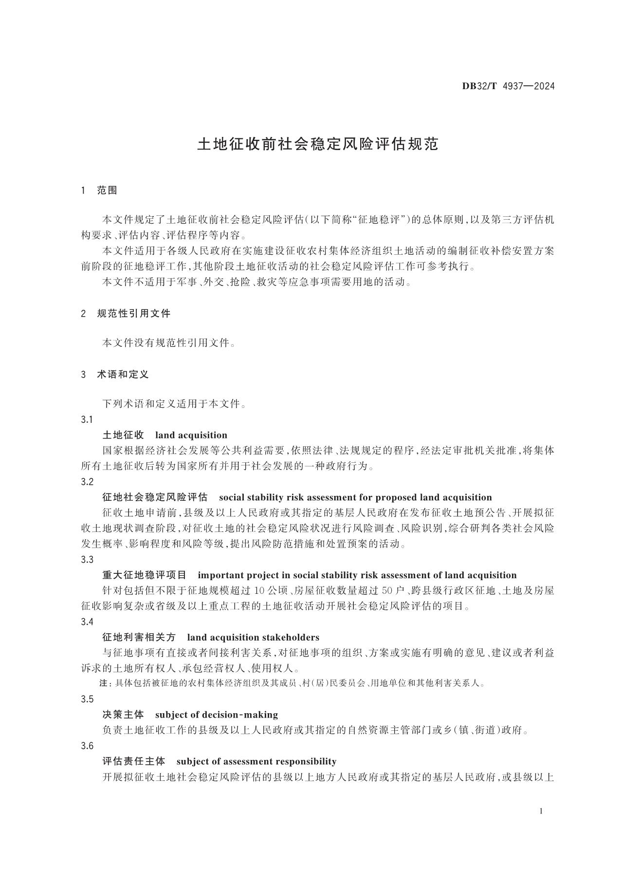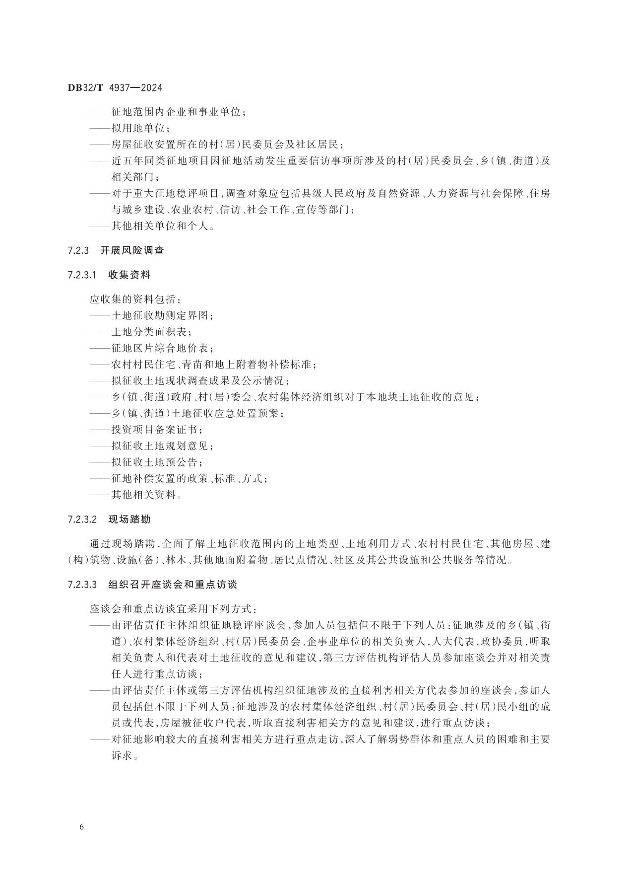 《土地征收前社会稳定风险评估规范》(DB32/T 4937-2024)