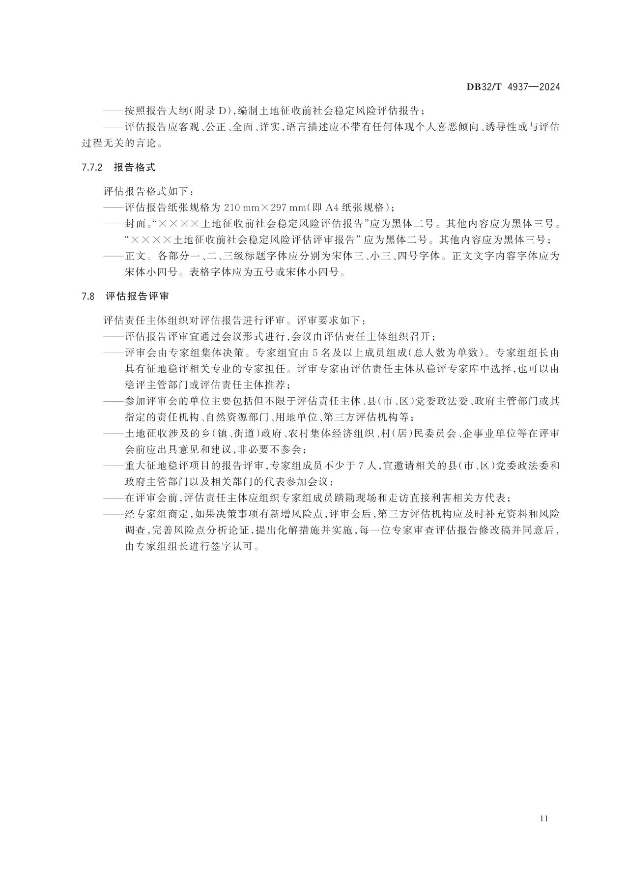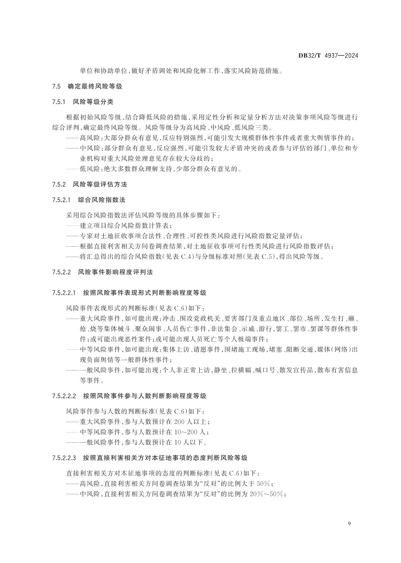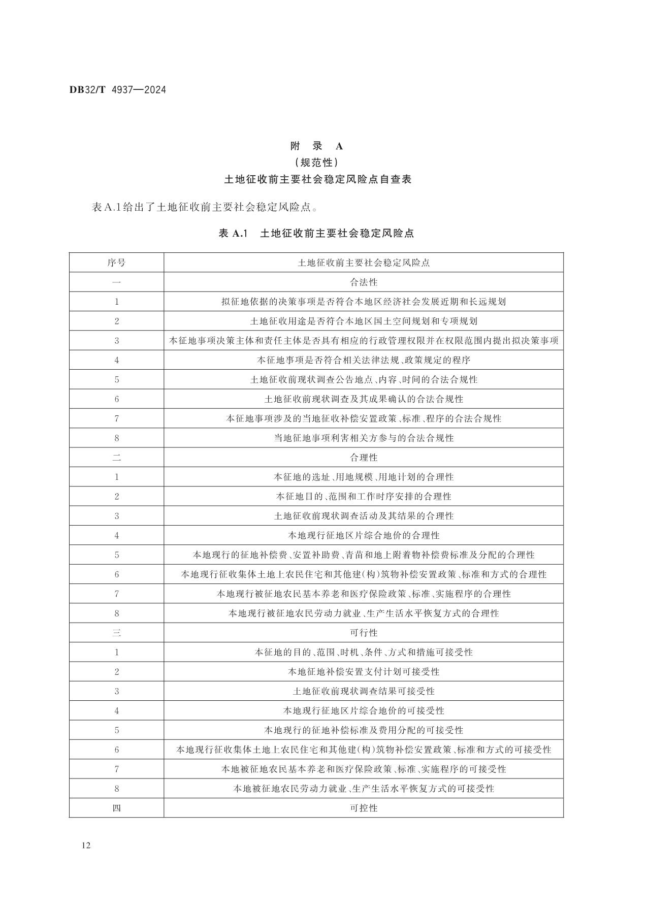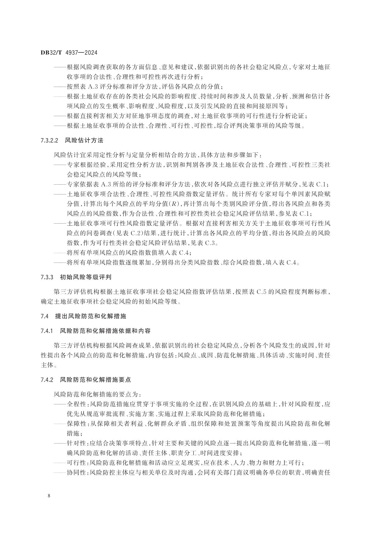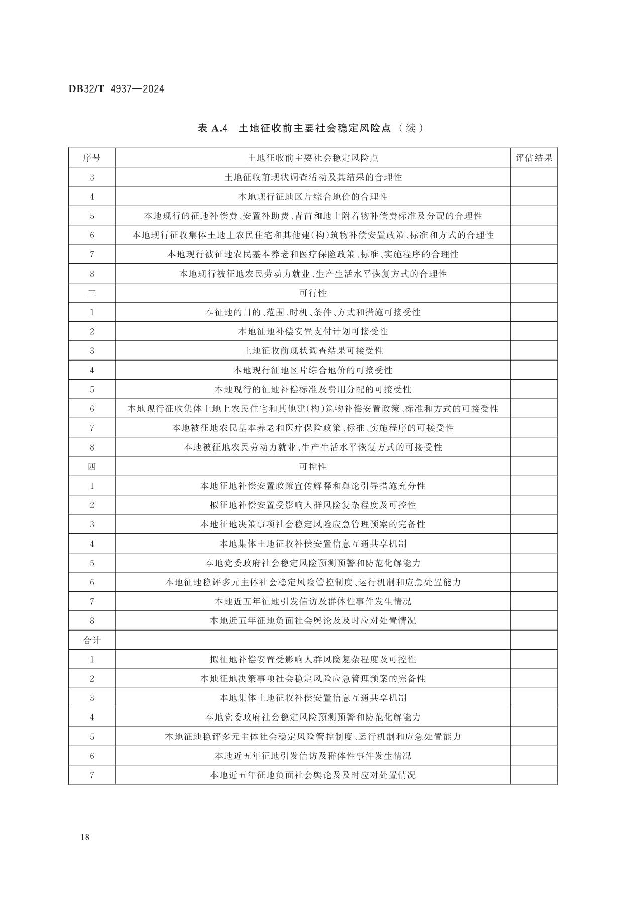 《土地征收前社会稳定风险评估规范》(DB32/T 4937-2024)