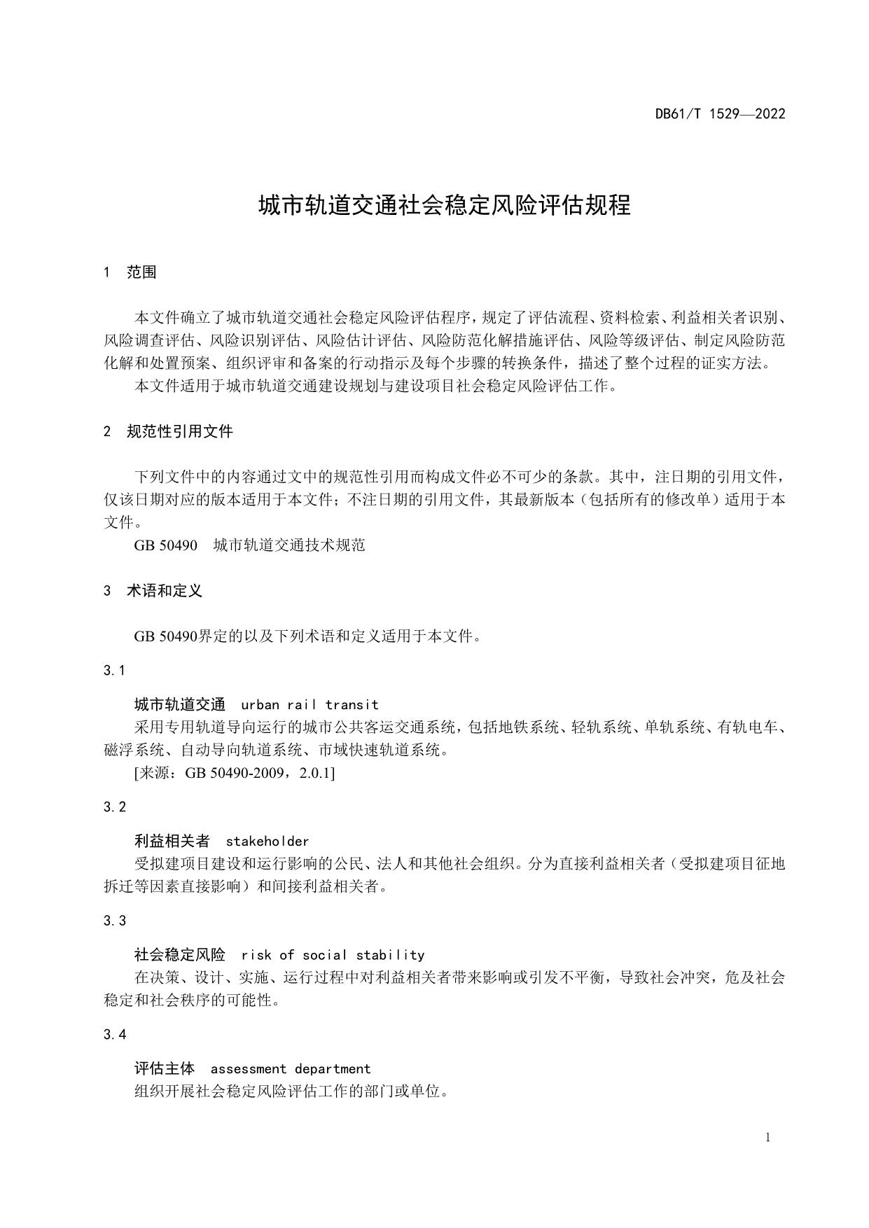 《城市轨道交通社会稳定风险评估规程》(DB61/T 1529-2022)