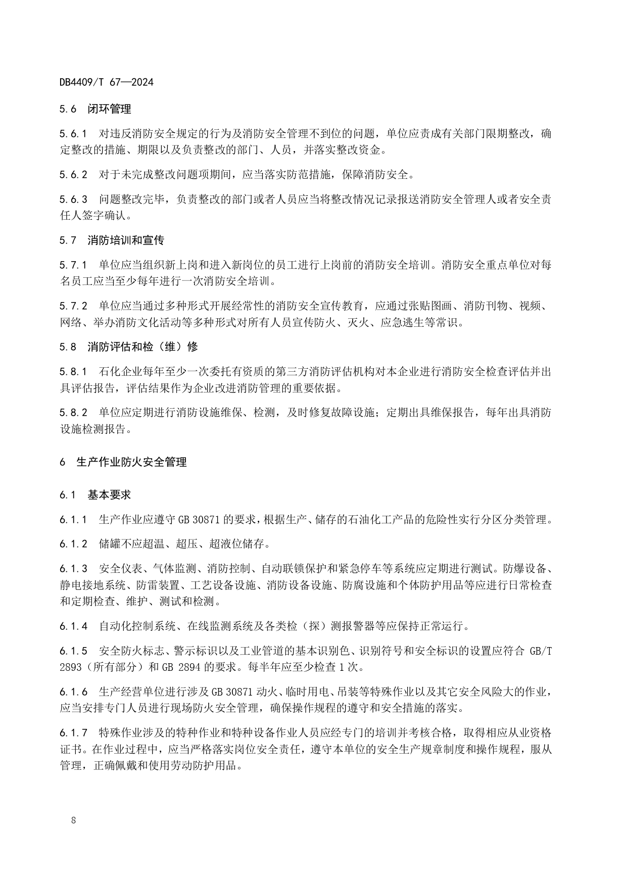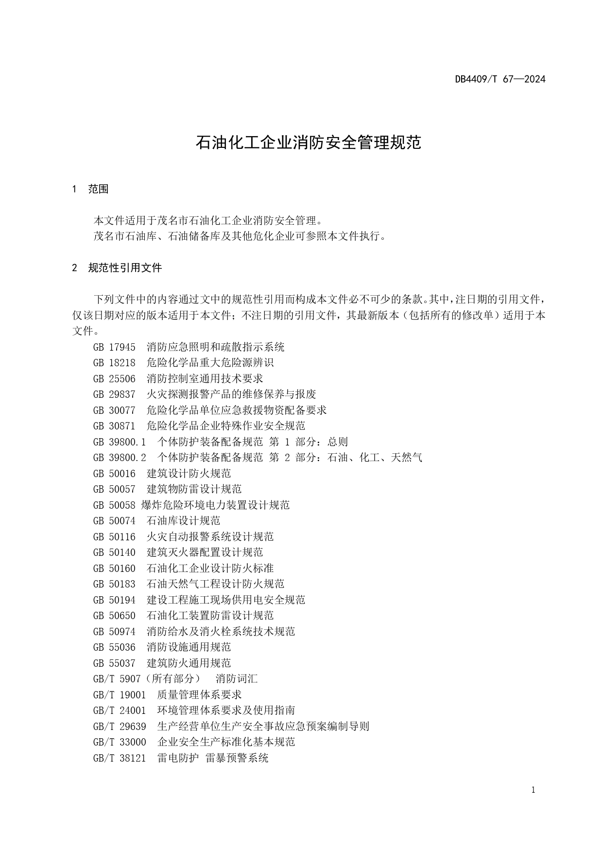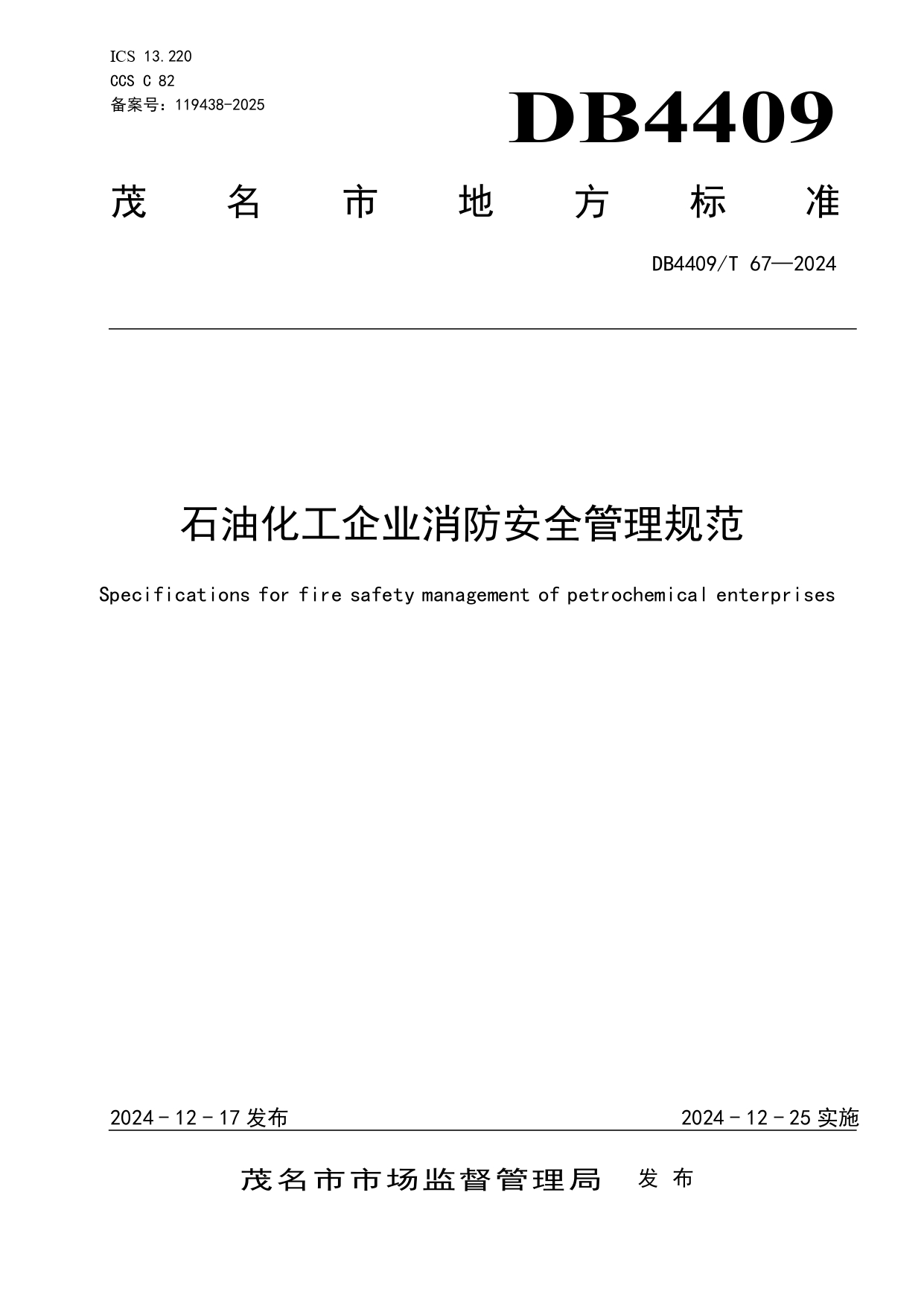 石油化工企业消防安全管理规范DB4409/T 67-2024
