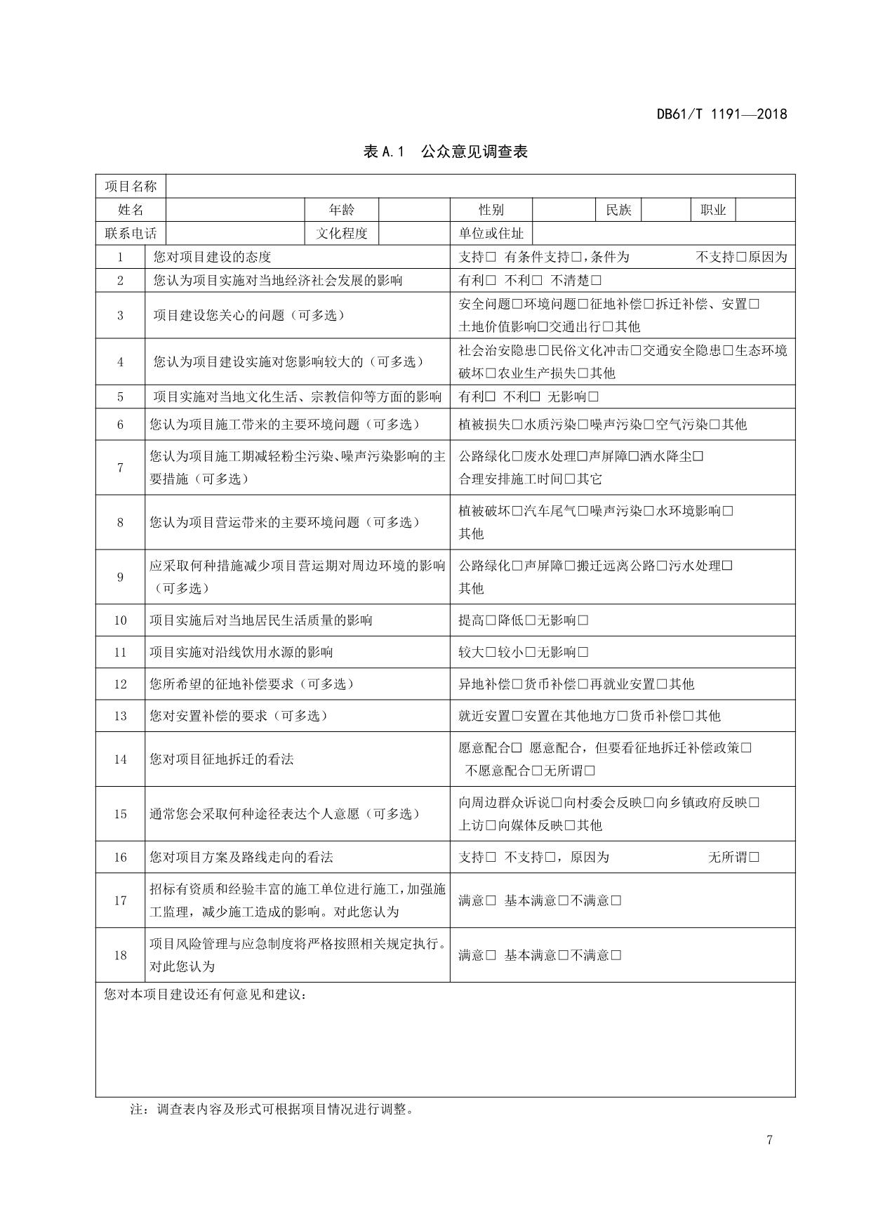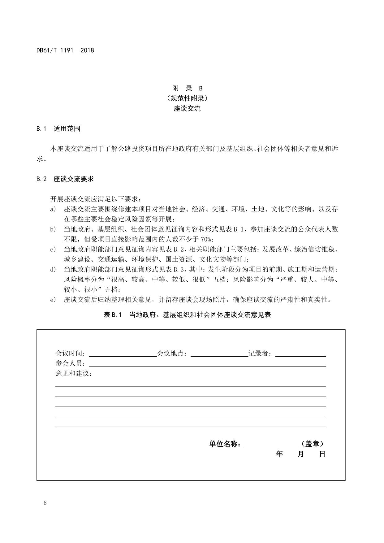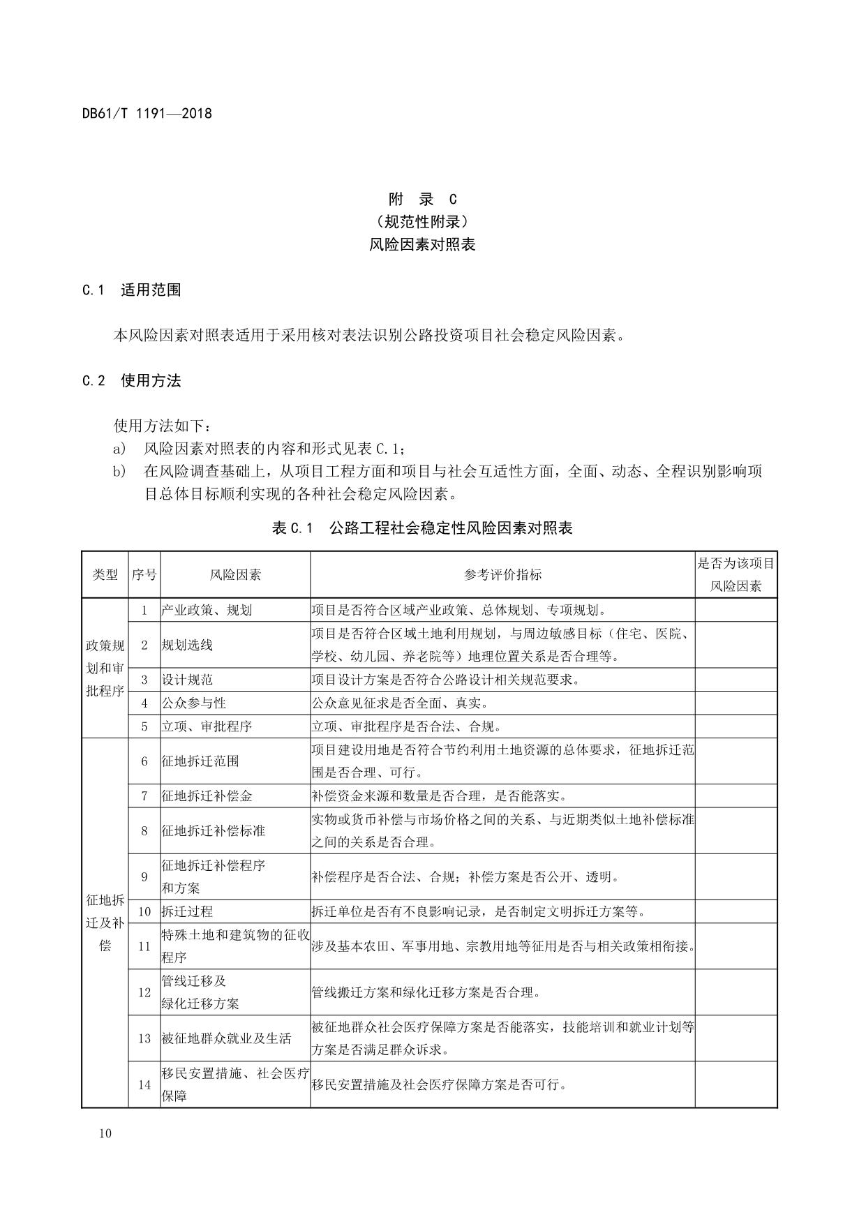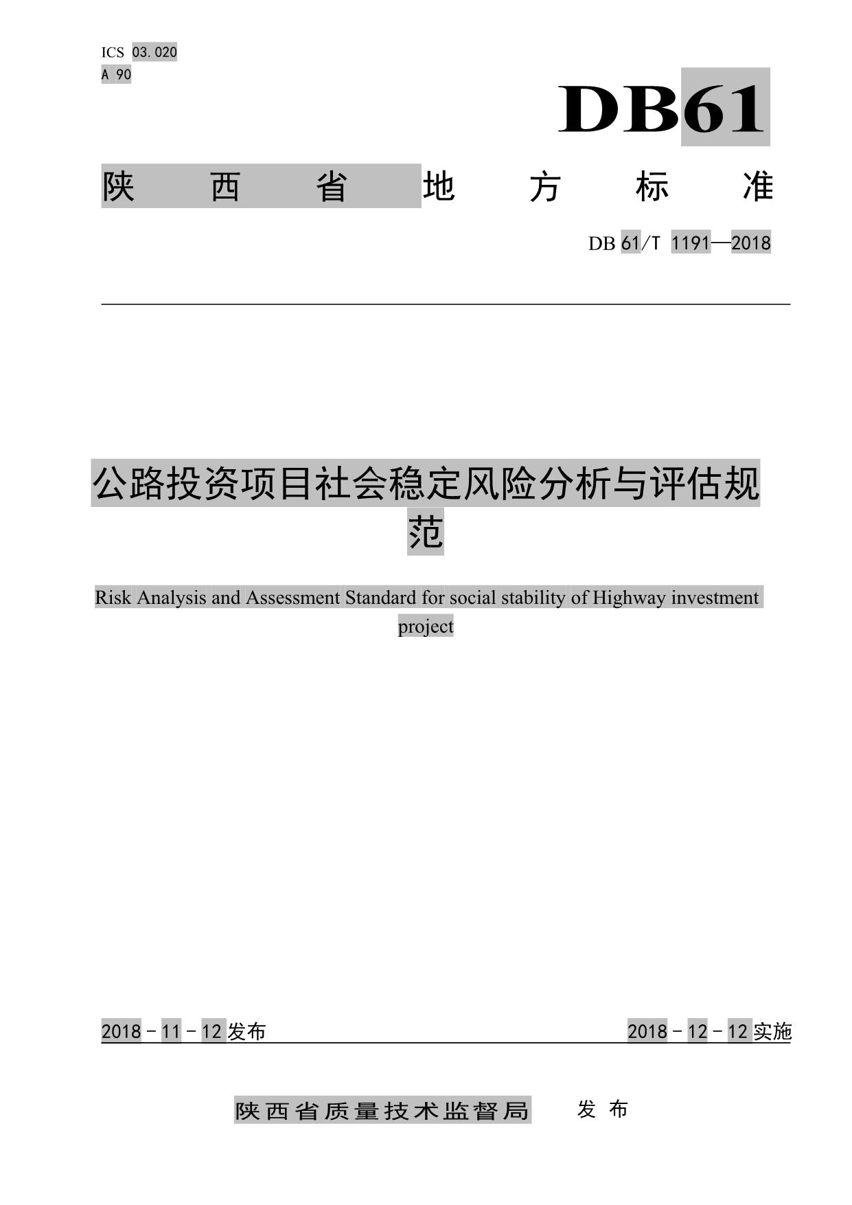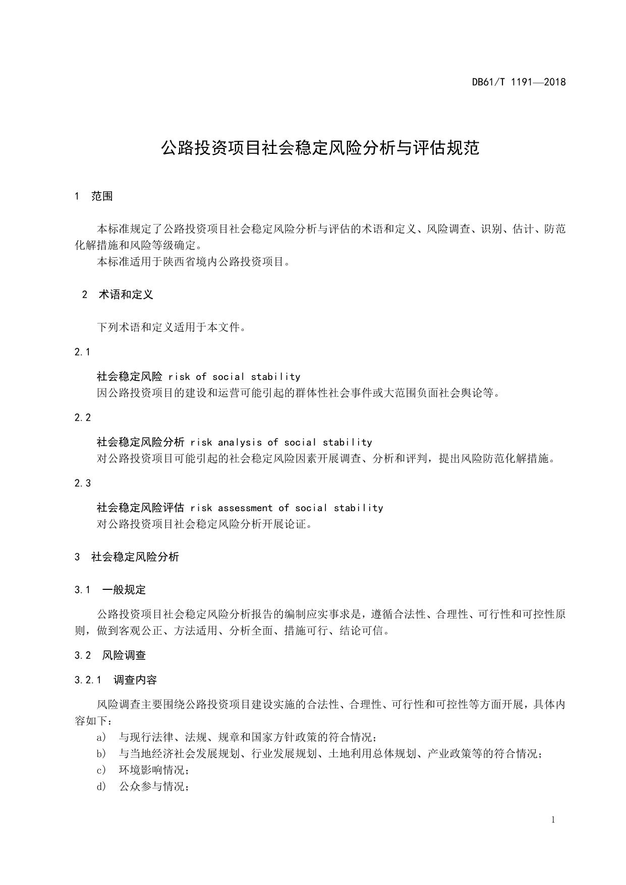 《公路投资项目社会稳定风险分析与评估规范》(DB61/T 1191-2018)