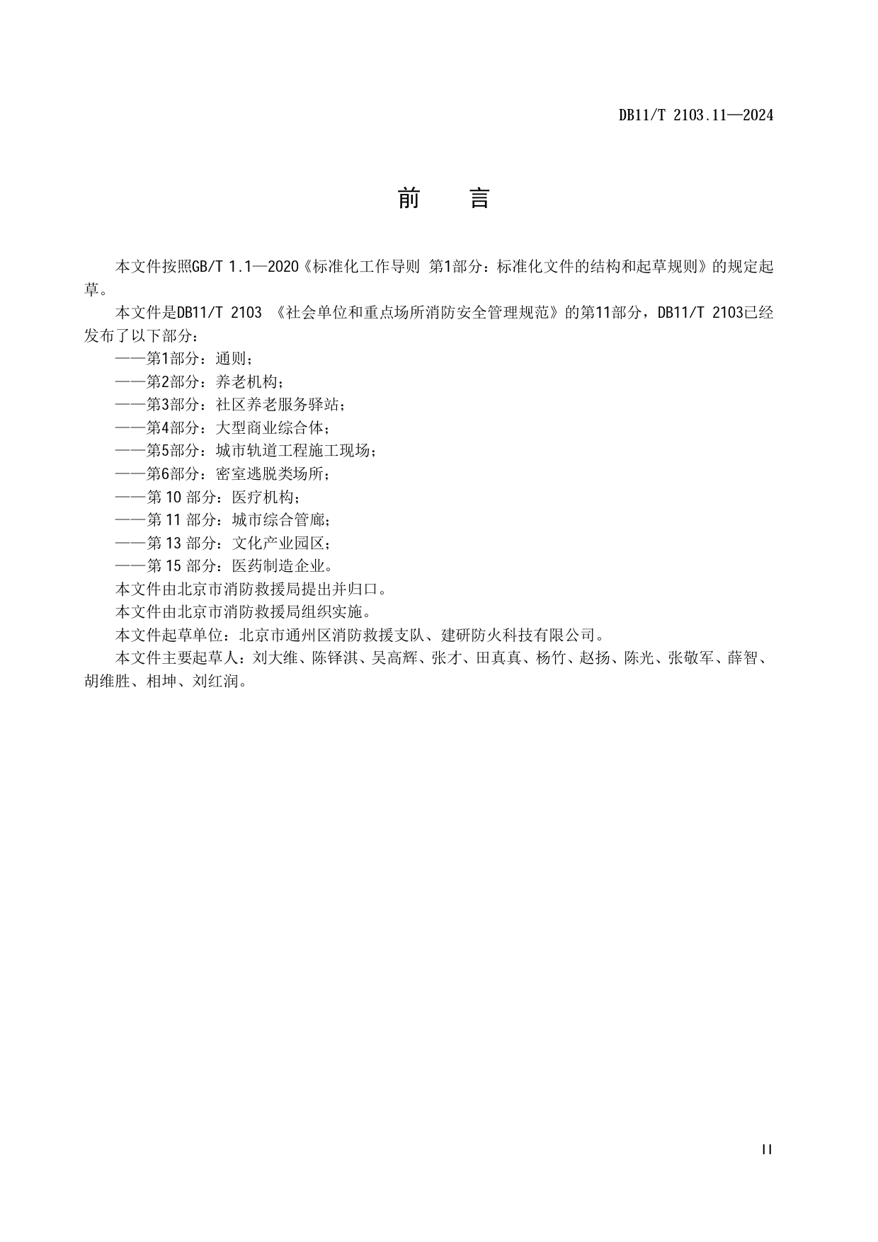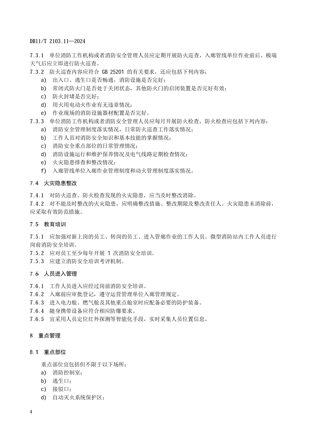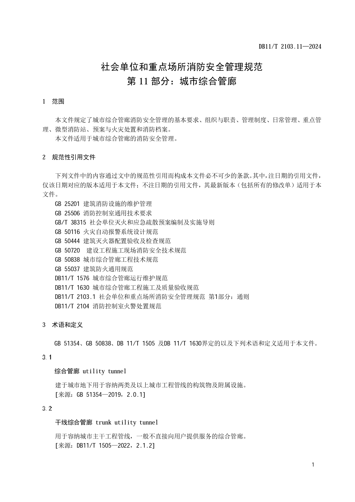 社会单位和重点场所消防安全管理规范 第11部分:城市综合管廊DB11/T 2103.11-2024