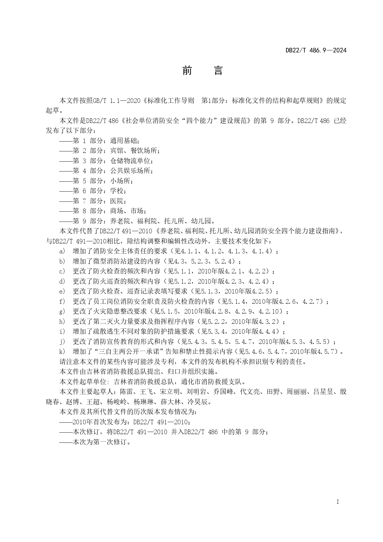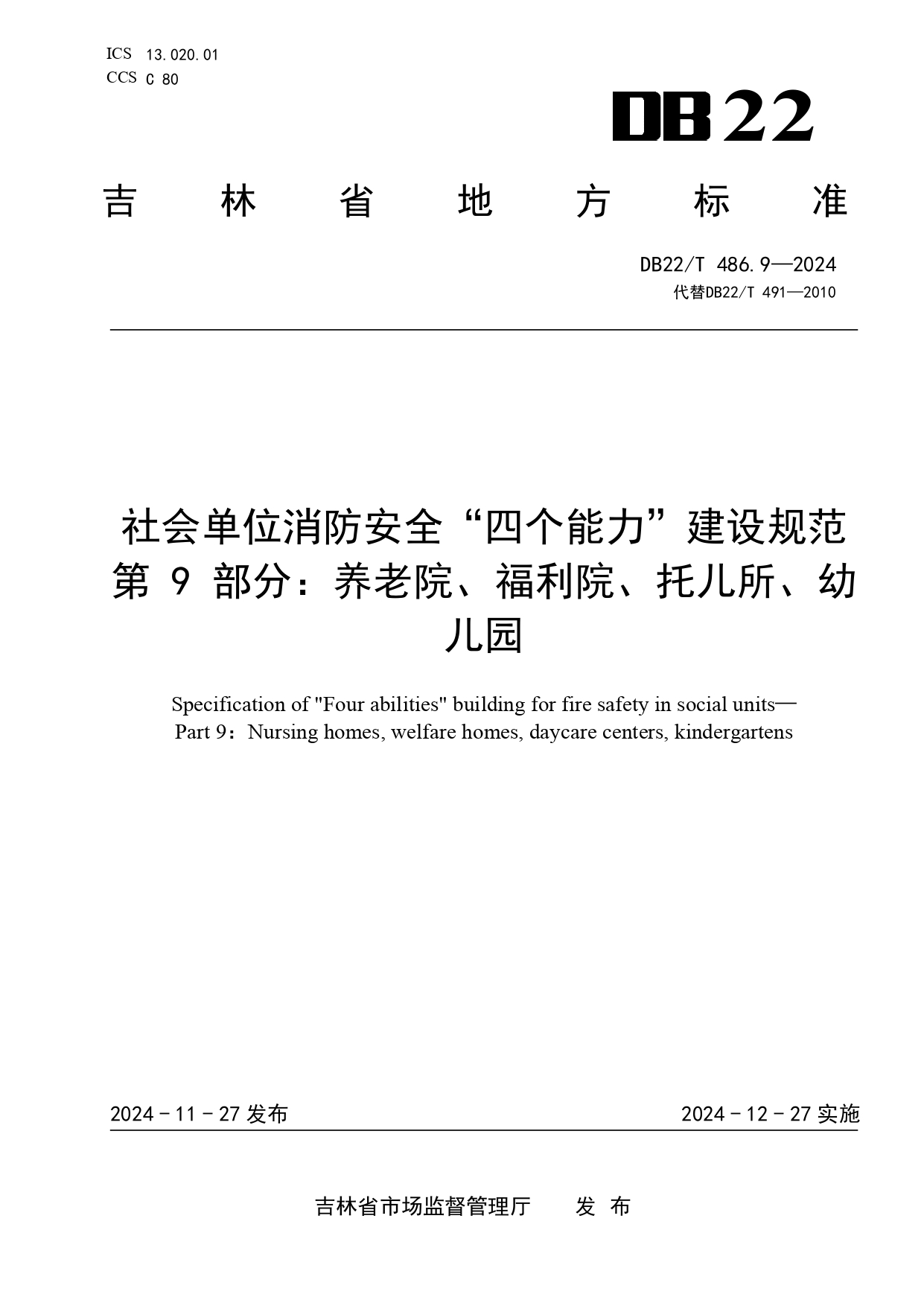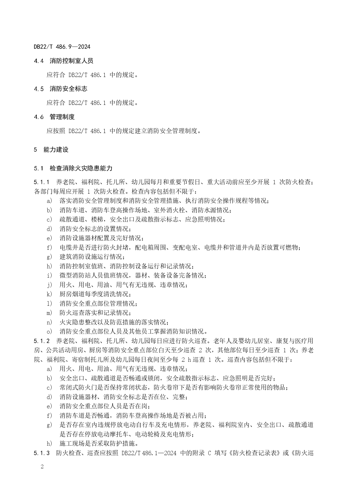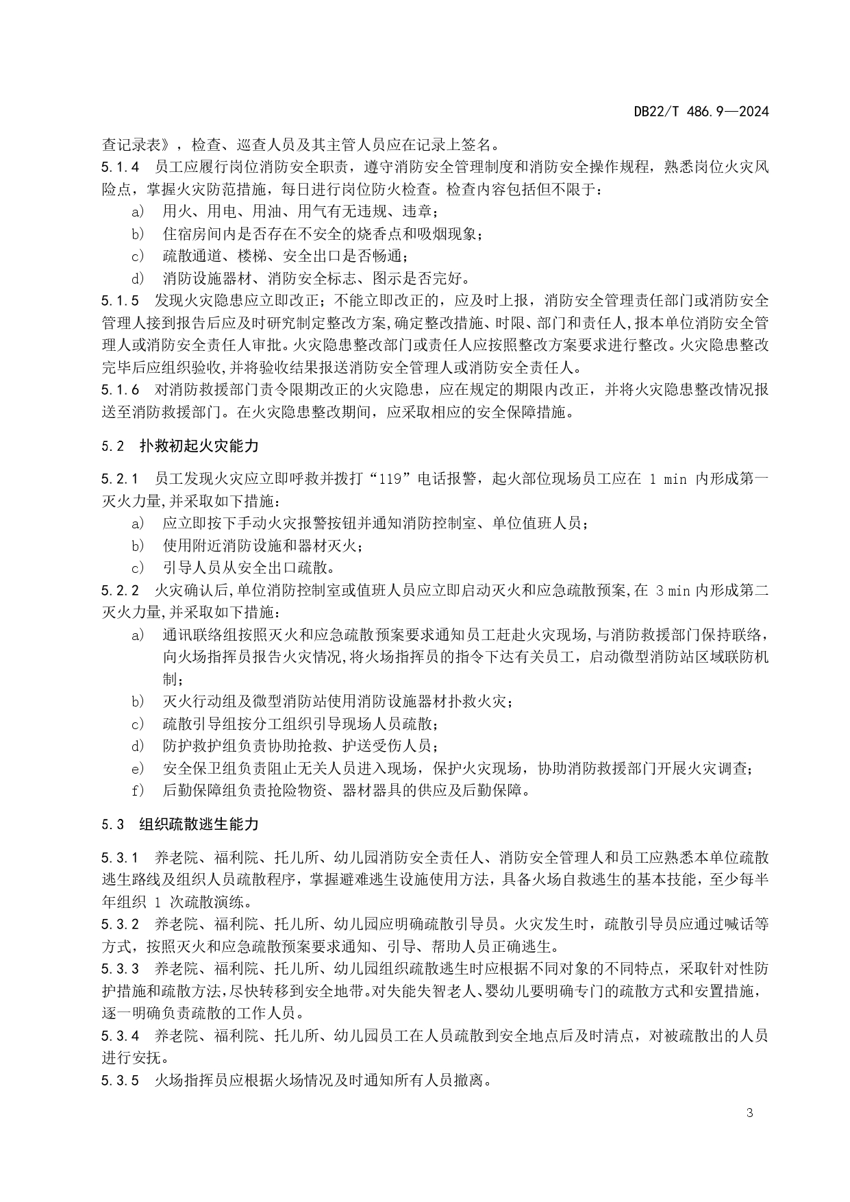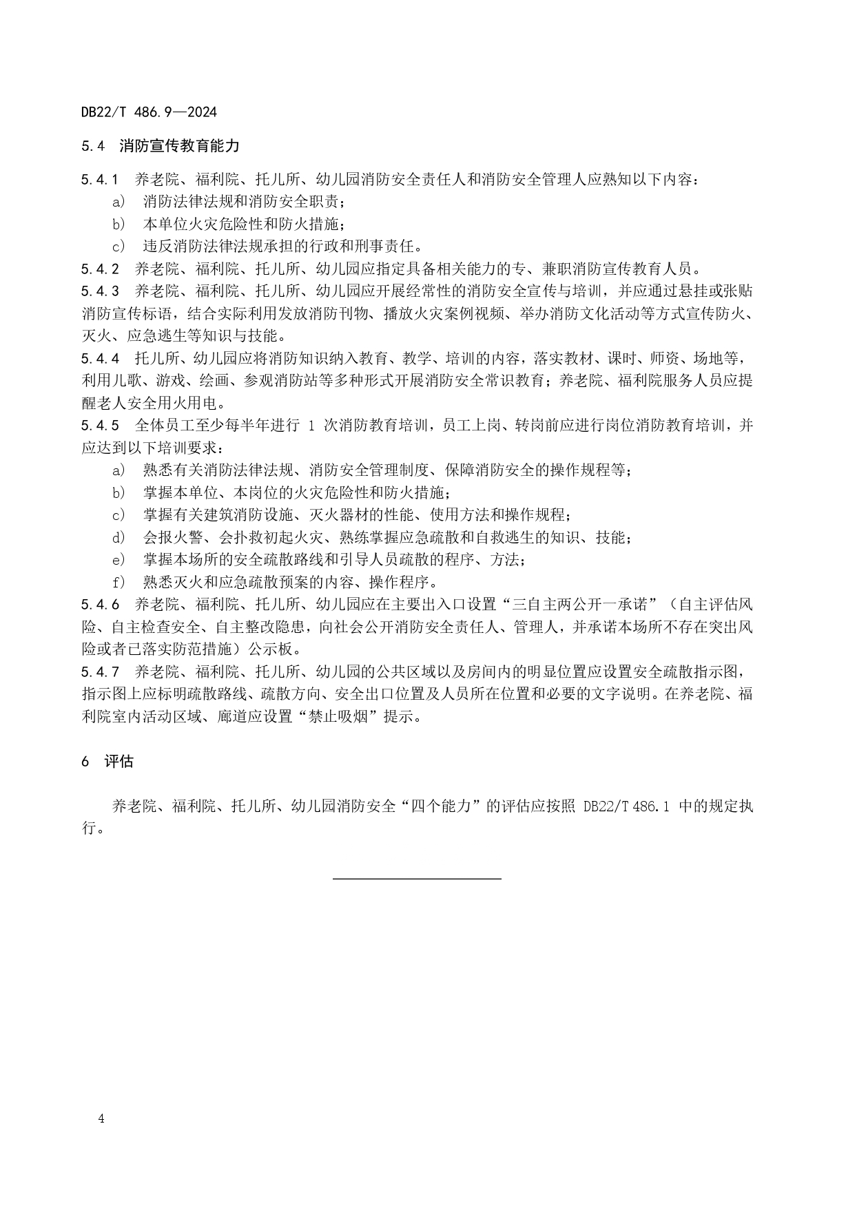 社会单位消防安全“四个能力”建设规范 第9部分:养老院、福利院、托儿所、幼儿园DB22/T 486.9-2024