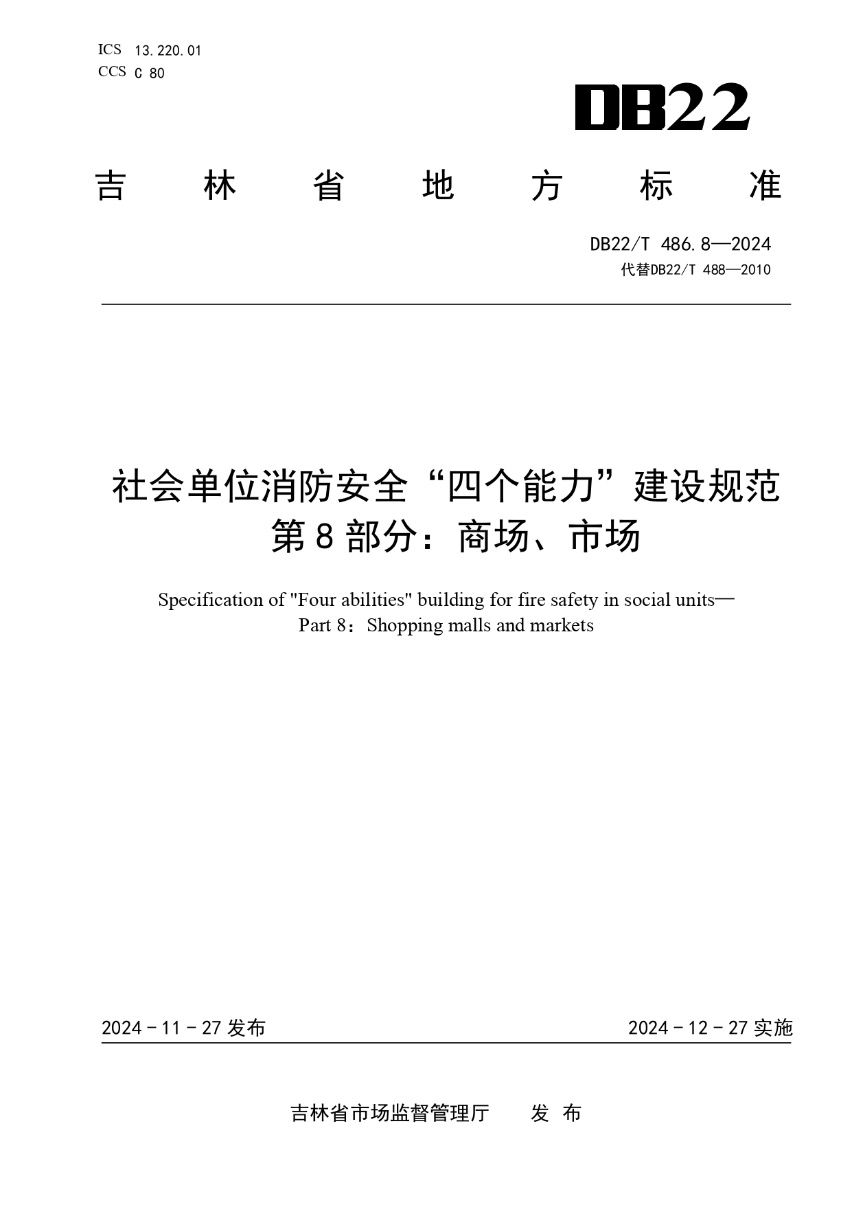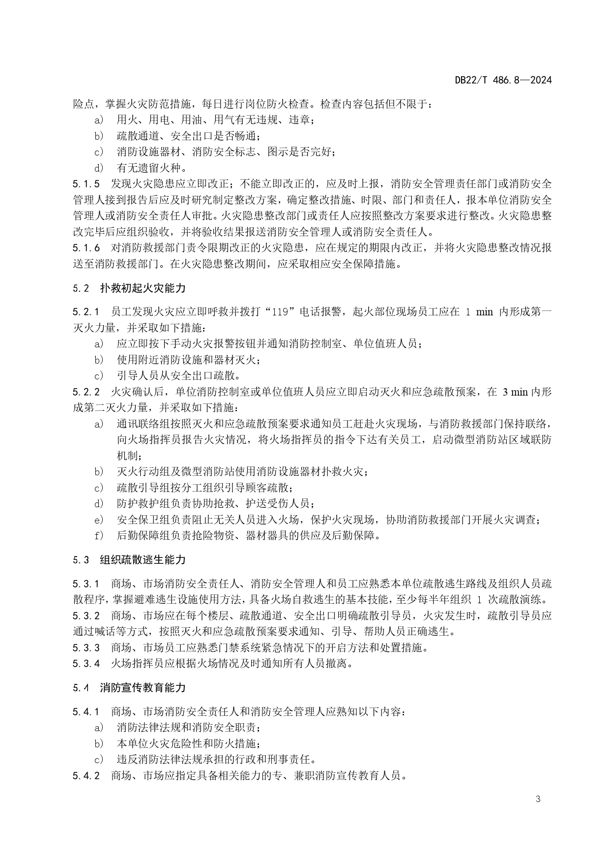 社会单位消防安全“四个能力”建设规范 第8部分:商场、市场DB22/T 486.8-2024