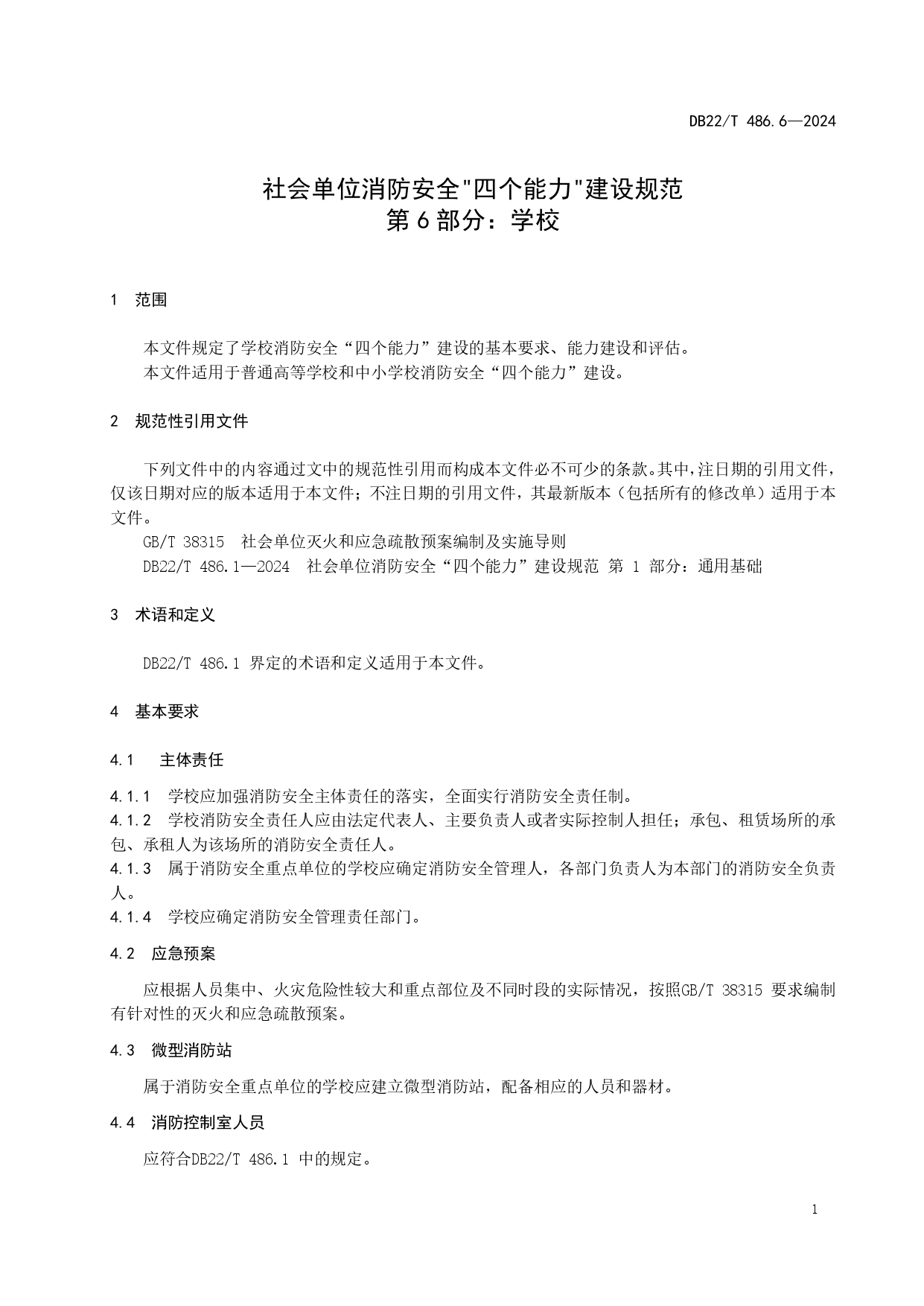社会单位消防安全“四个能力”建设规范 第6部分:学校DB22/T 486.6-2024