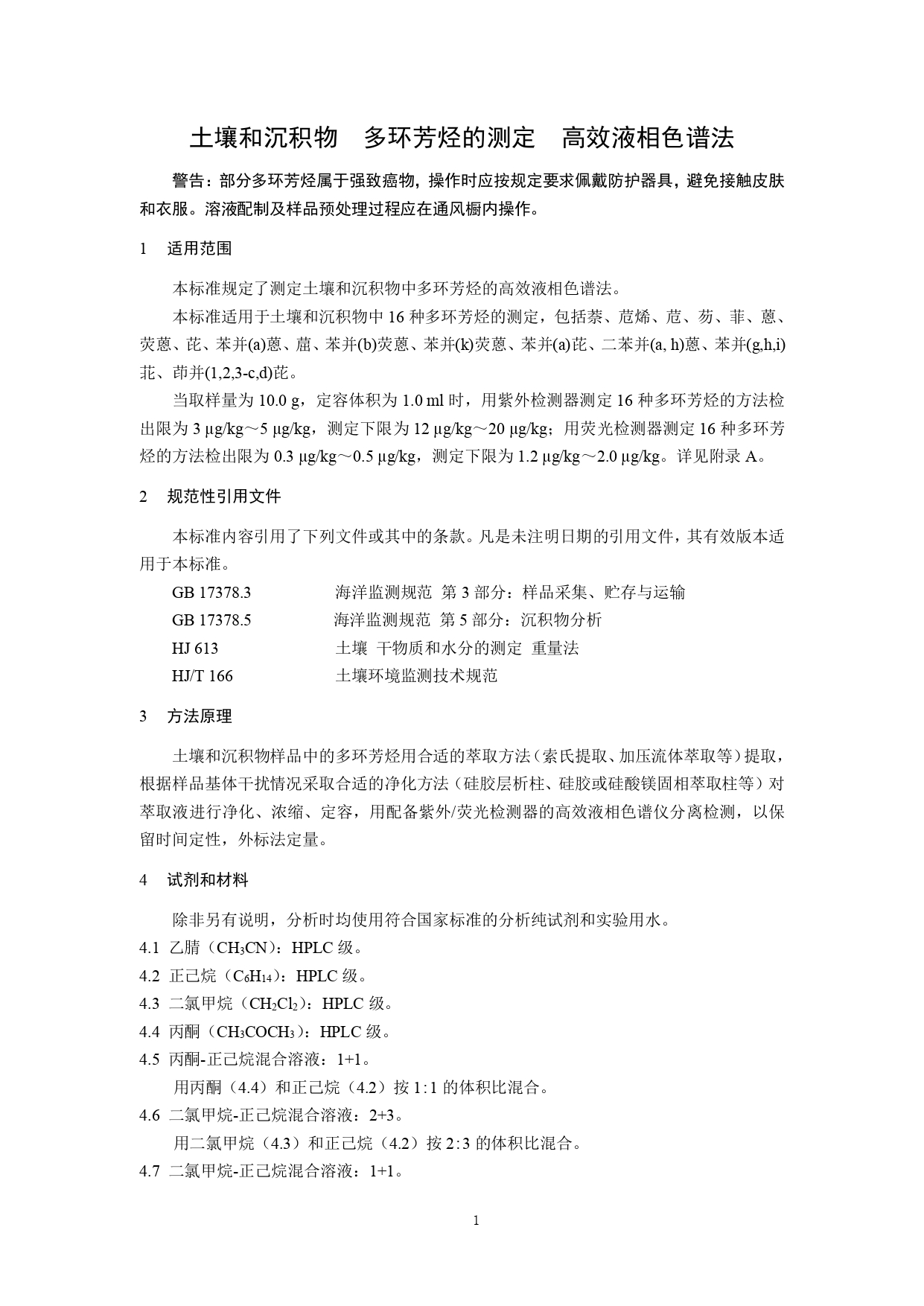 《土壤和沉积物 多环芳烃的测定 高效液相色谱法》(HJ 784-2016)
