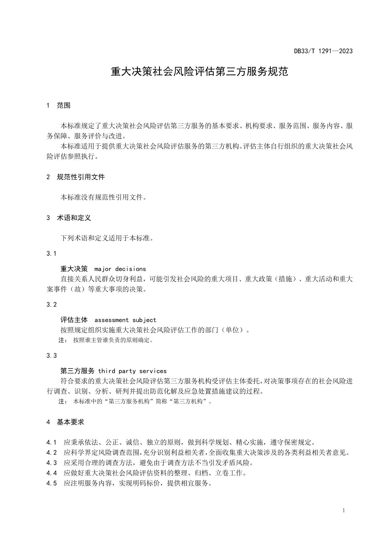 《重大决策社会风险评估第三方服务规范》(DB33/T 1291-2023)