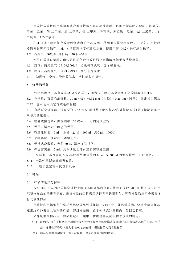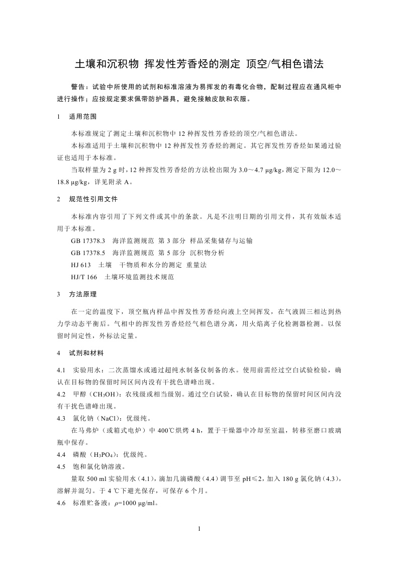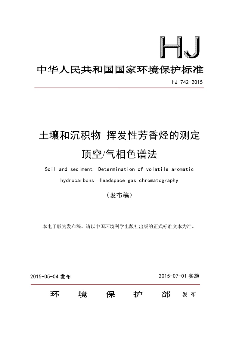 《土壤和沉积物 挥发性芳香烃的测定 顶空/气相色谱法》(HJ 742-2015)
