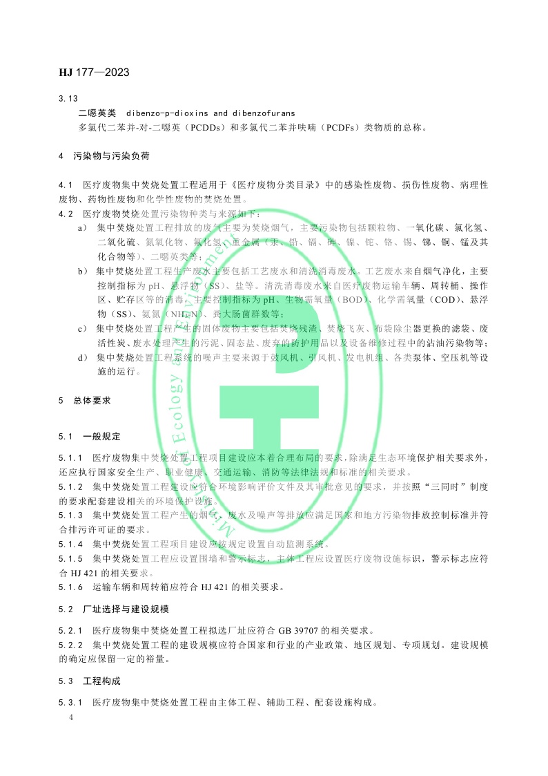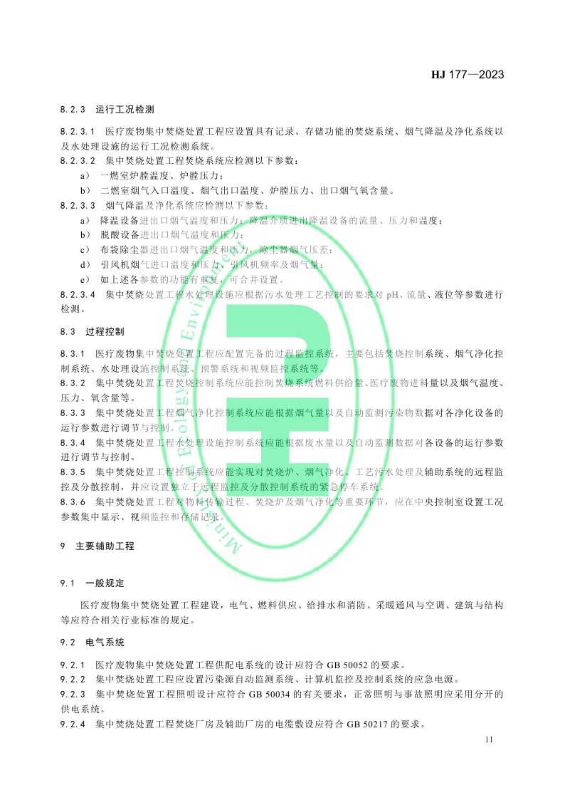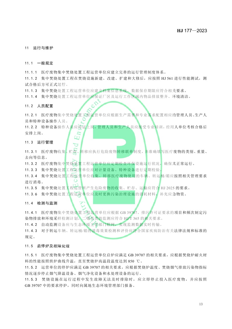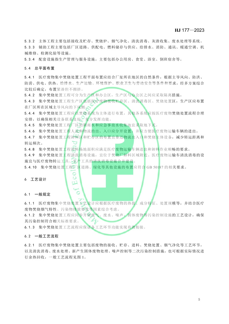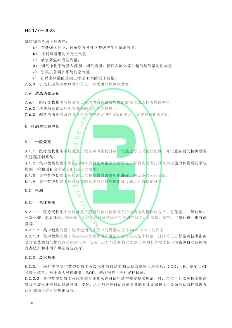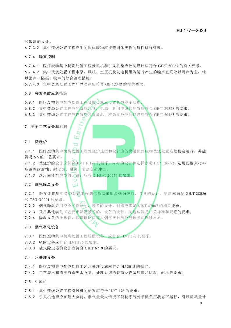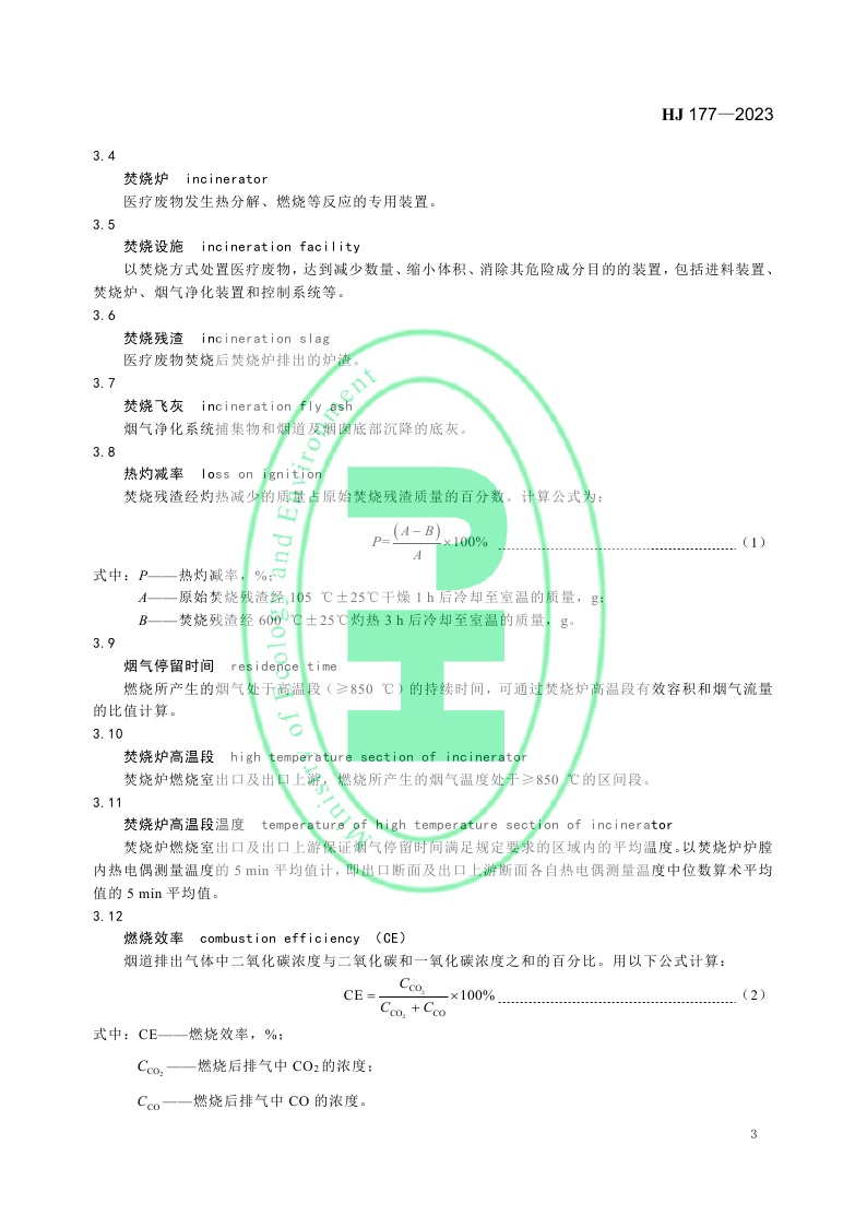 《医疗废物集中焚烧处置工程技术规范》 (HJ 177—2023)