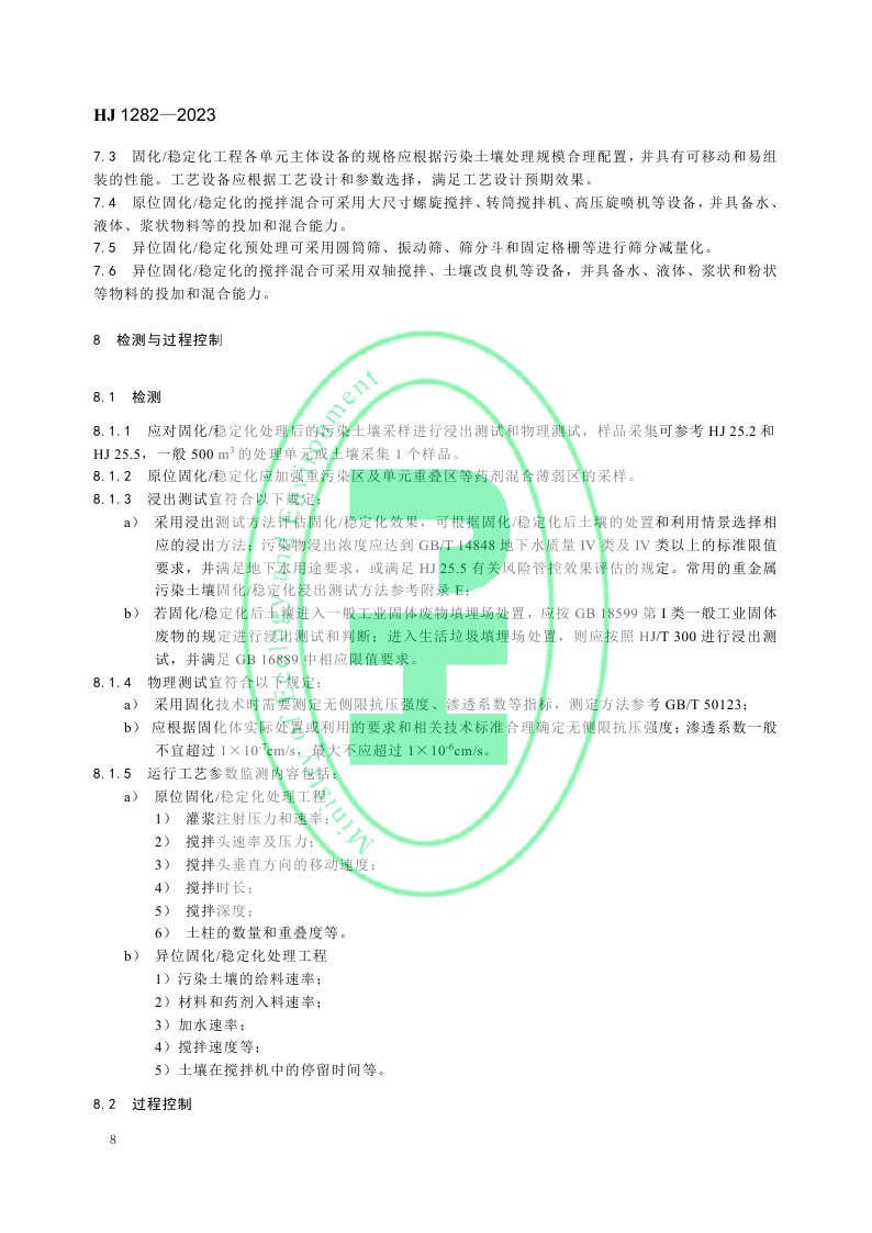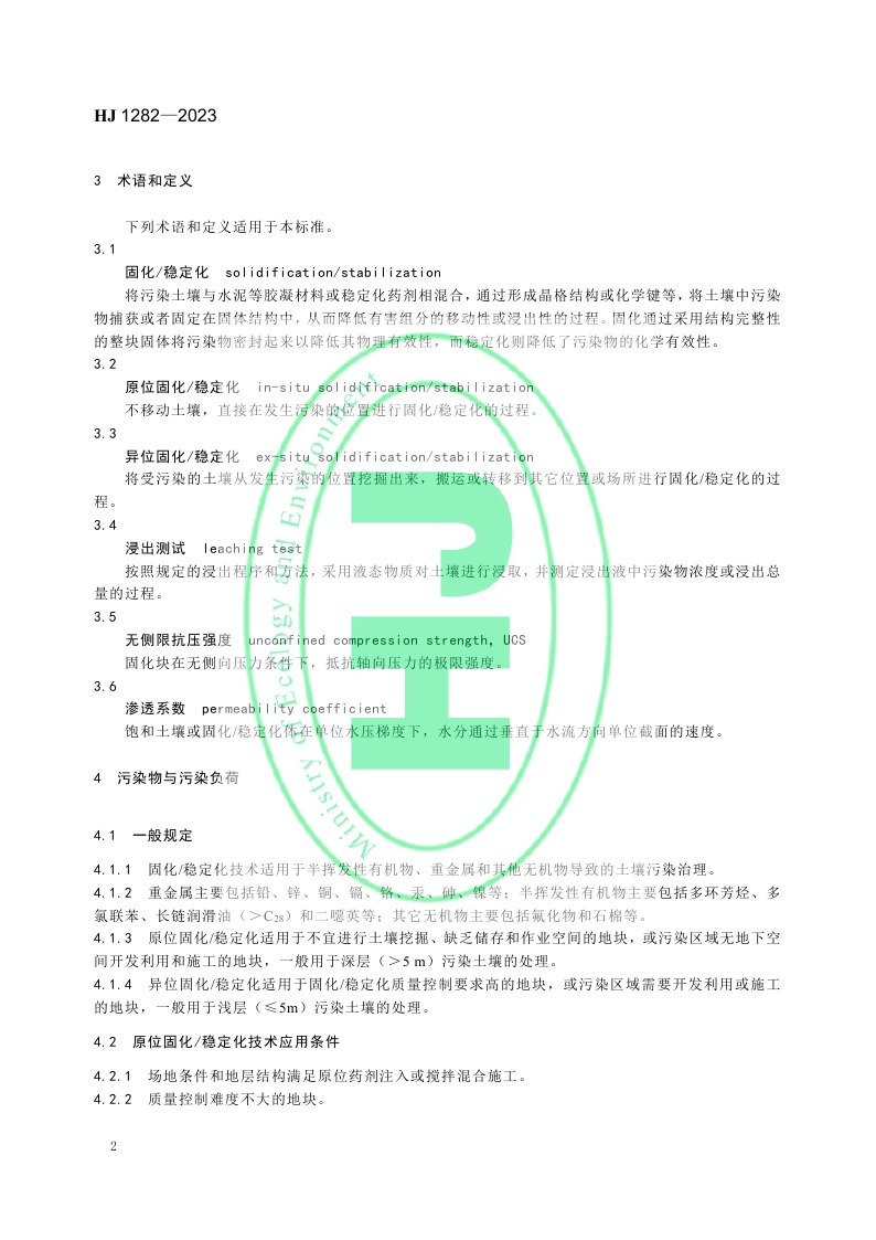 《污染土壤修复工程技术规范 固化/稳定化》 (HJ 1282—2023)