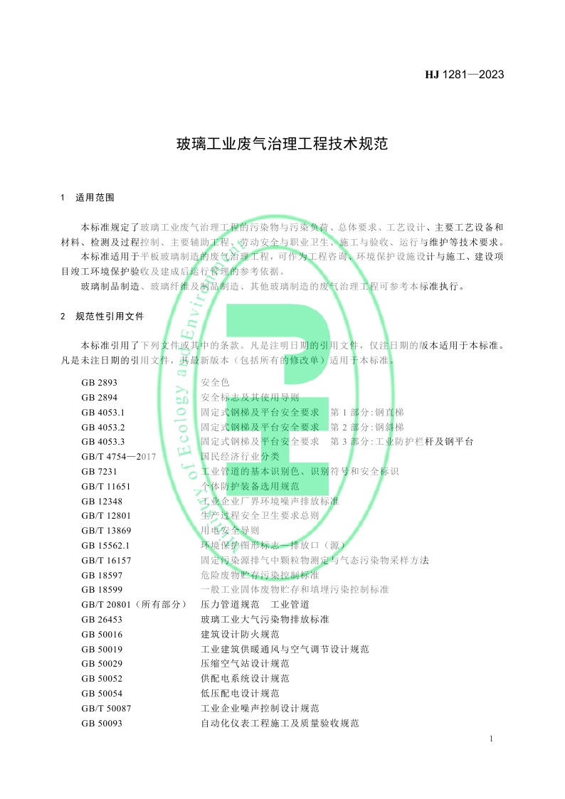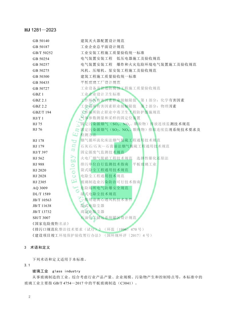 《玻璃工业废气治理工程技术规范》 (HJ 1281—2023)