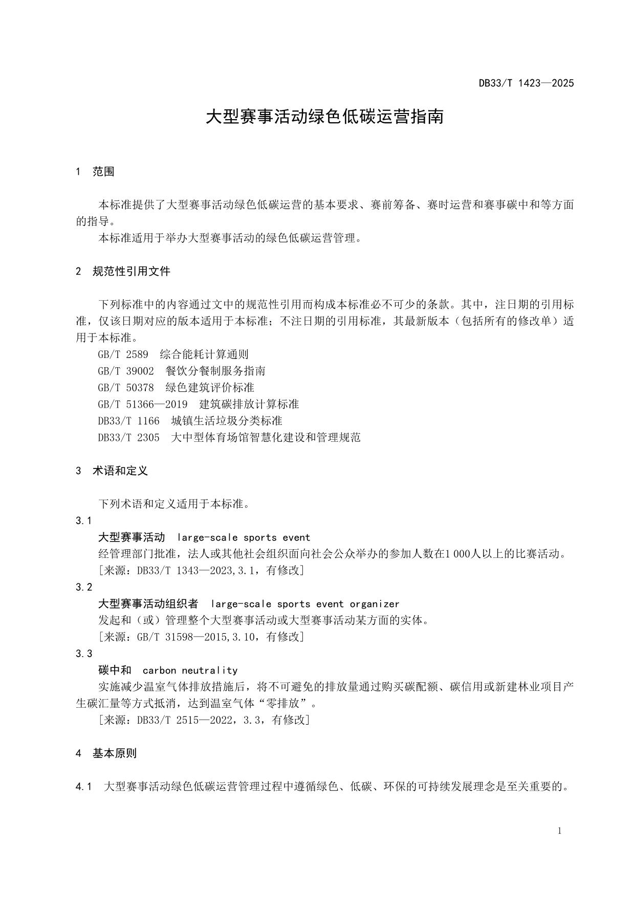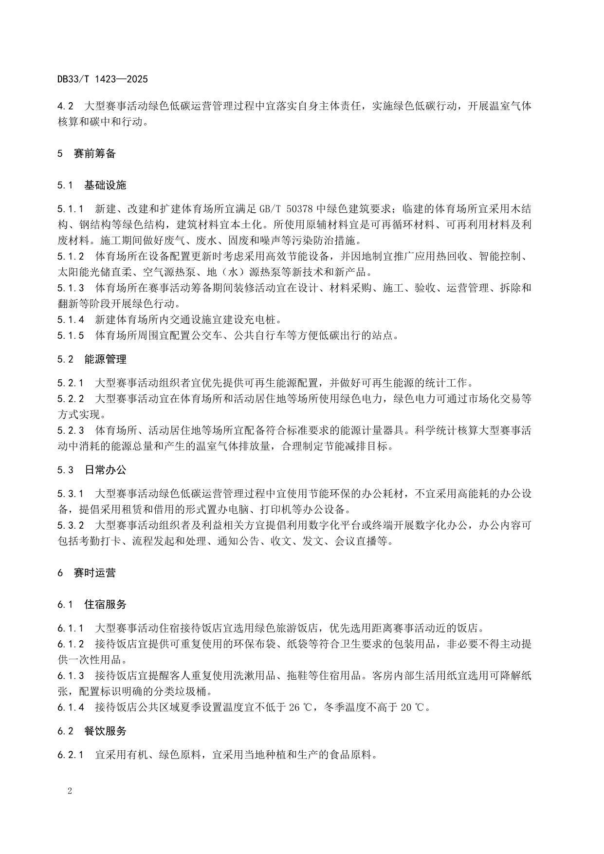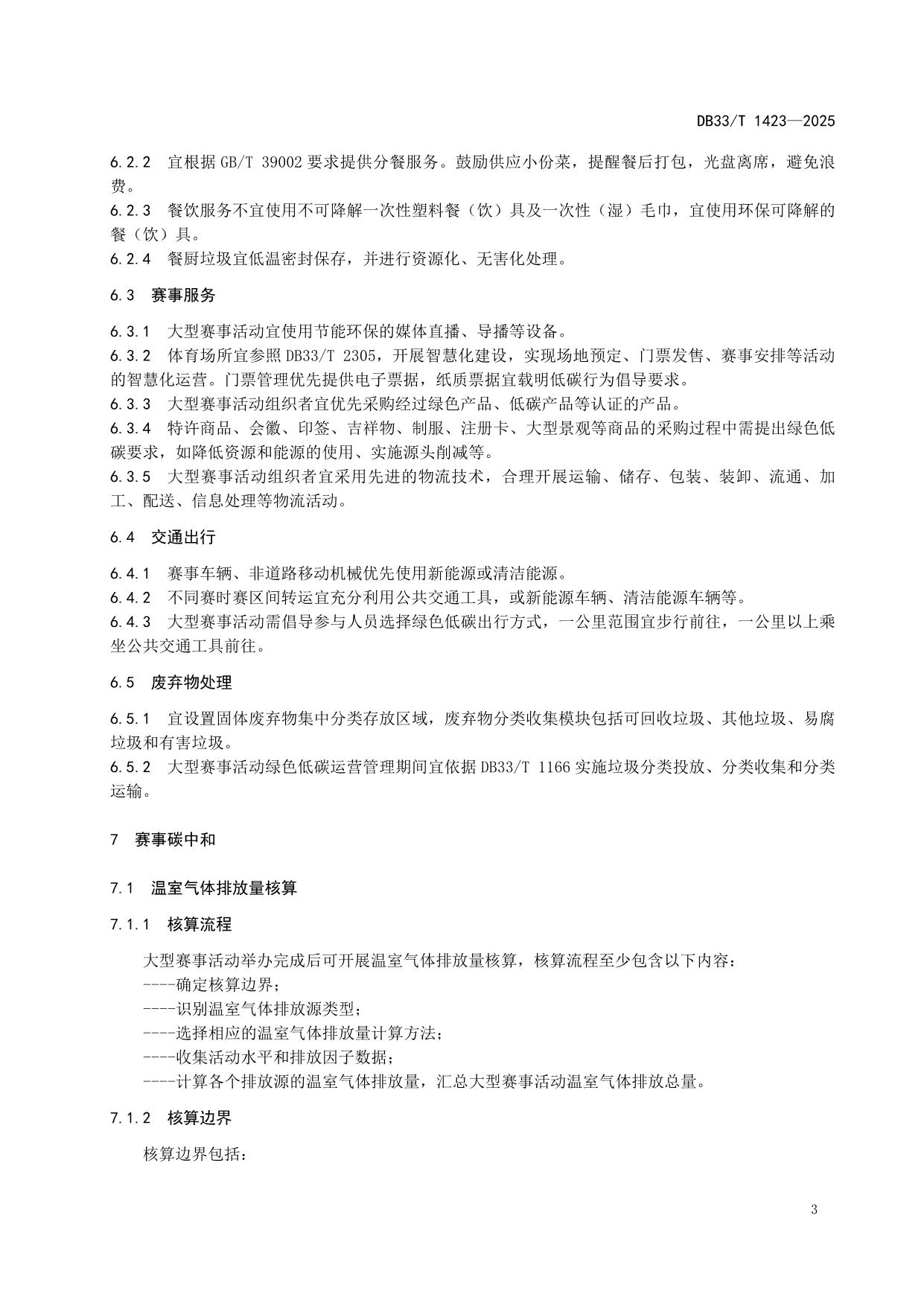 《大型赛事活动绿色低碳运营指南》(DB33/T 1423-2025)