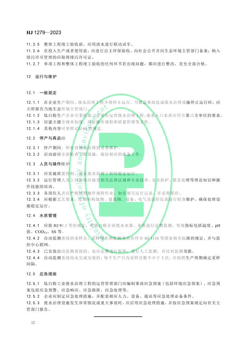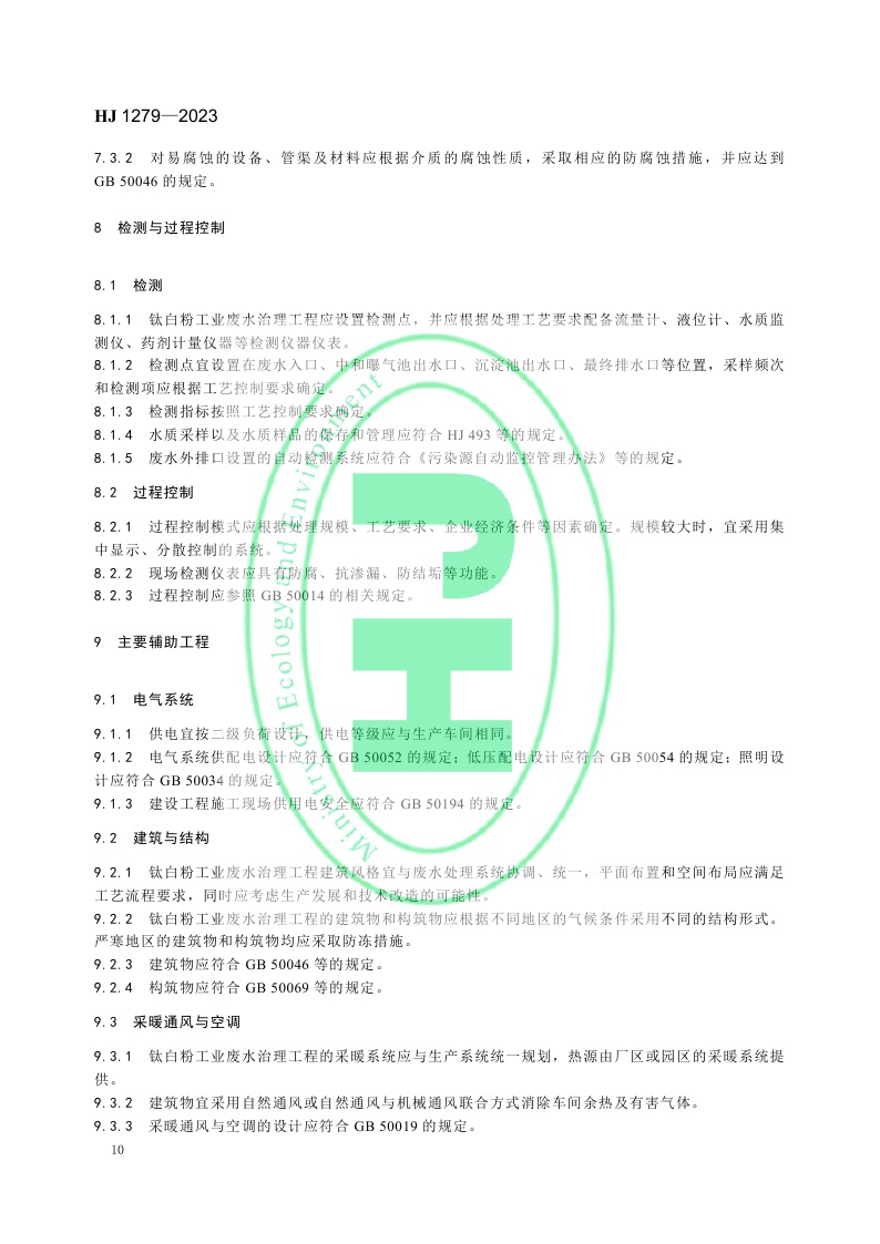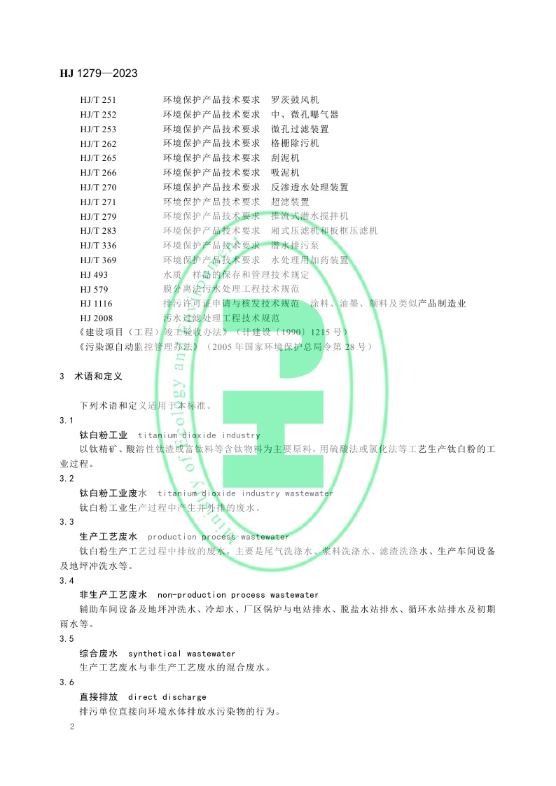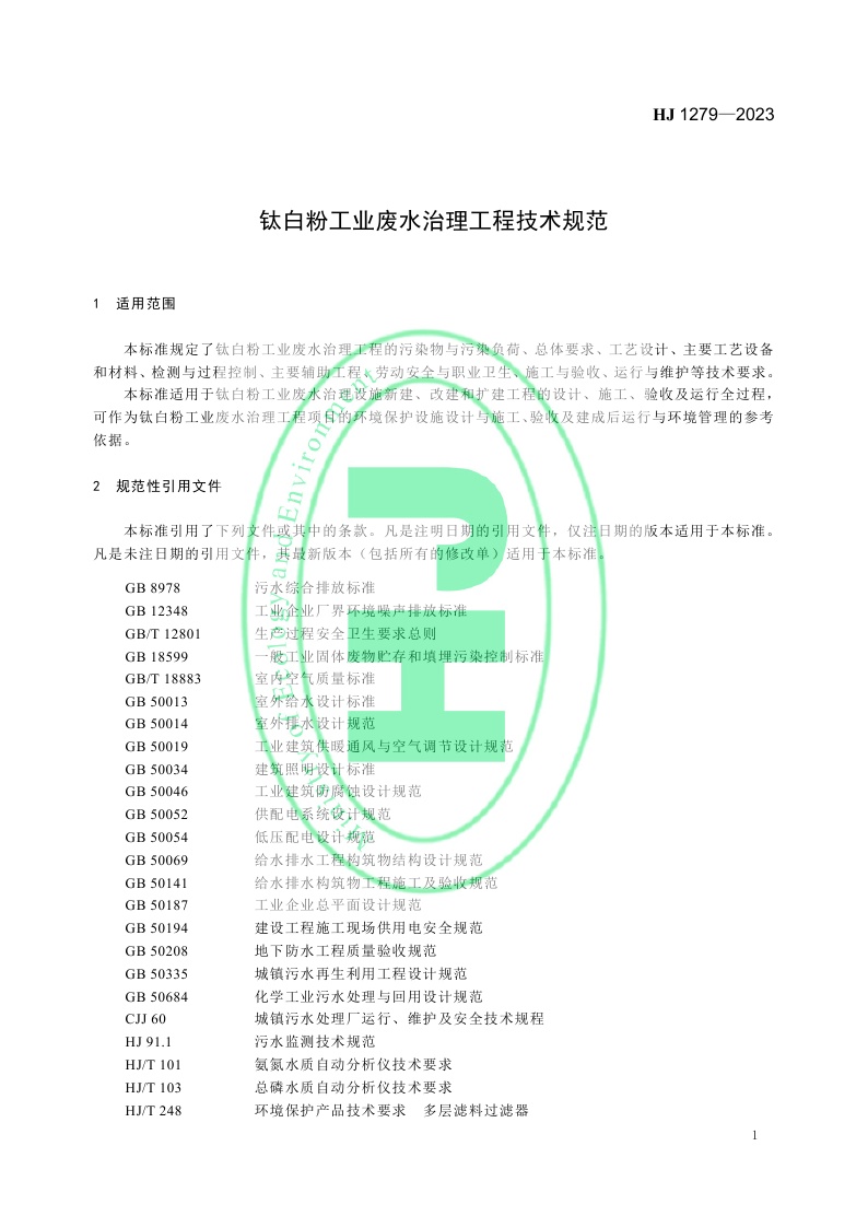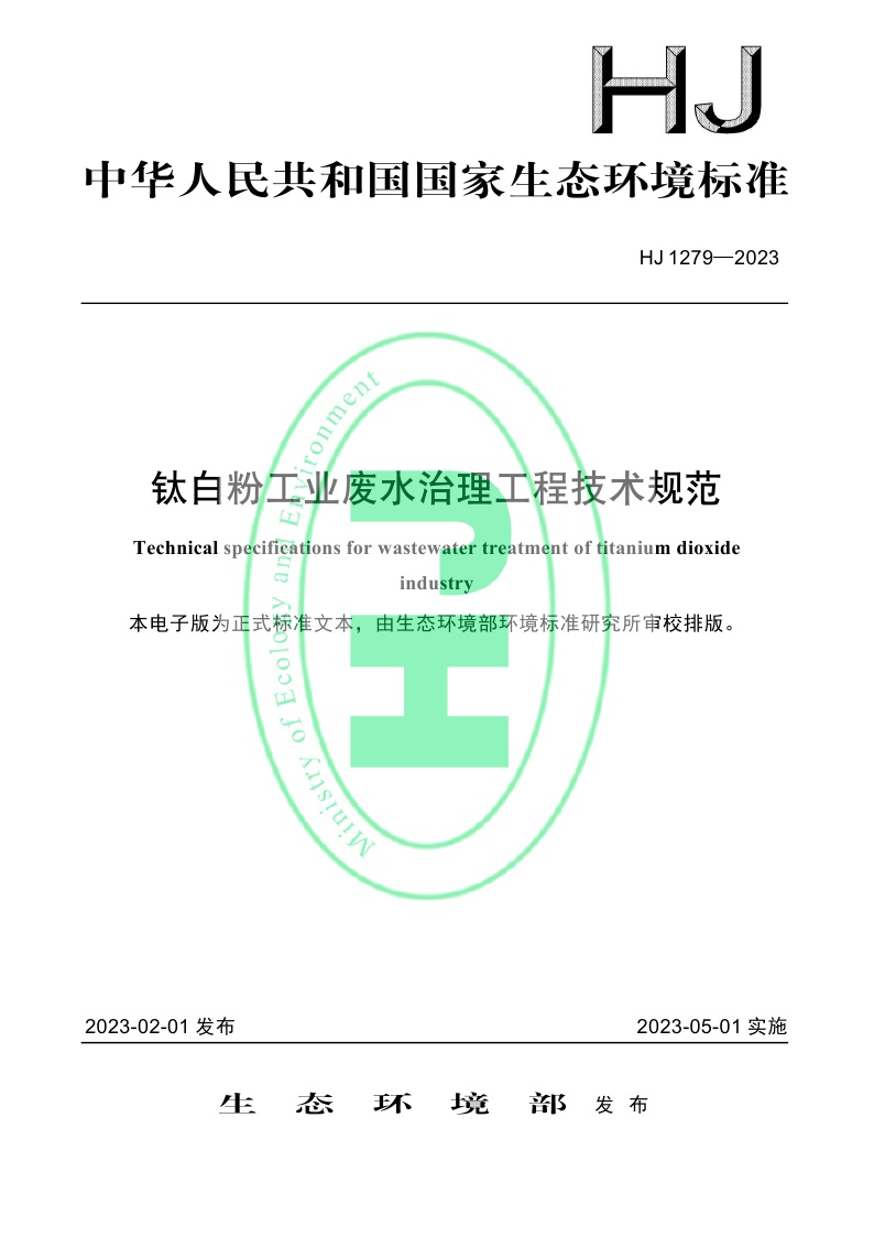 《钛白粉工业废水治理工程技术规范》 (HJ 1279—2023)