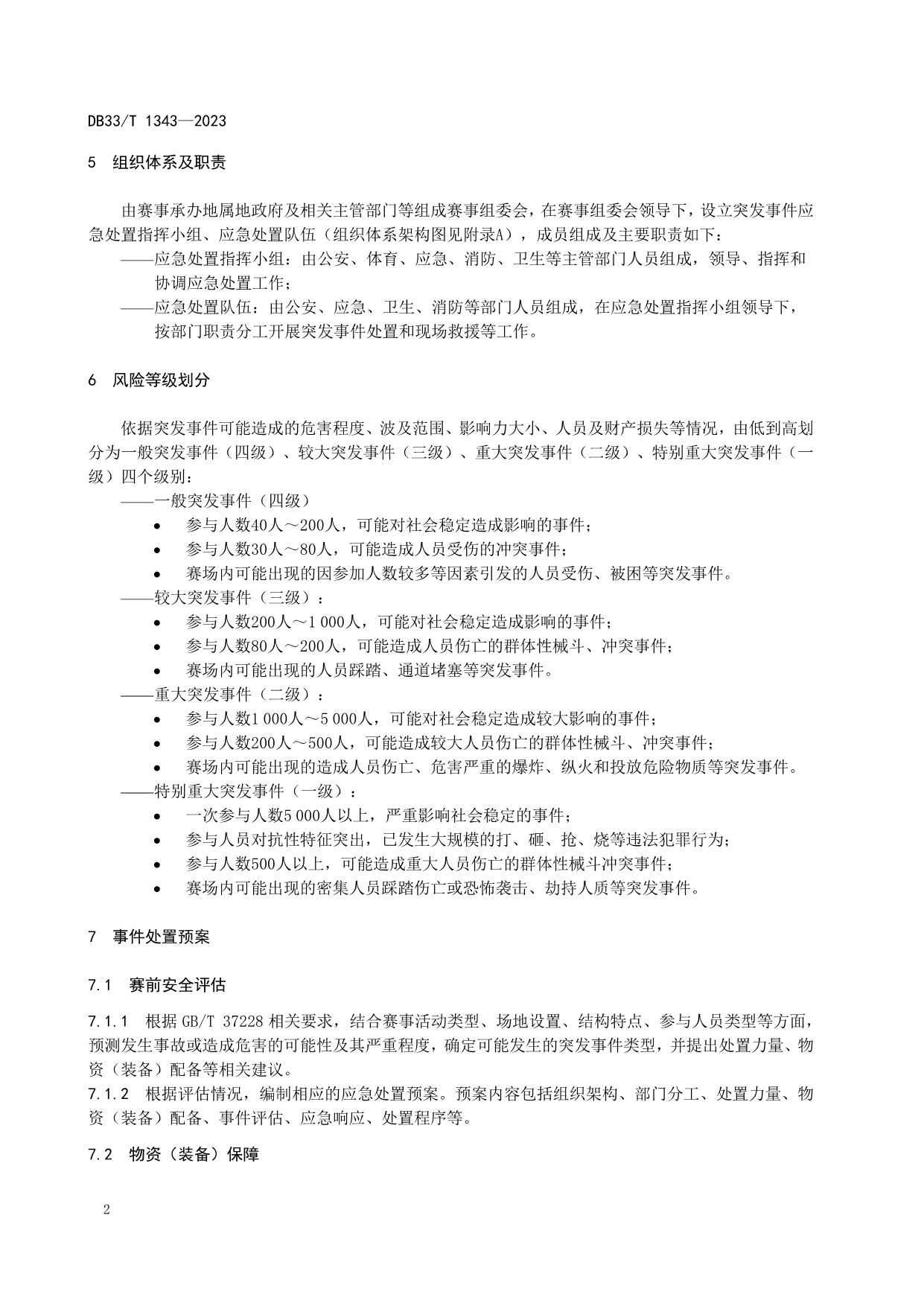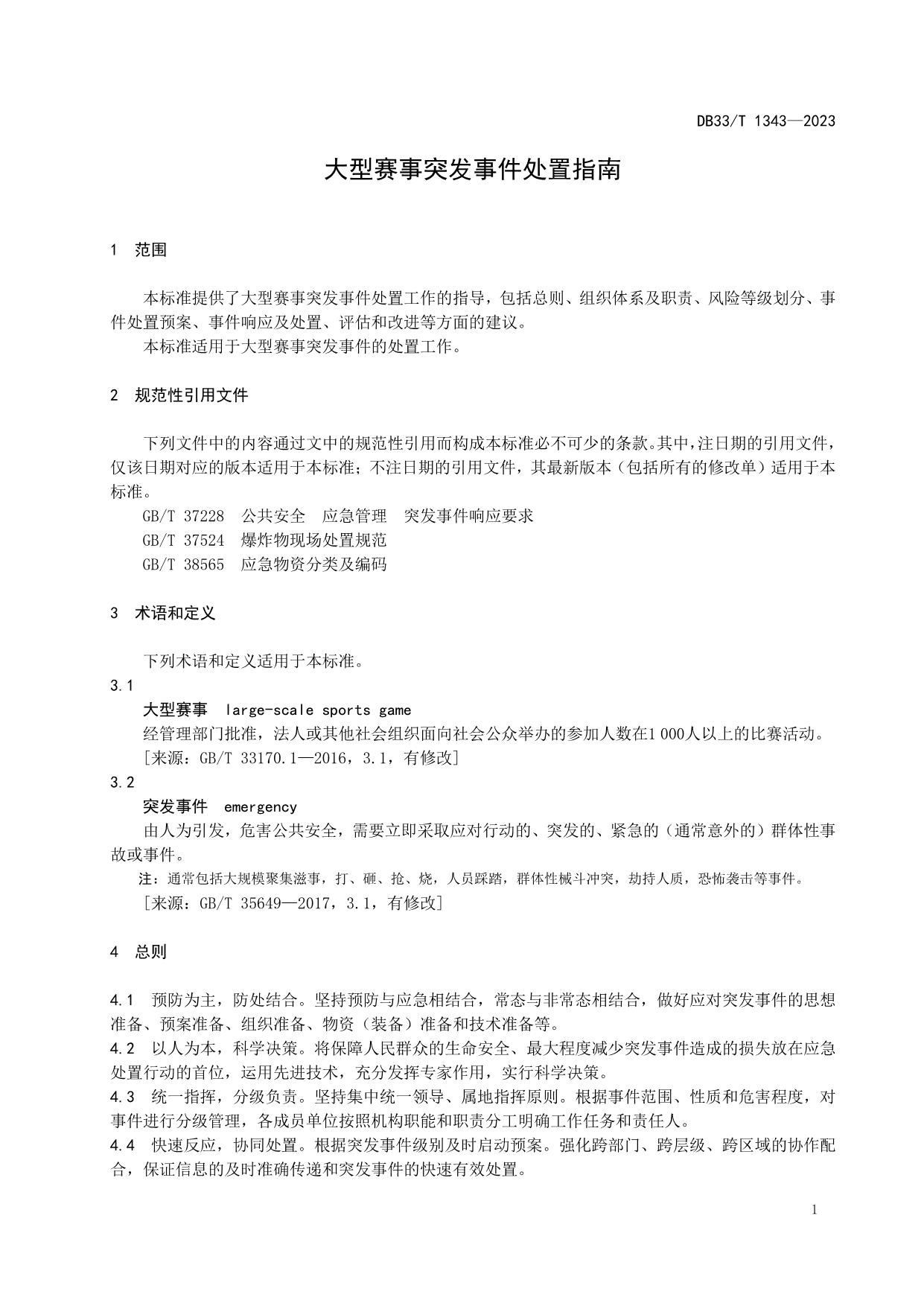 《大型赛事突发事件处置指南》(DB33/T 1343-2023)