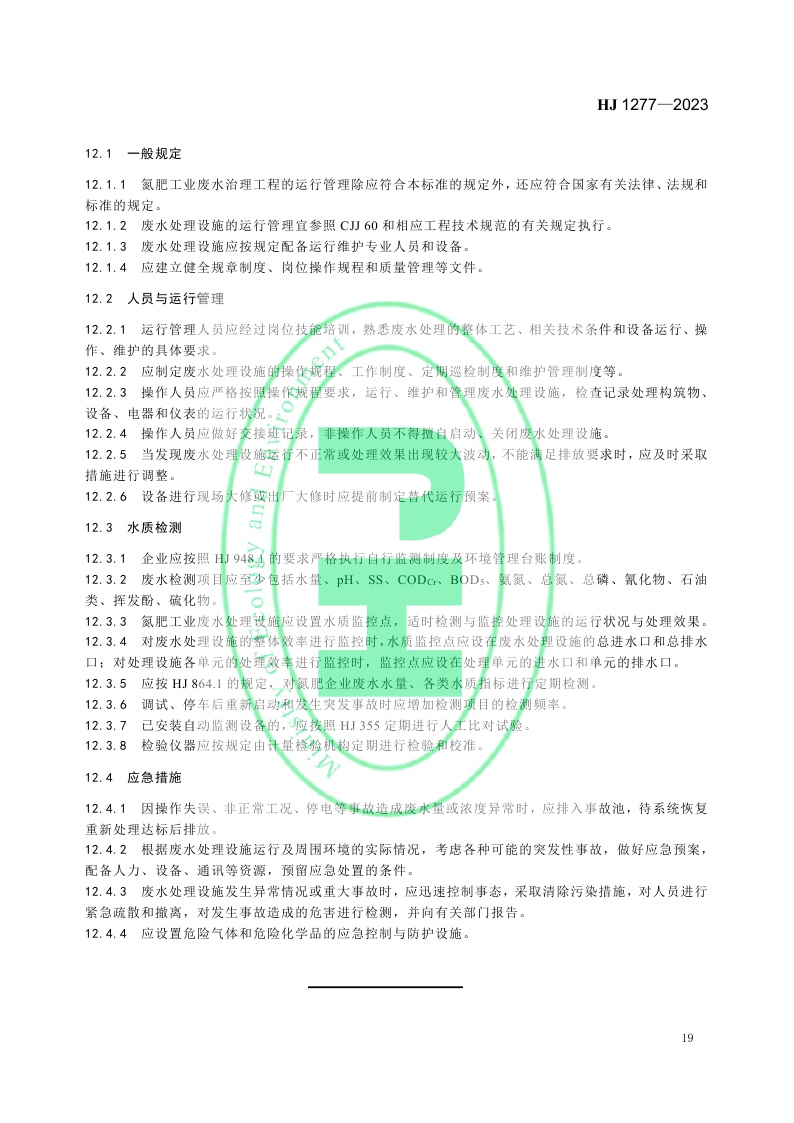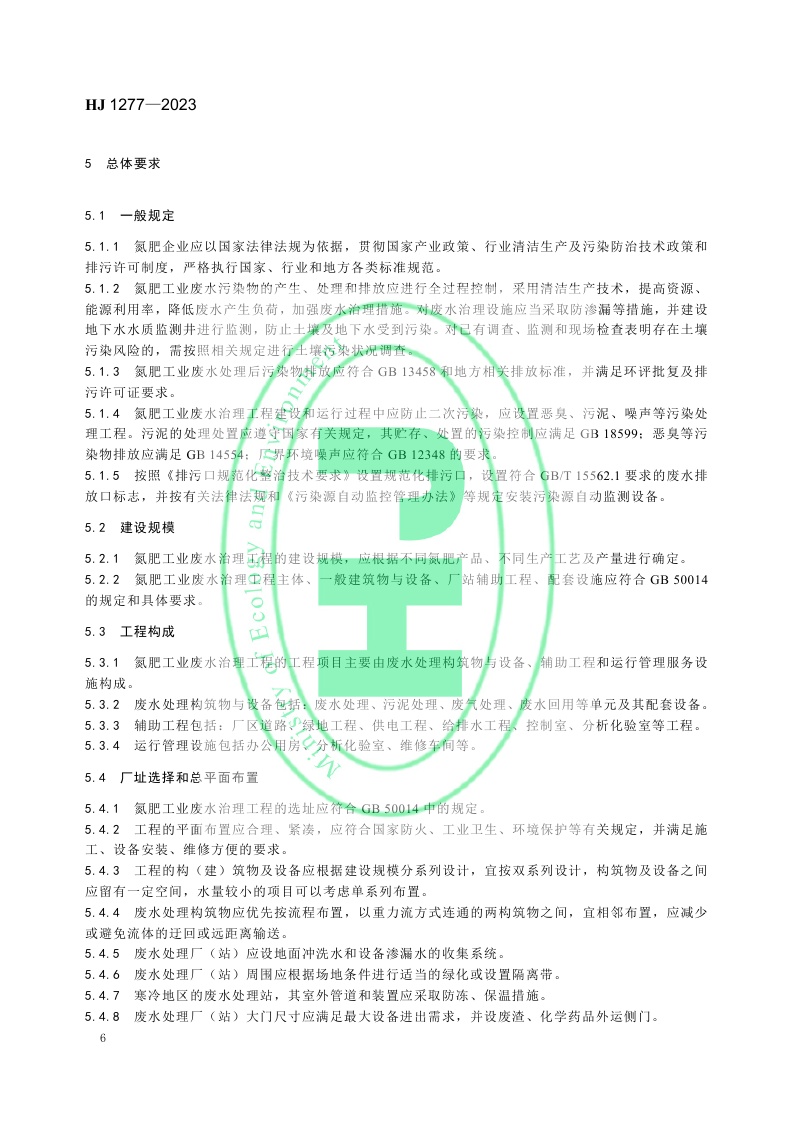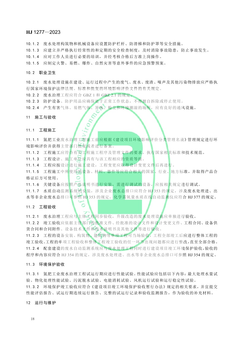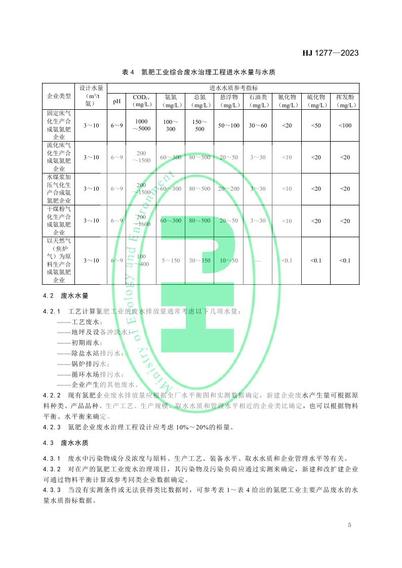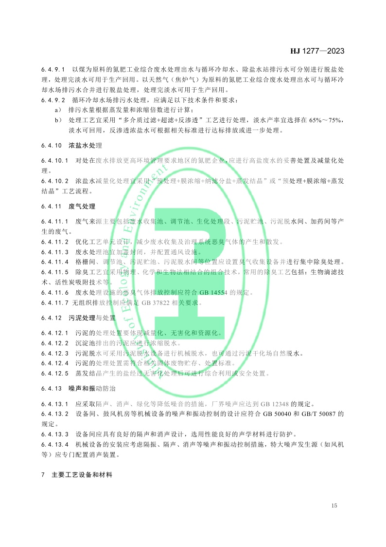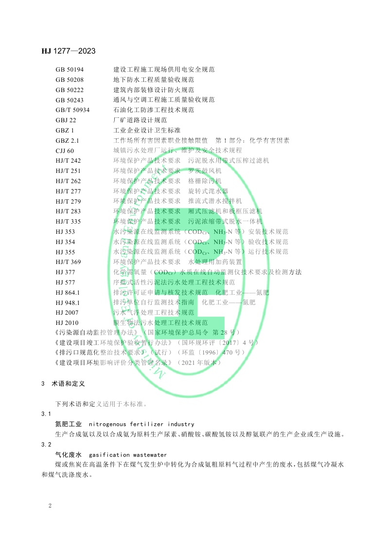 《氮肥工业废水治理工程技术规范》 (HJ 1277—2023)