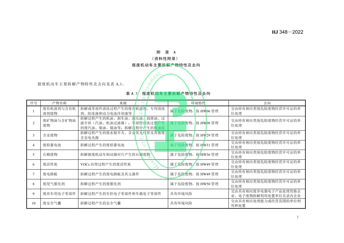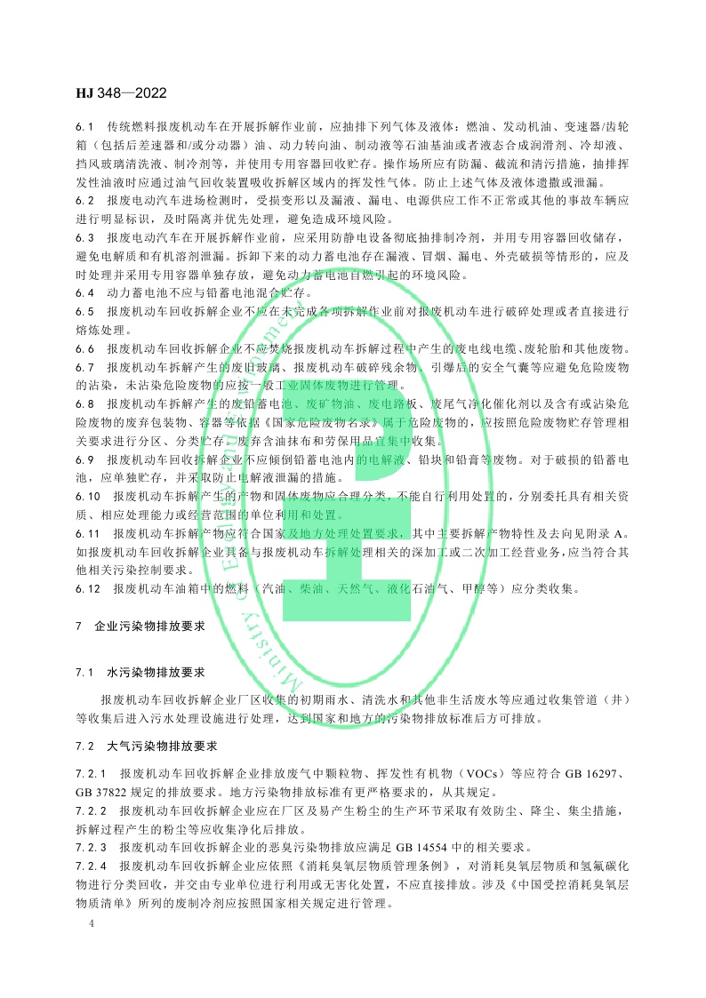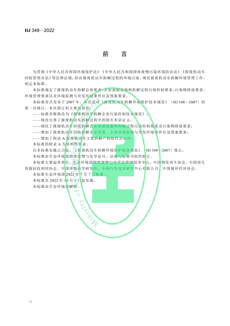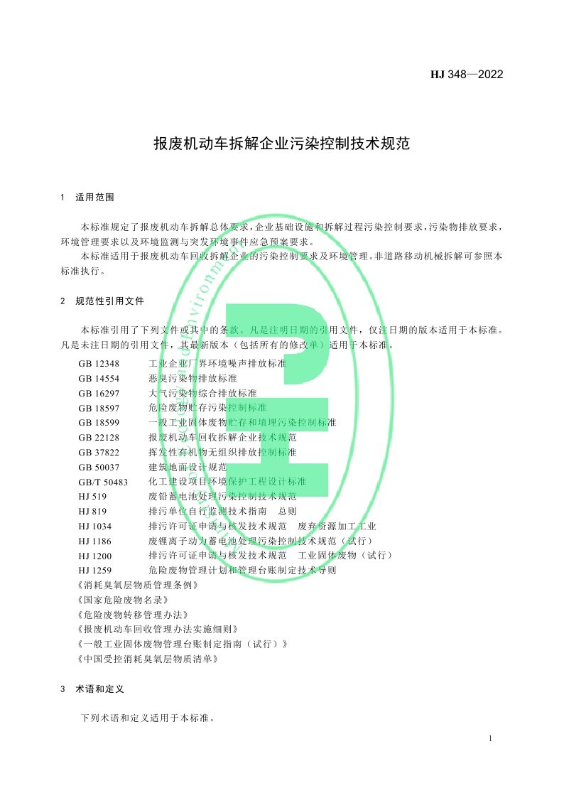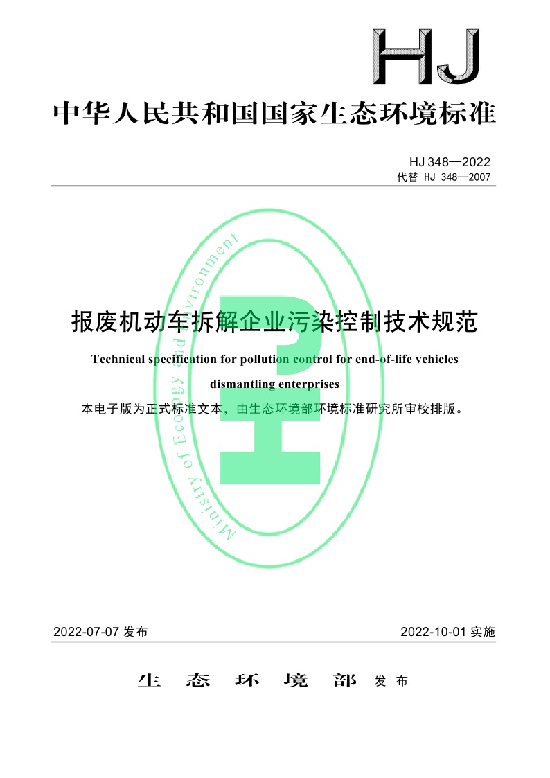 《报废机动车拆解企业污染控制技术规范》(HJ 348—2022)
