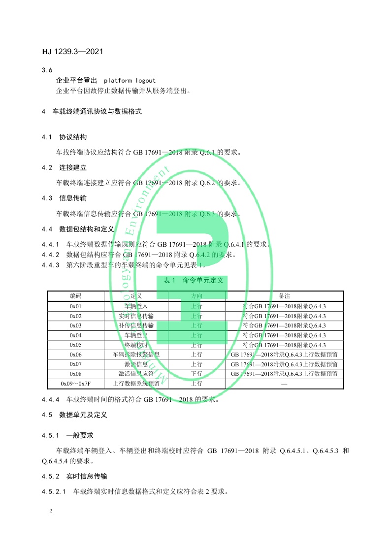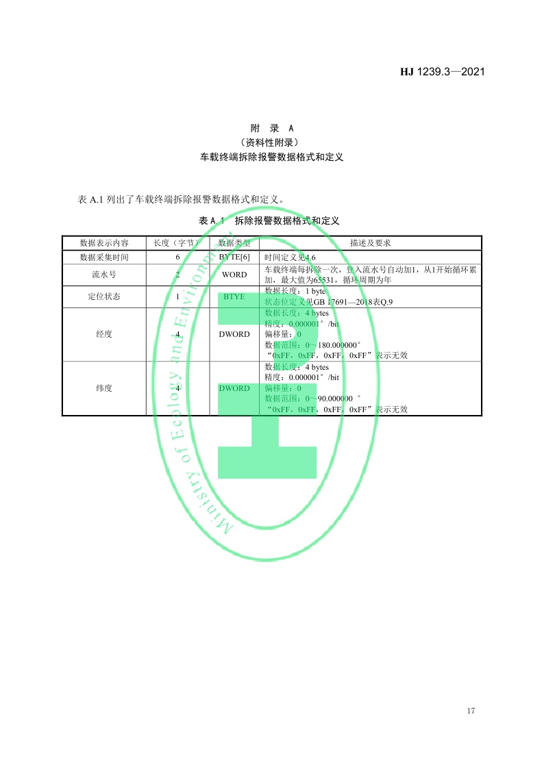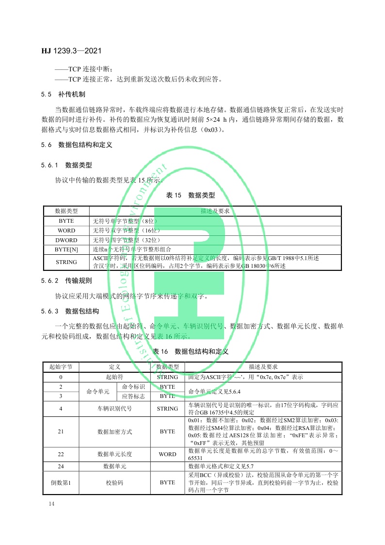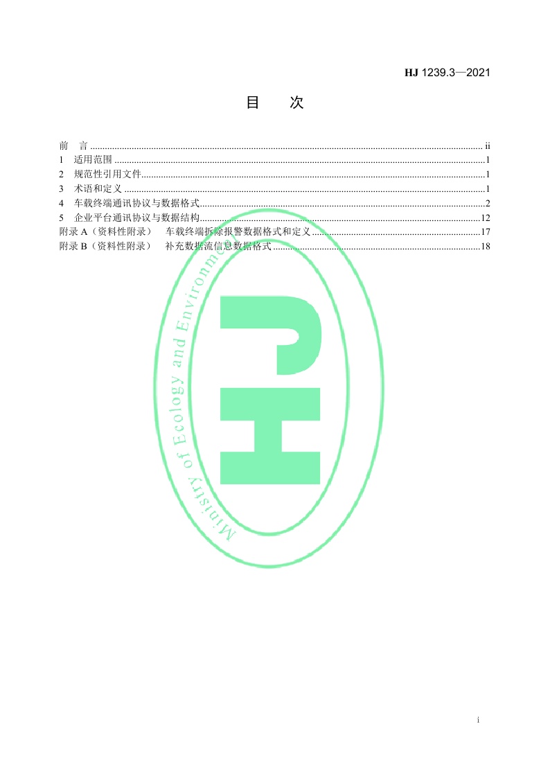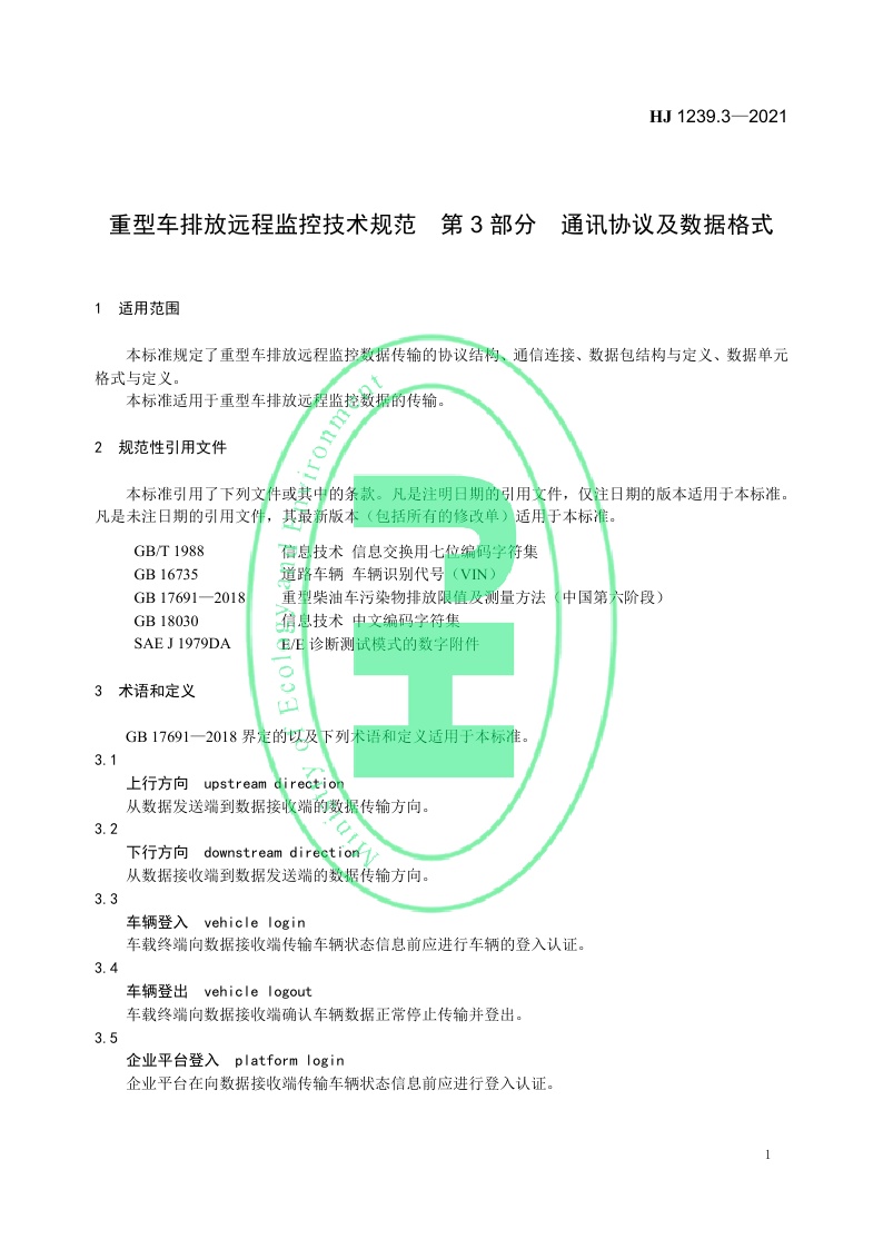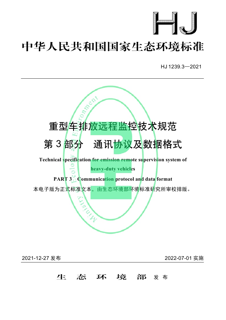 《重型车排放远程监控技术规范第3部分:通讯协议及数据格式》(HJ 1239.3—2021)