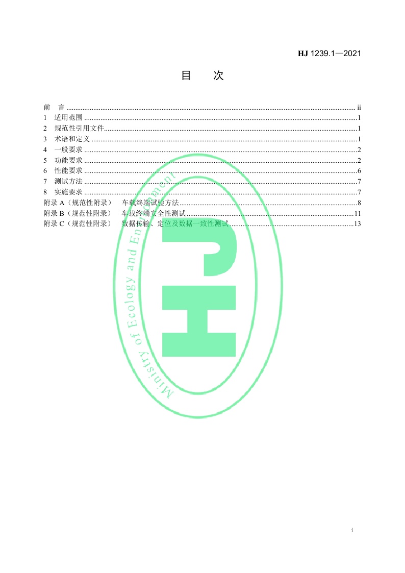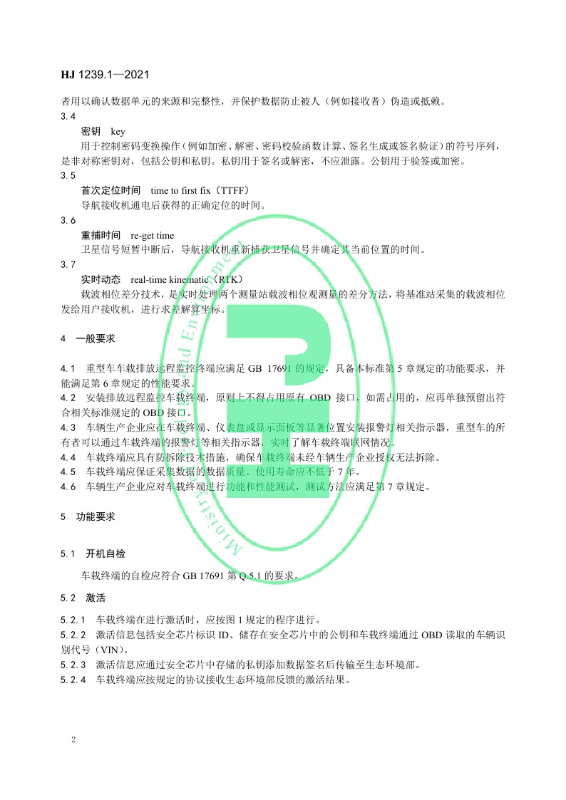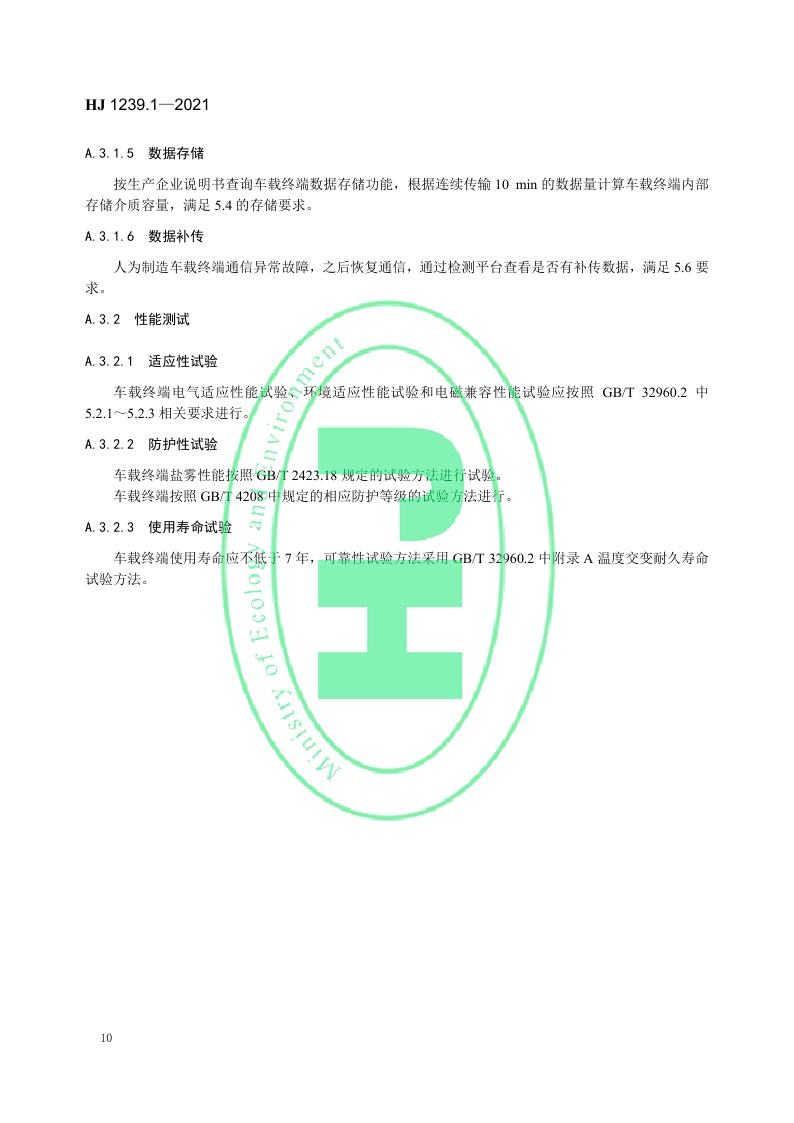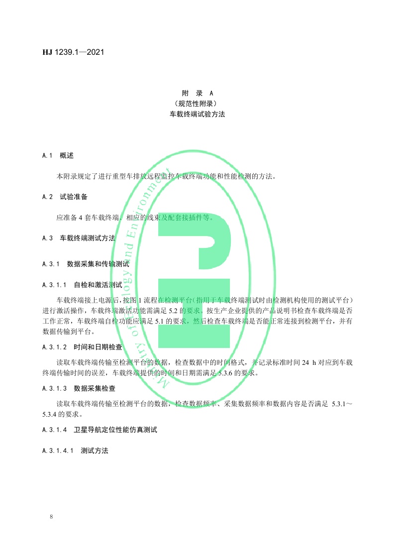 《重型车排放远程监控技术规范第1部分:车载终端》(HJ 1239.1—2021)