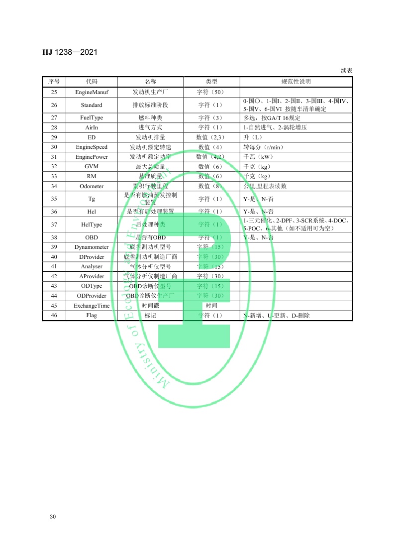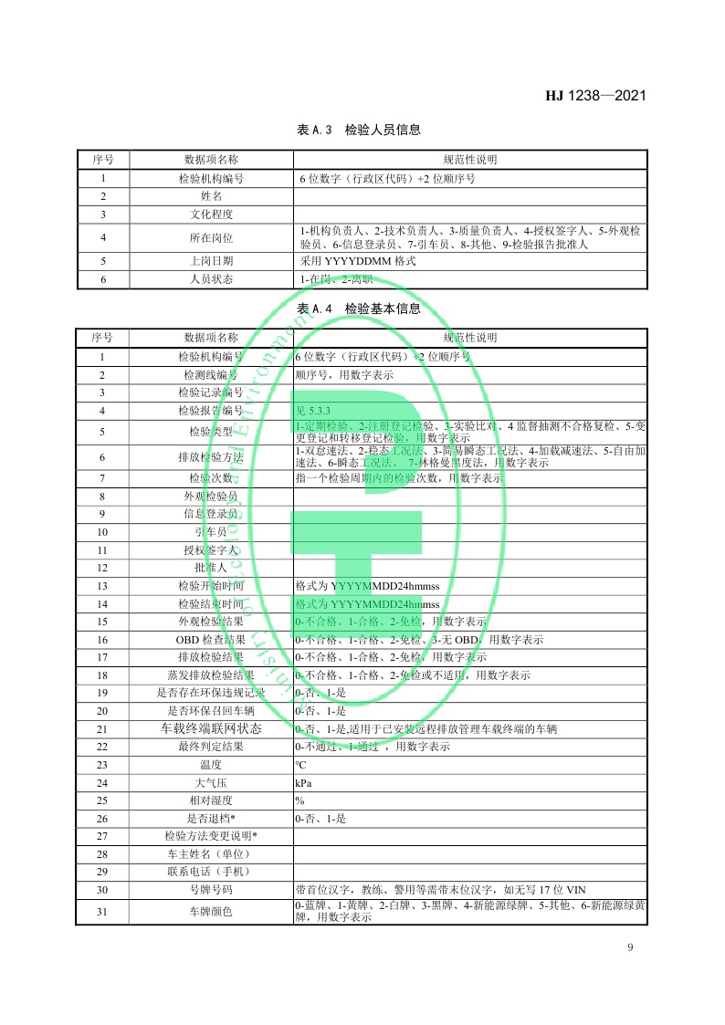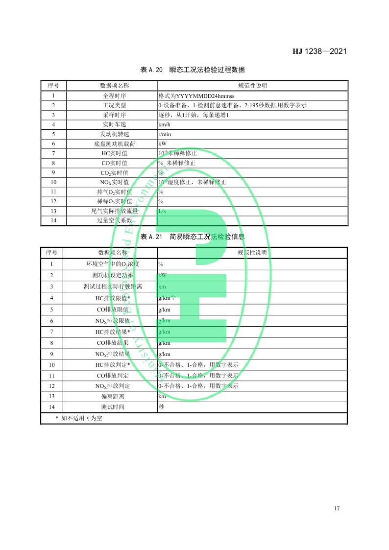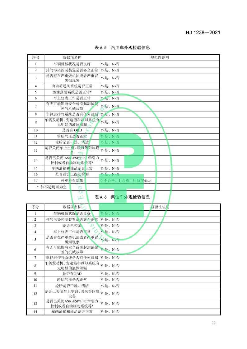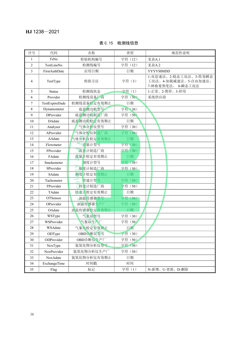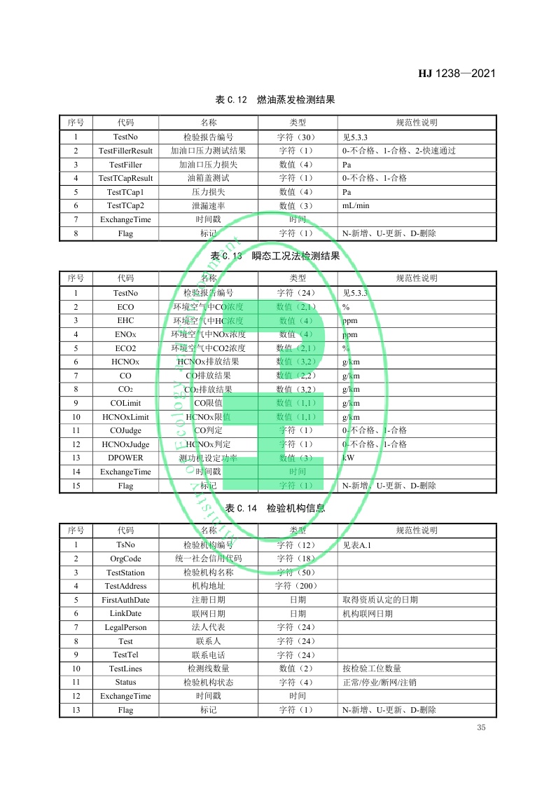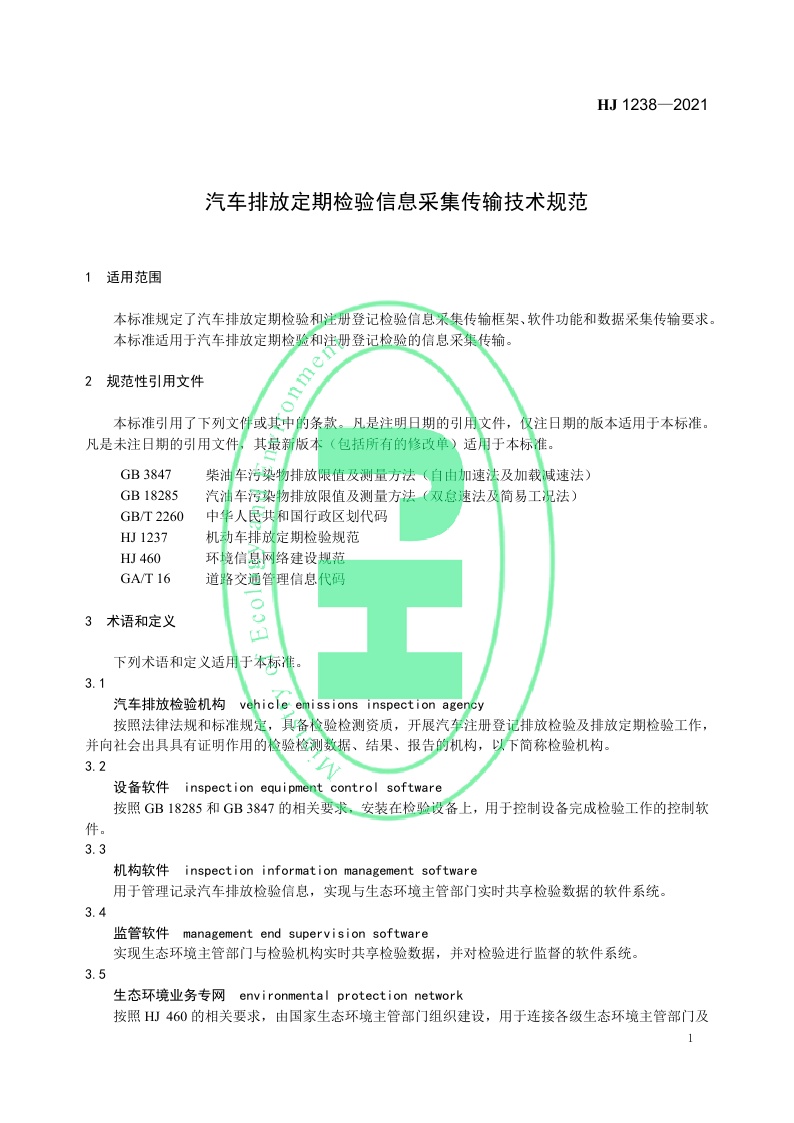 《汽车排放定期检验信息 采集传输技术规范》(HJ 1238—2021)