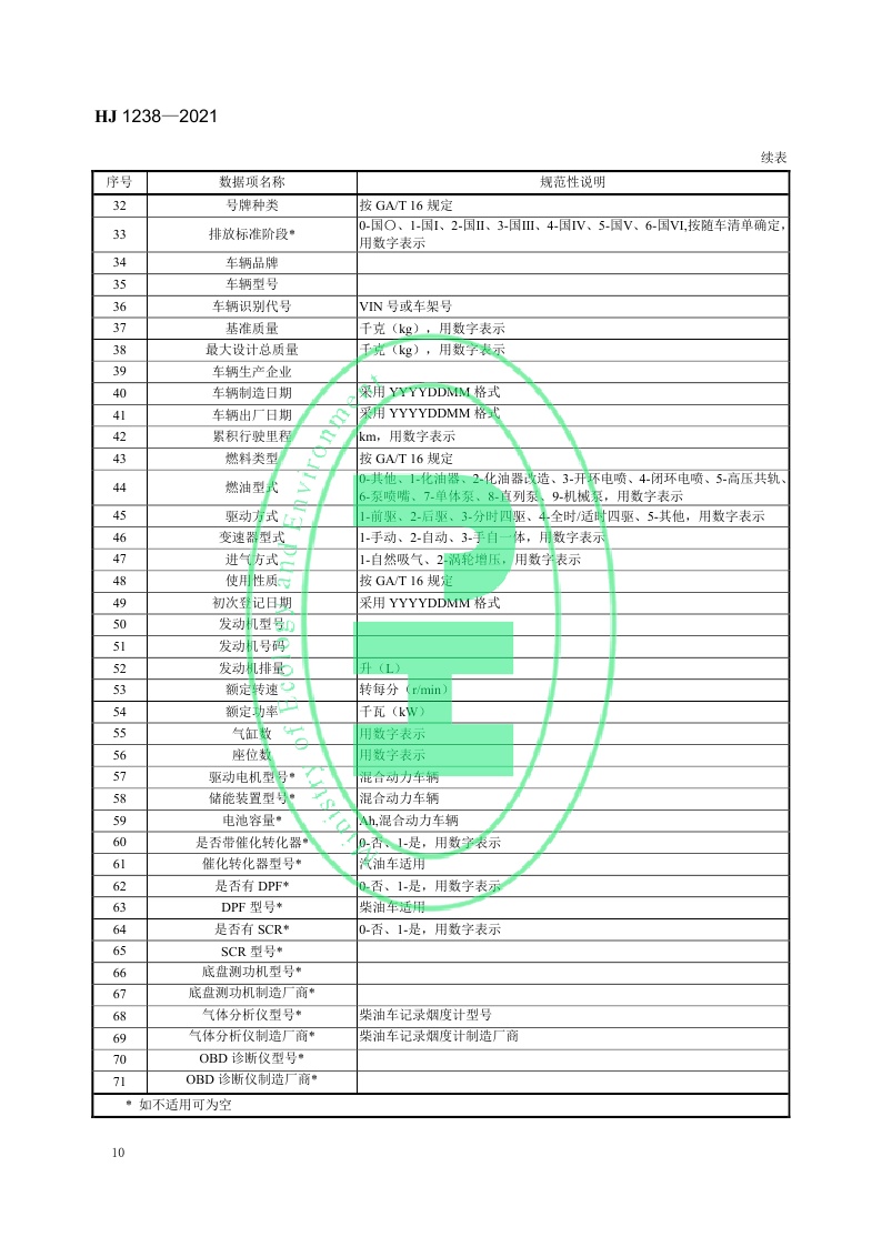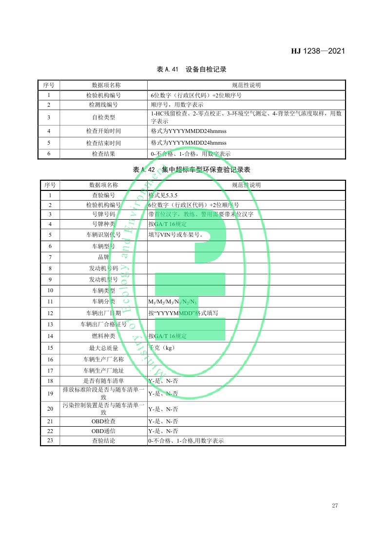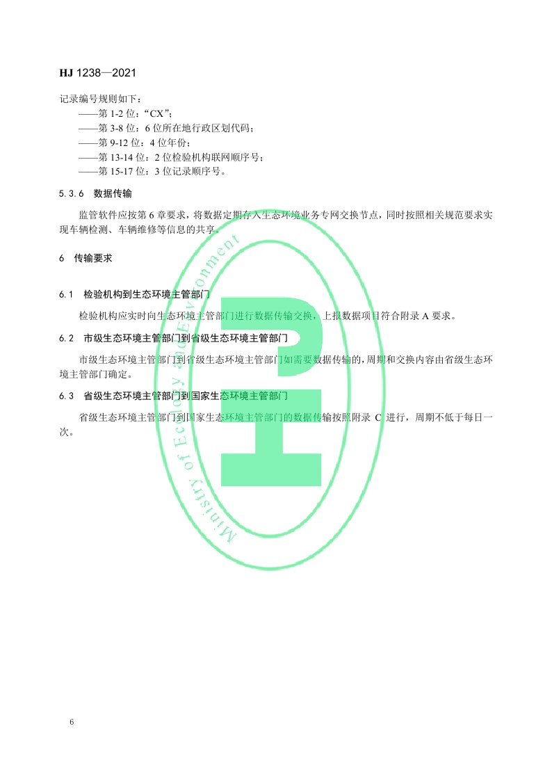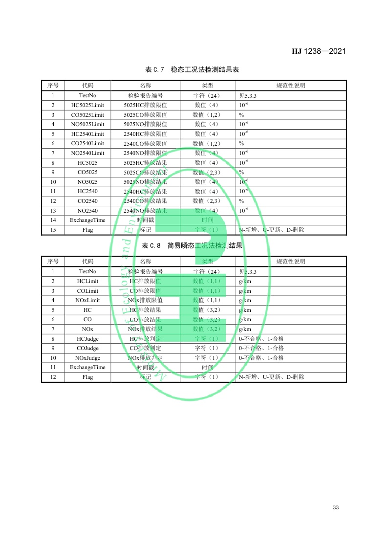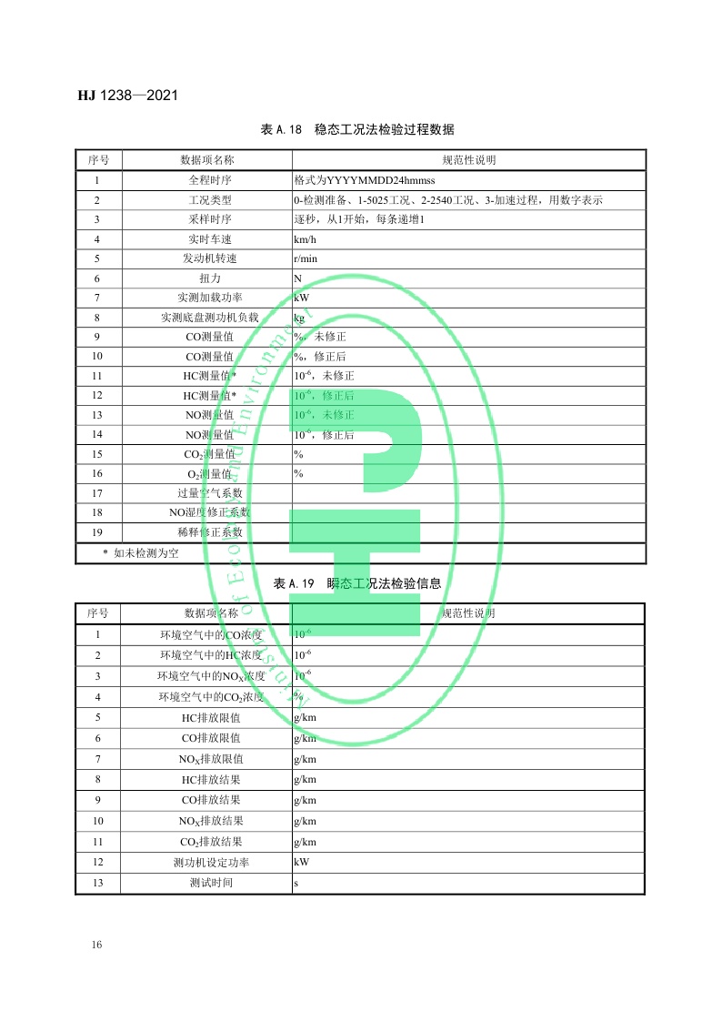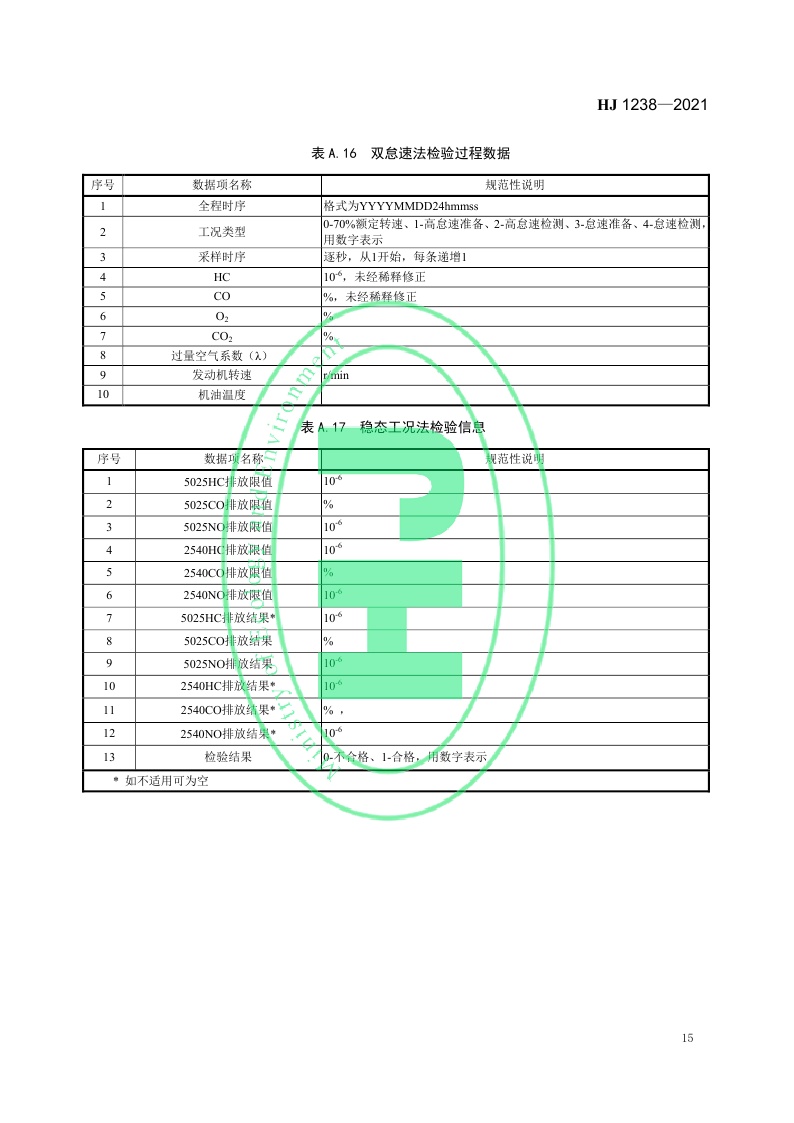 《汽车排放定期检验信息 采集传输技术规范》(HJ 1238—2021)