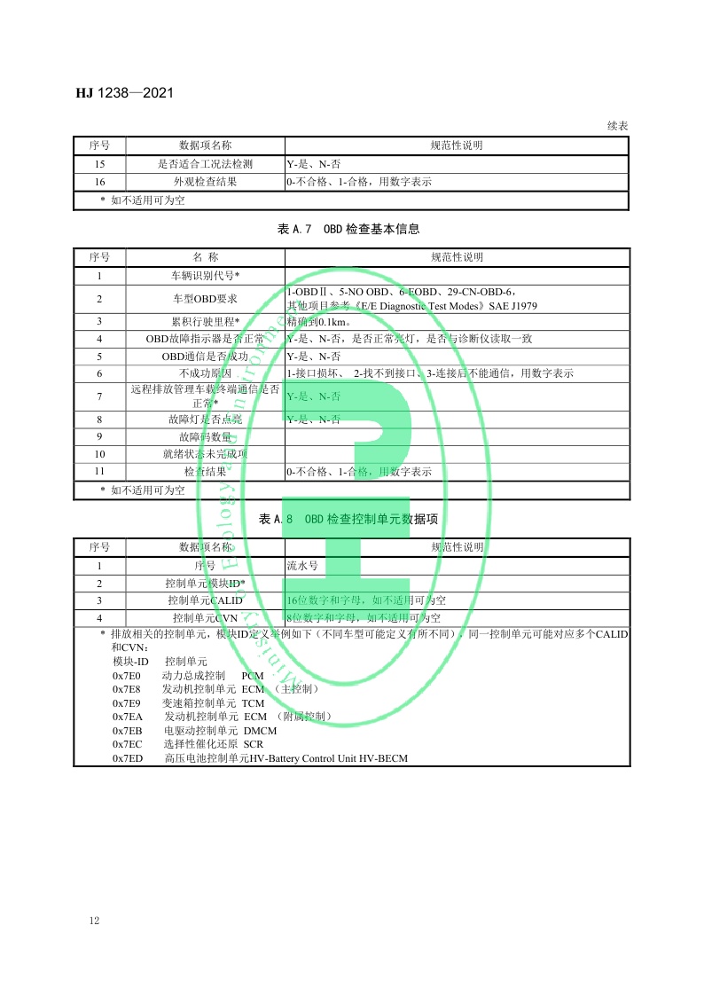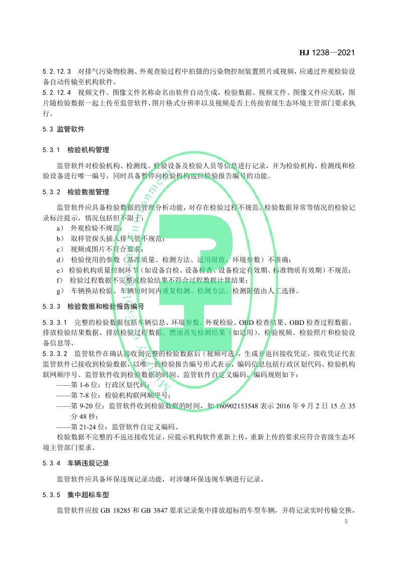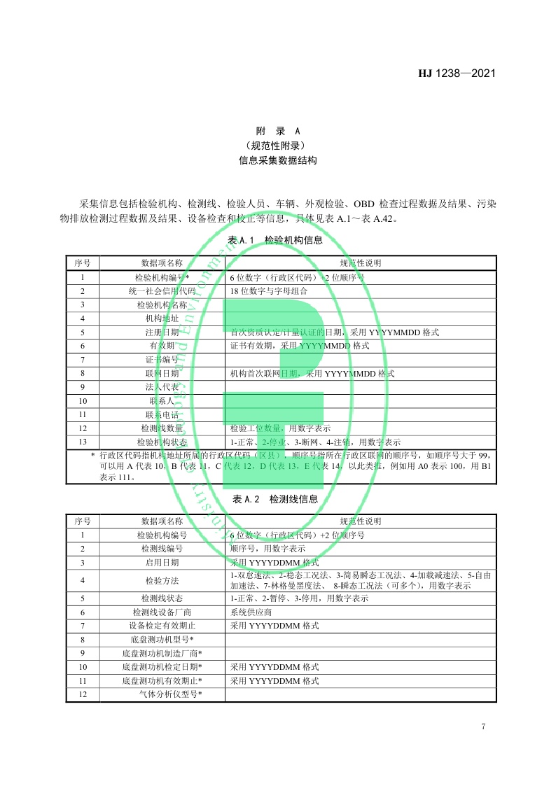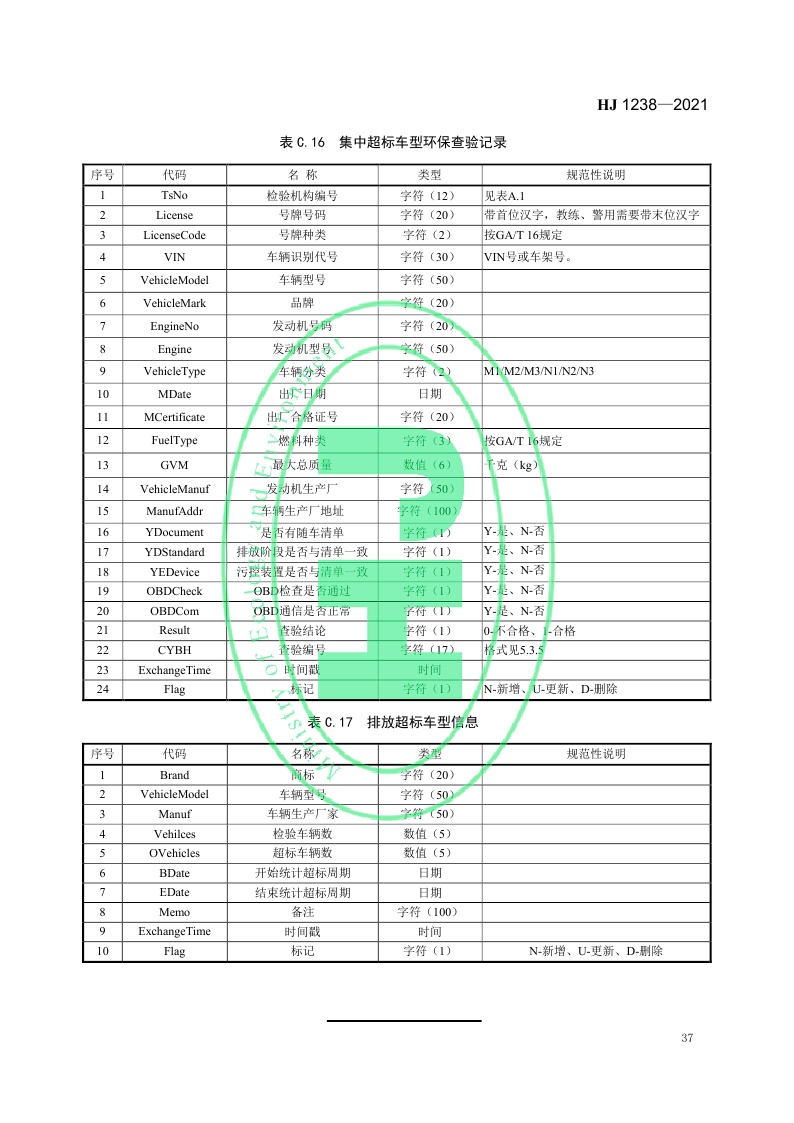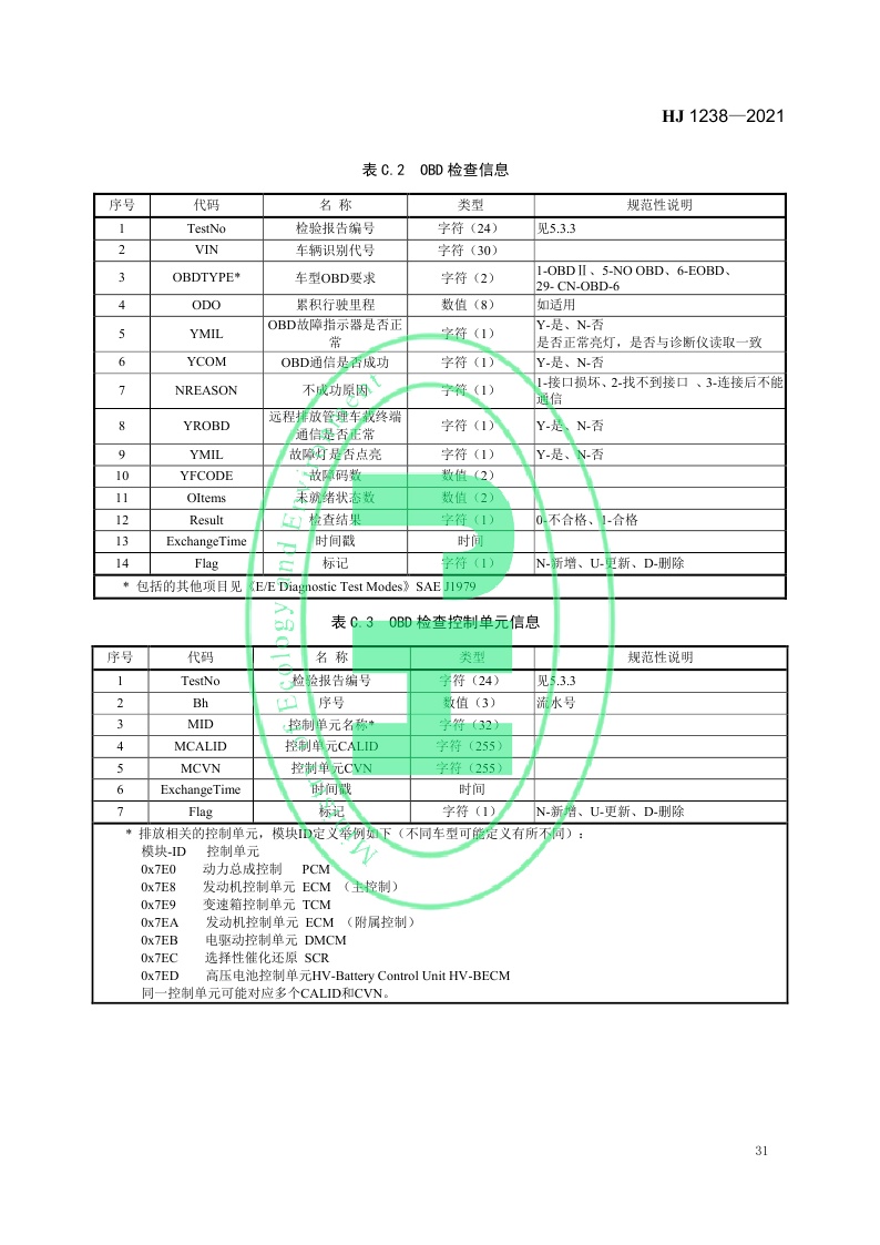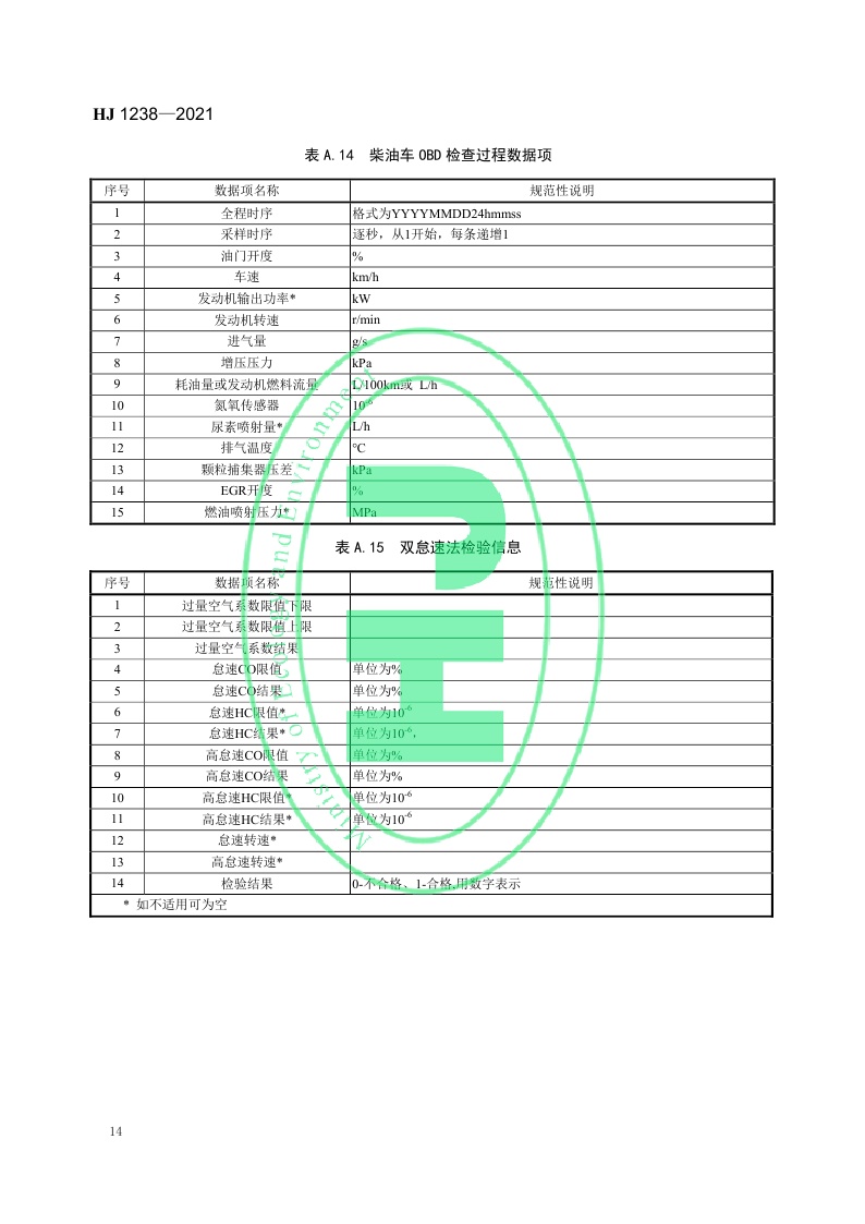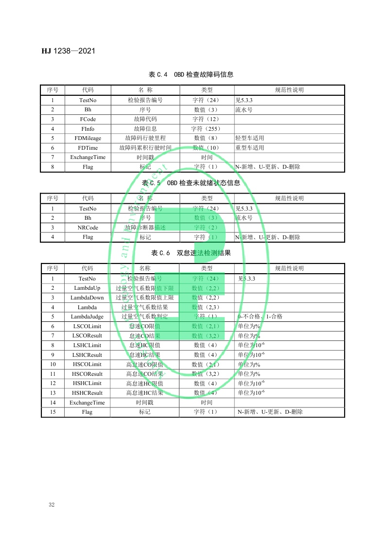 《汽车排放定期检验信息 采集传输技术规范》(HJ 1238—2021)