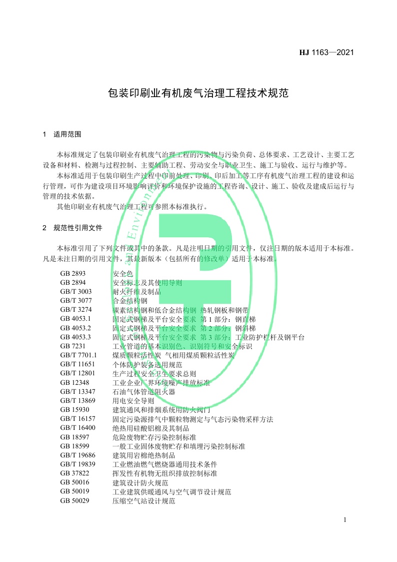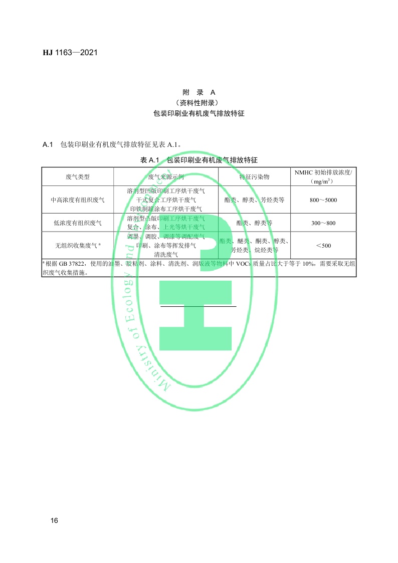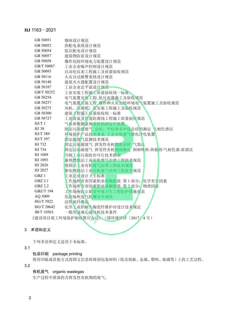 《包装印刷业有机废气治理工程技术规范》(HJ 1163—2021)