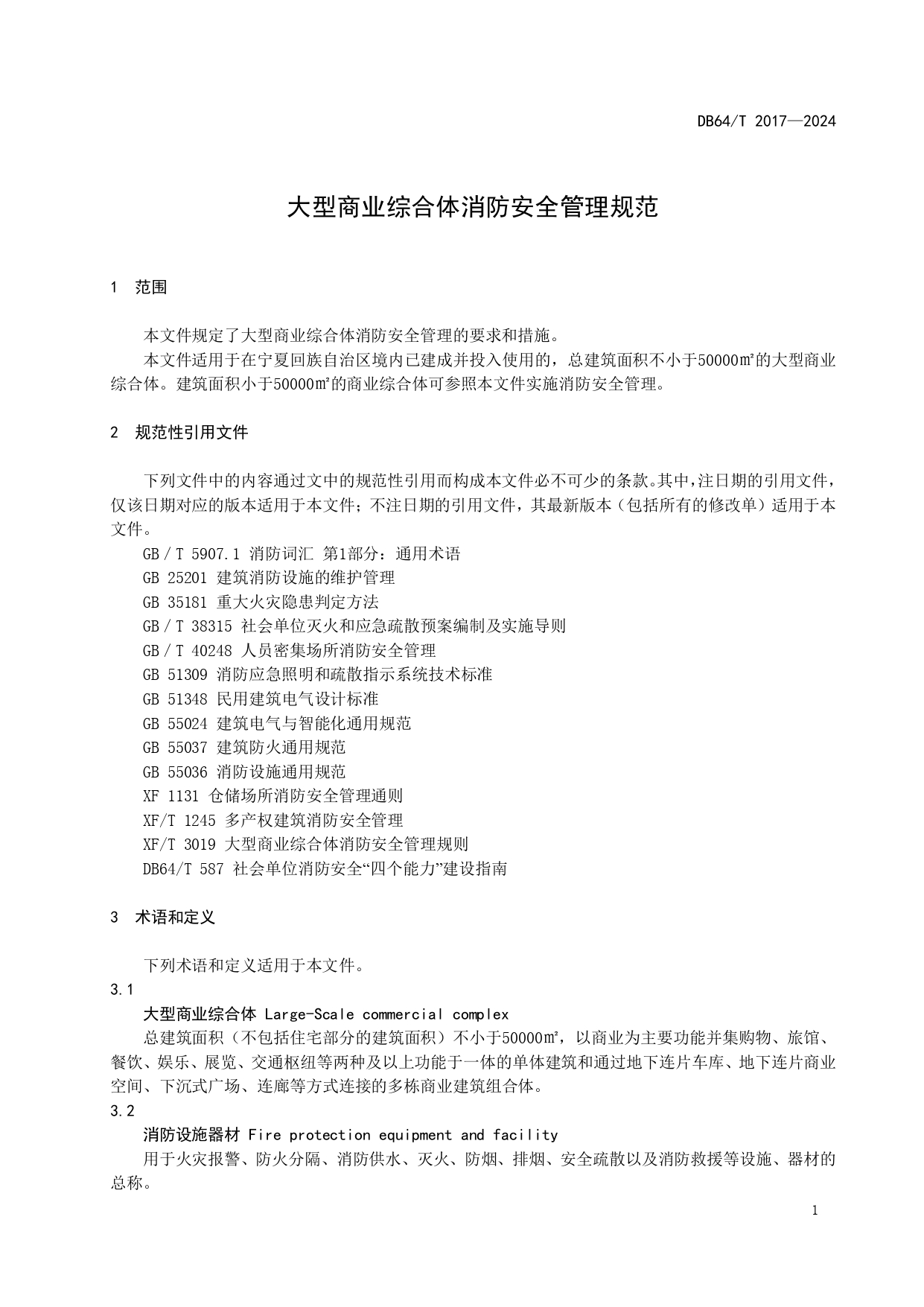大型商业综合体消防安全管理规范DB64/T 2017—2024