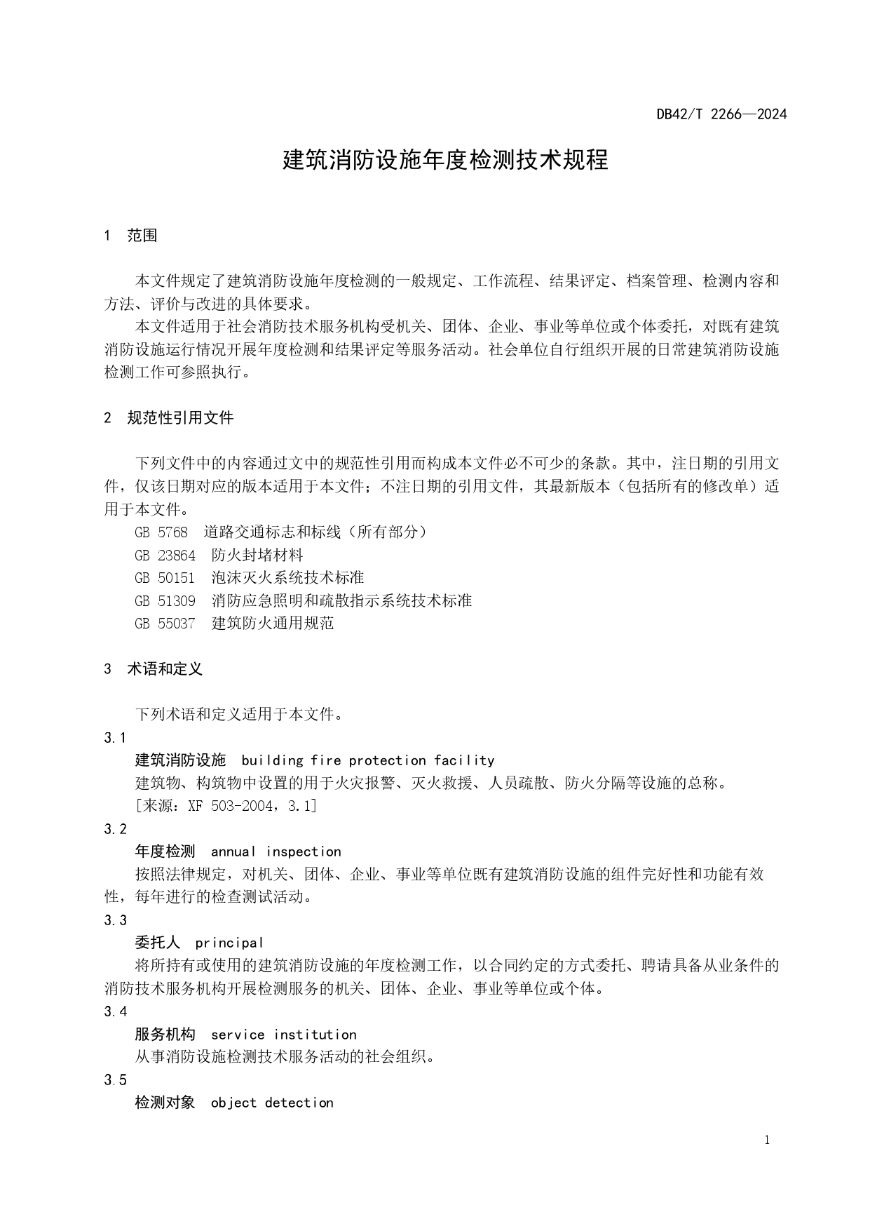 建筑消防设施年度检测技术规程DB42/T 2266-2024