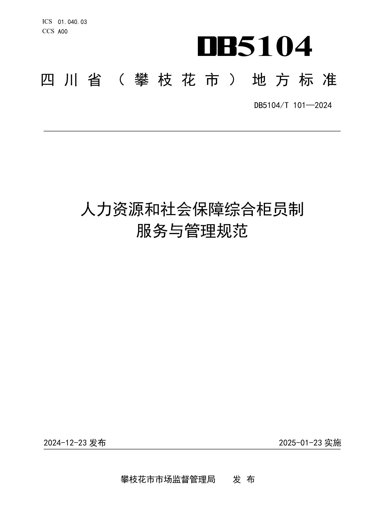 《人力资源和社会保障综合柜员制服务与管理规范》(DB5104/T101-2024)