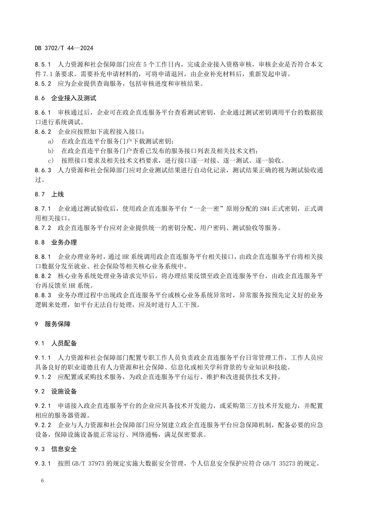 《人力资源和社会保障“政企直连”服务规范》(DB3702/T 44-2024)