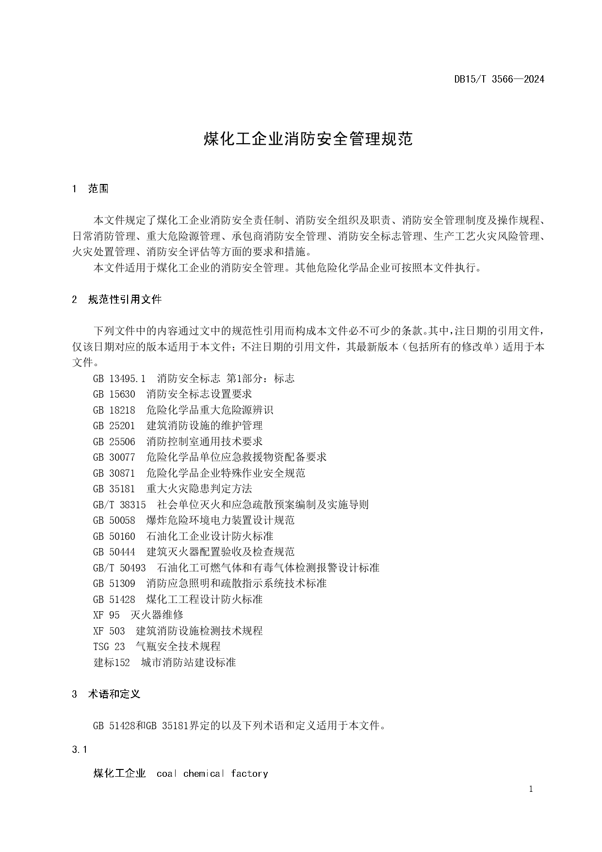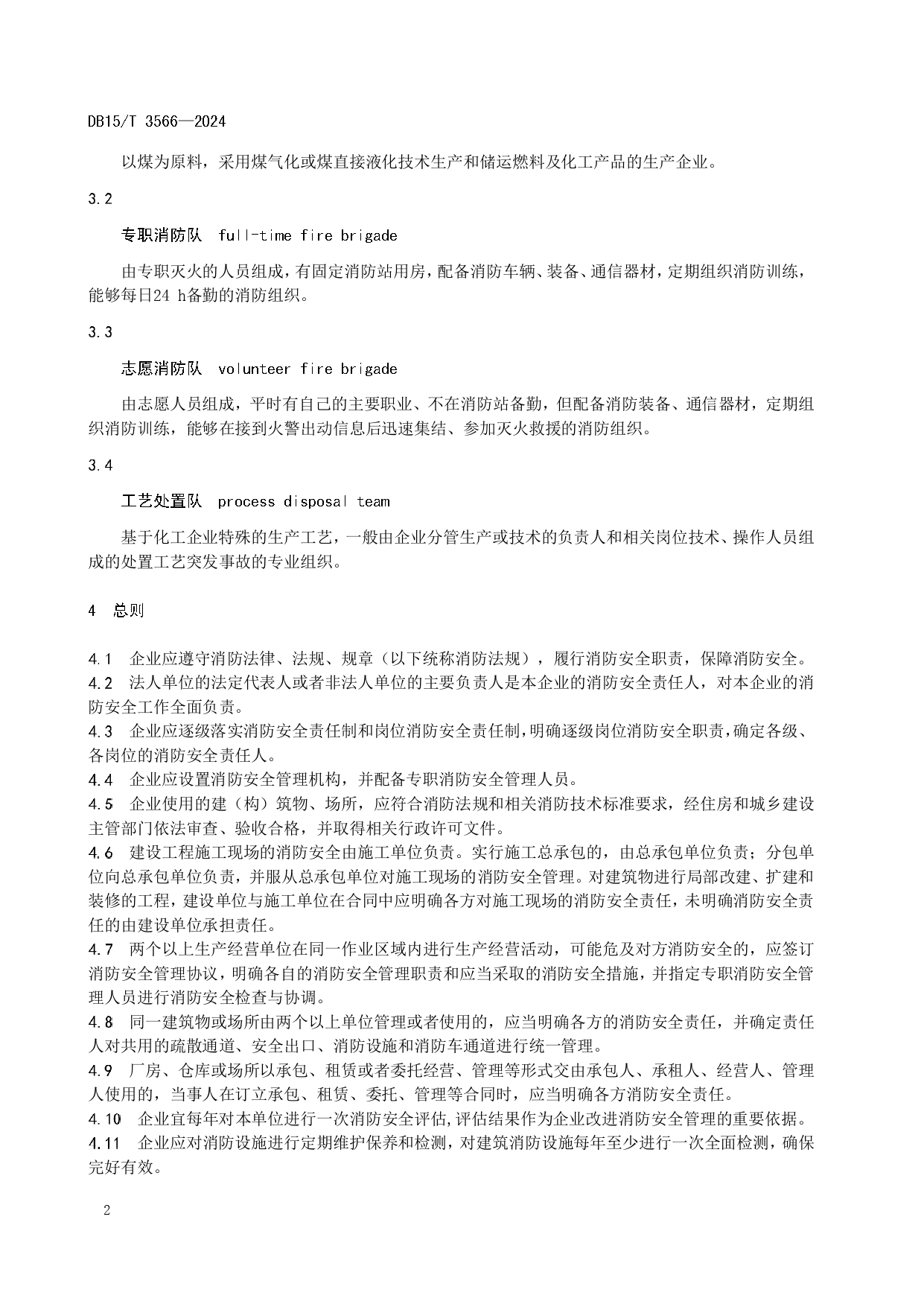 煤化工企业消防安全管理规范DB15/T 3566-2024