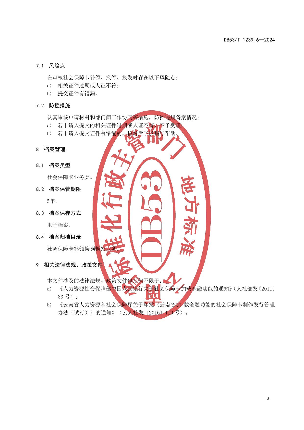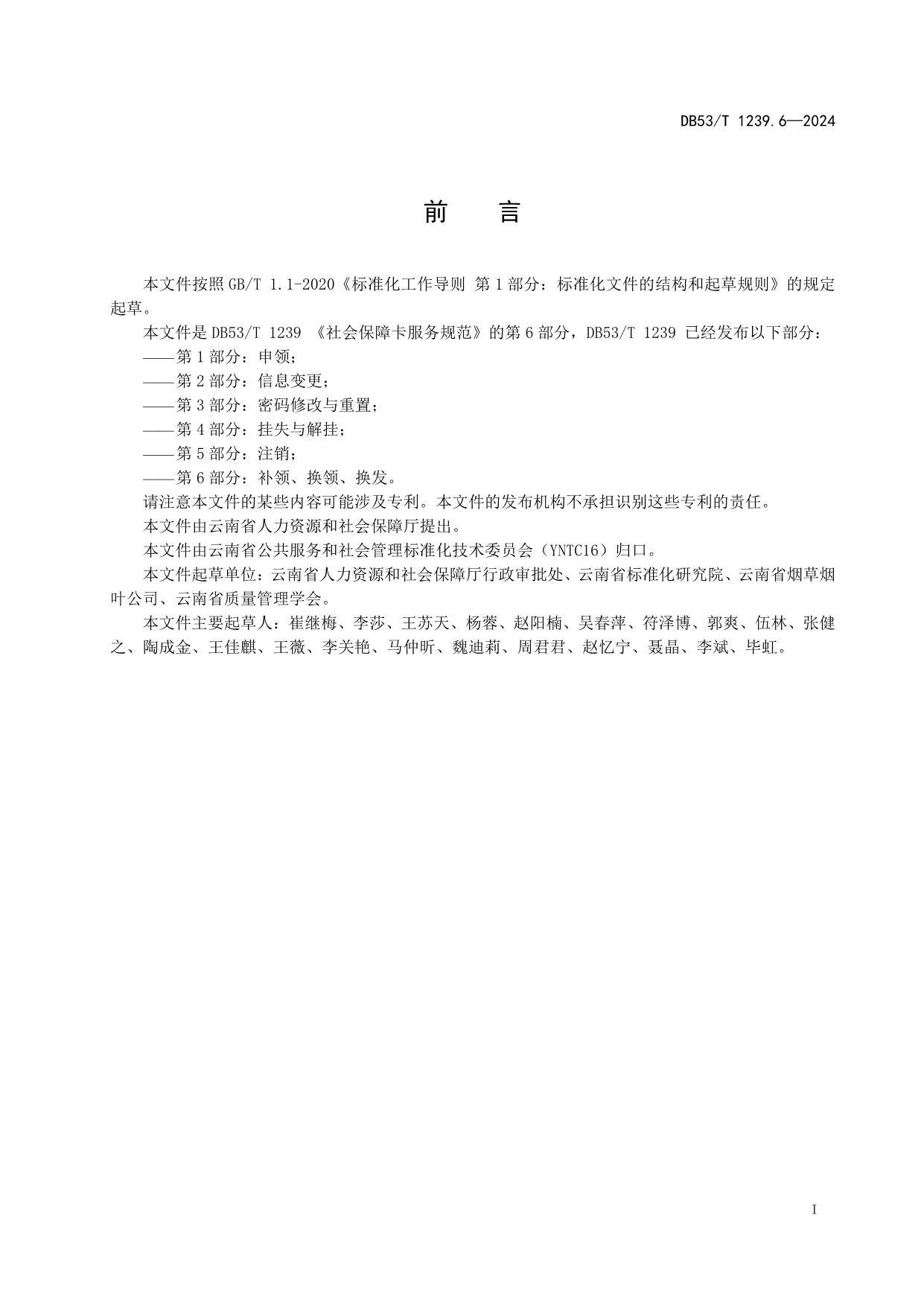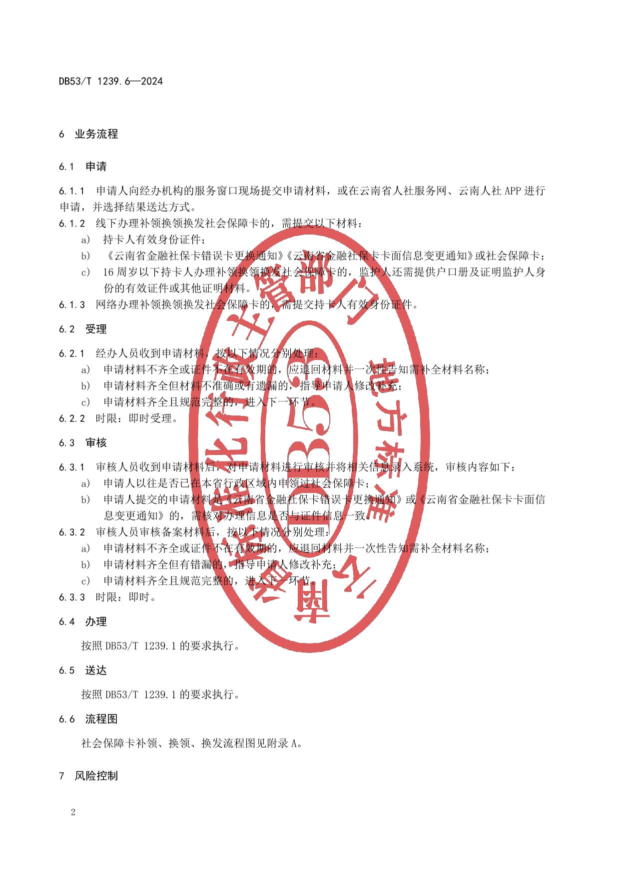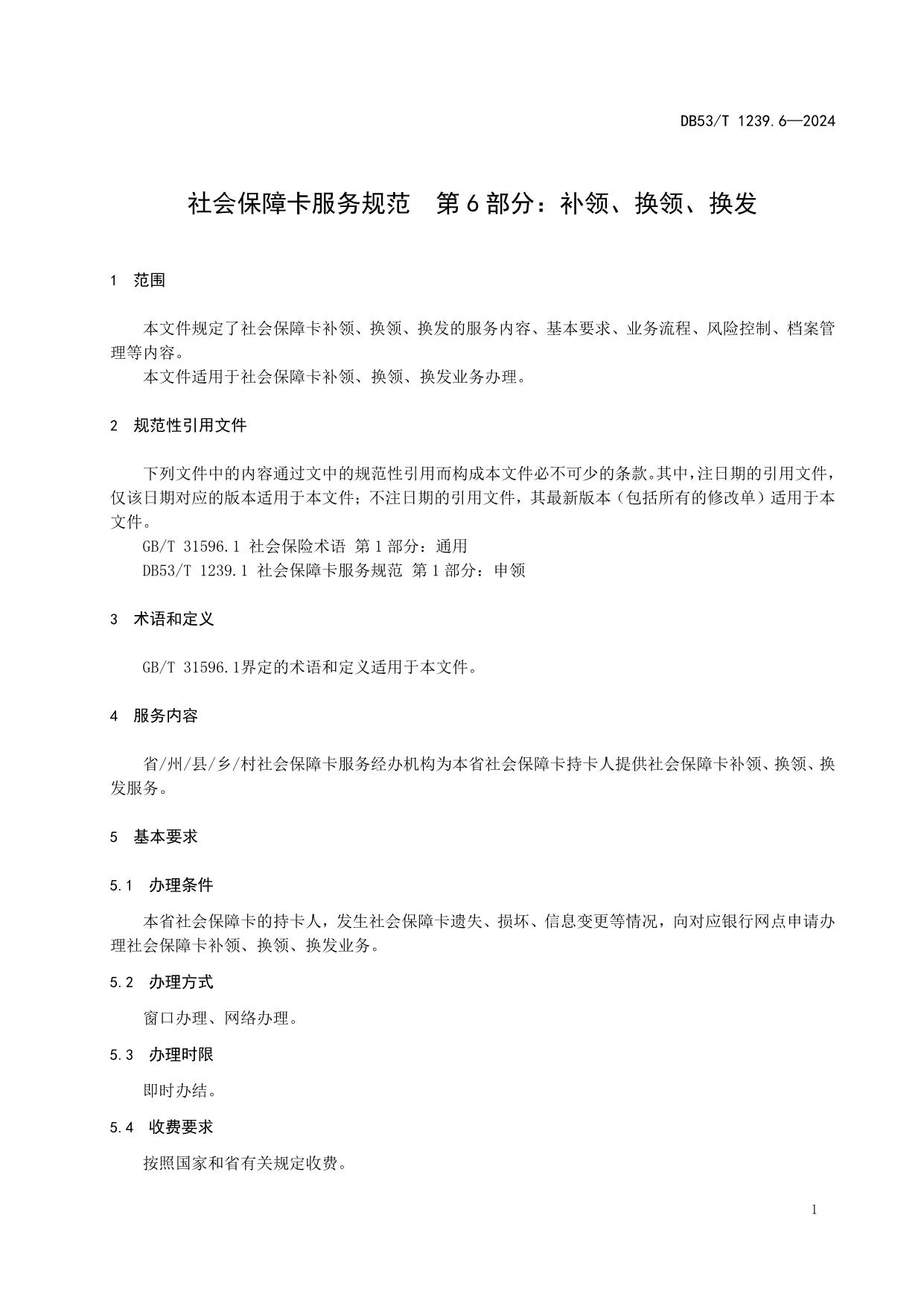 《社会保障卡服务规范 第6部分:补领、换领、换发》(DB53/T 1239.6-2024)