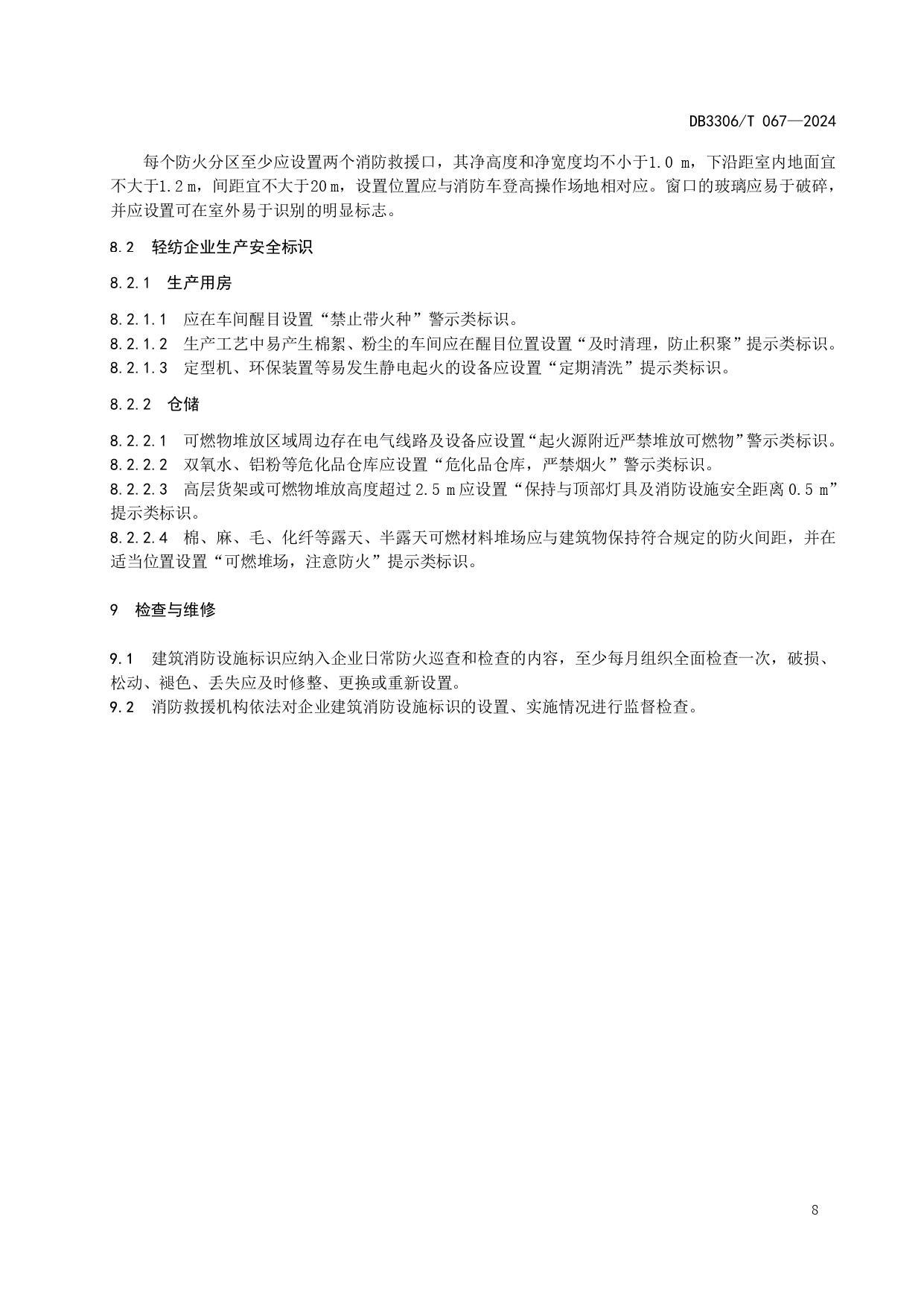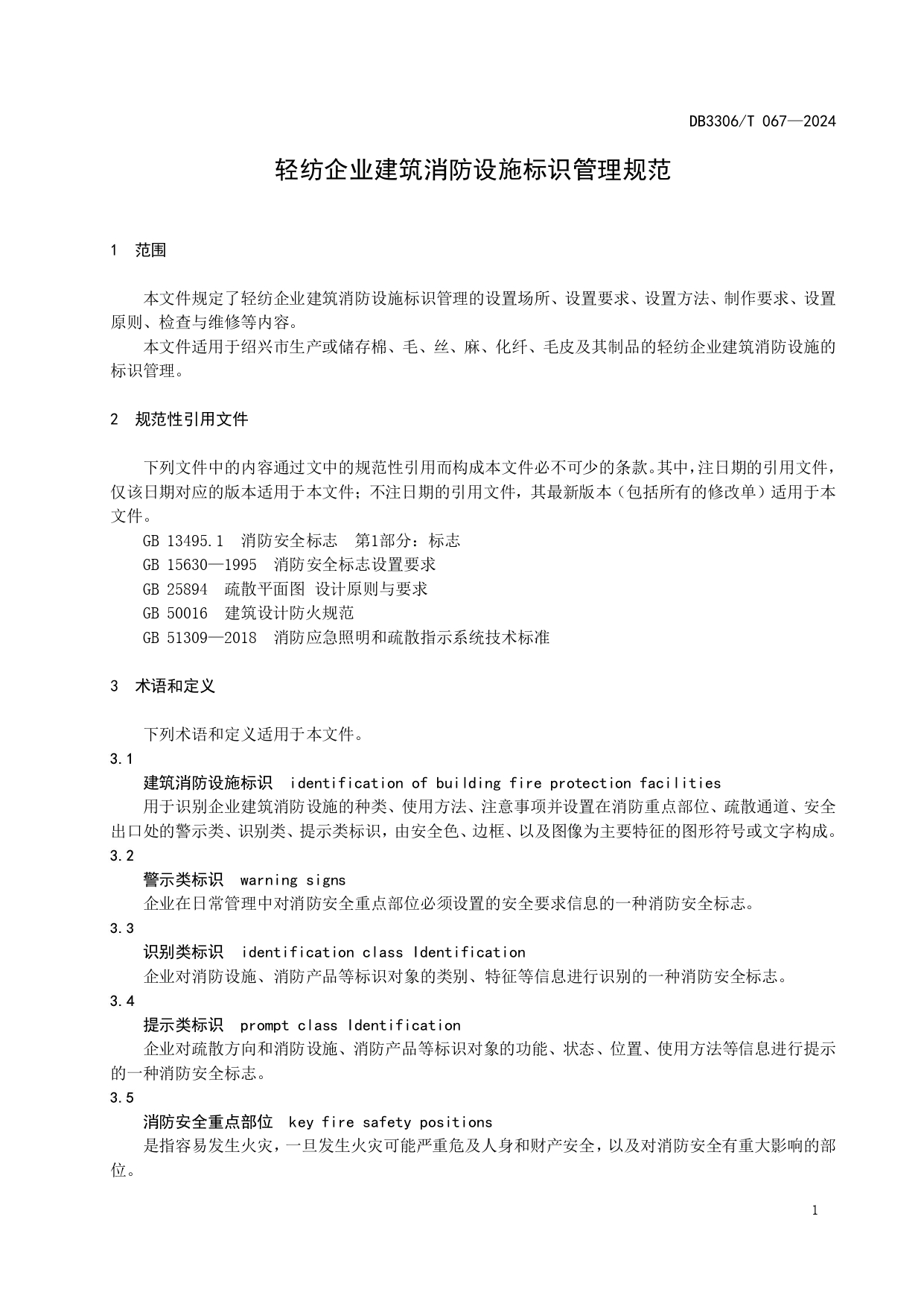 轻纺企业建筑消防设施标识管理规范DB3306/T 067-2024