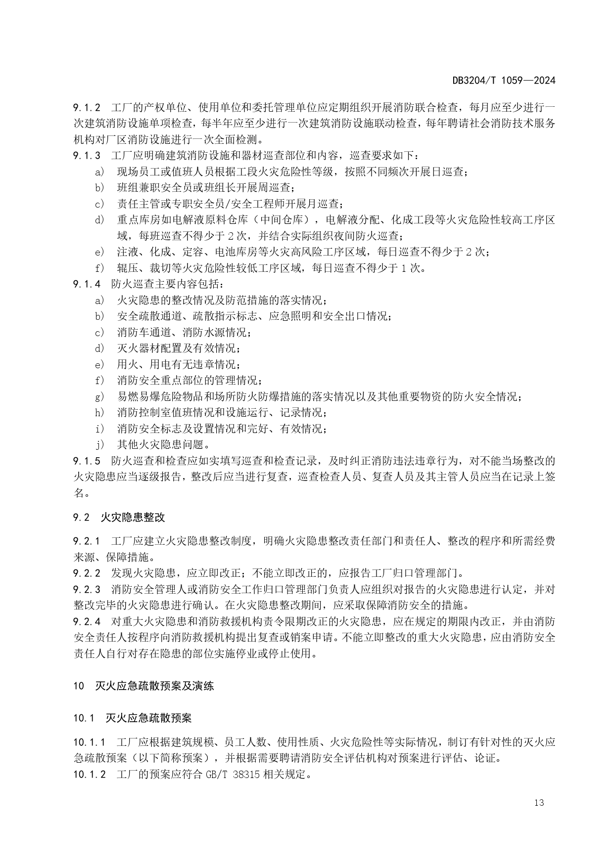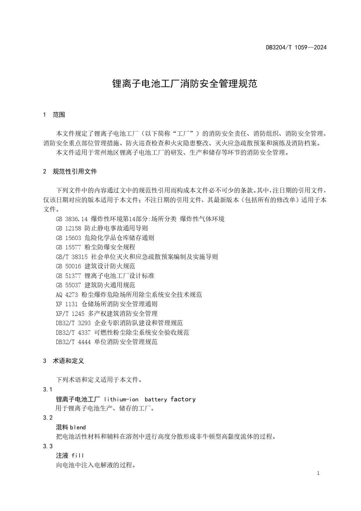 锂离子电池工厂消防安全管理规范DB3204/T 1059-2024
