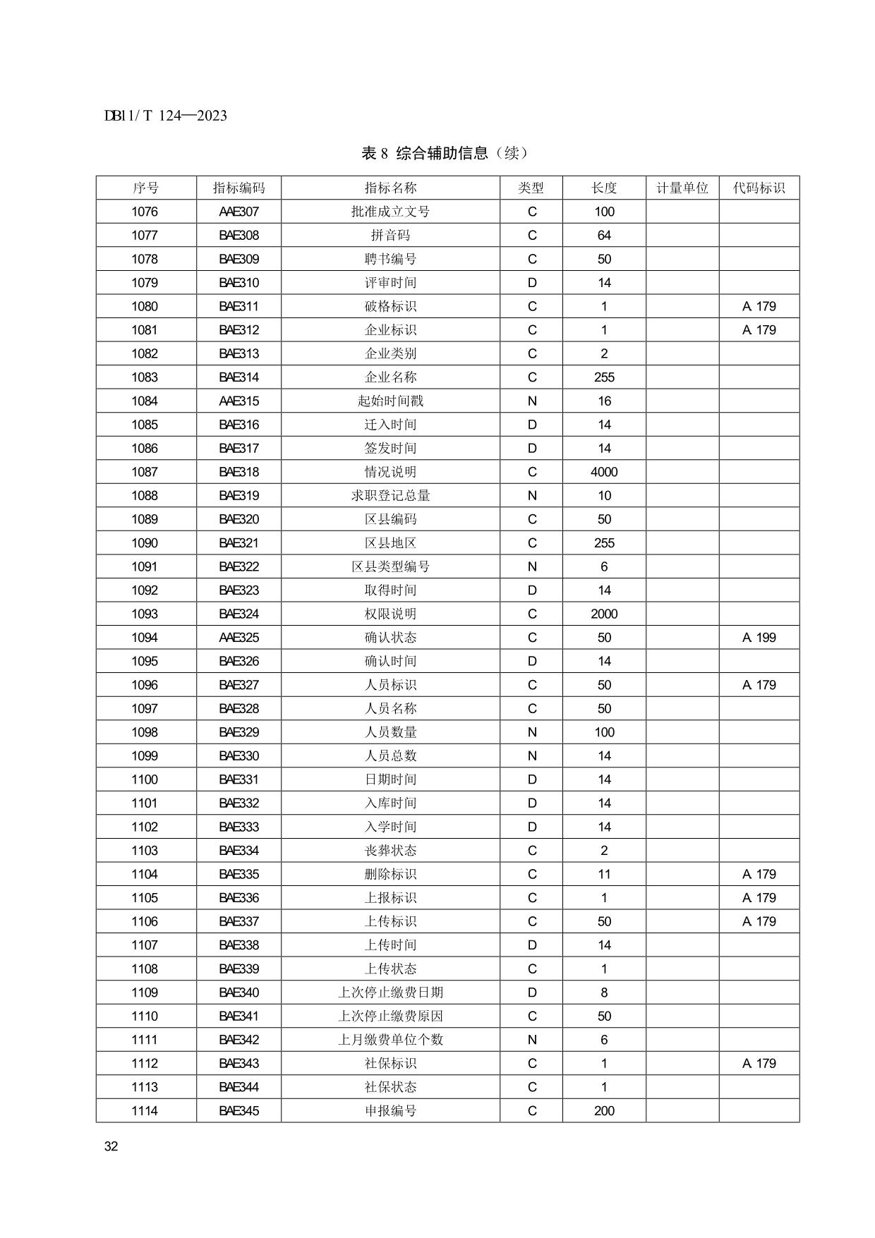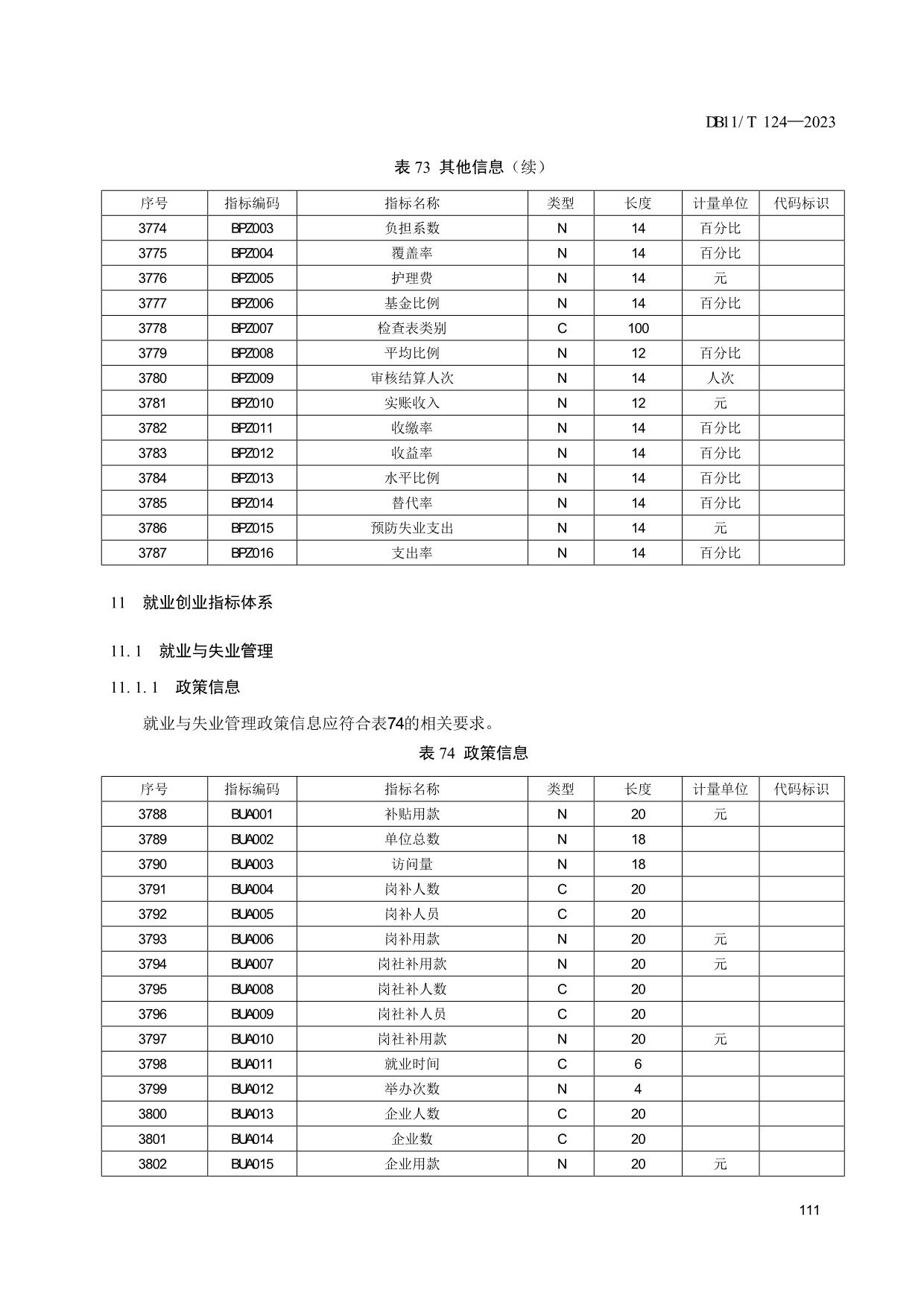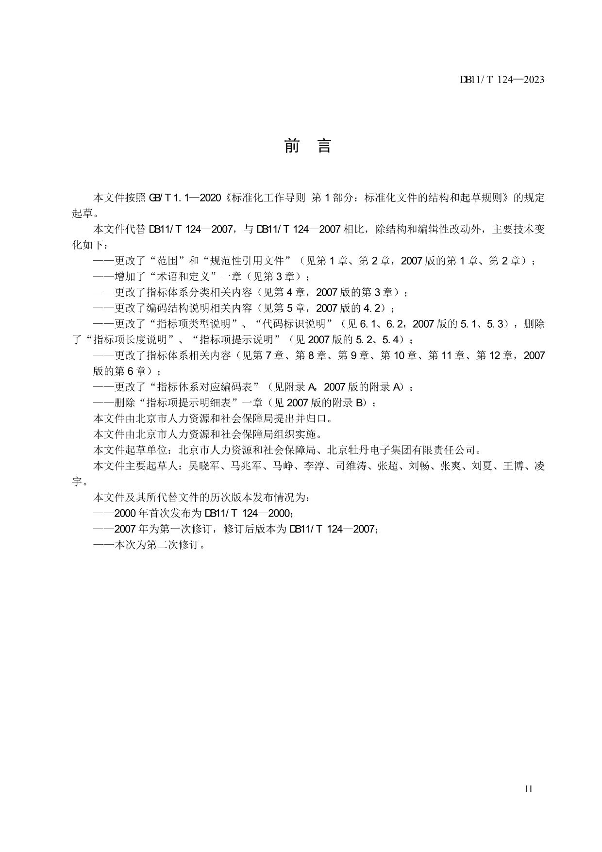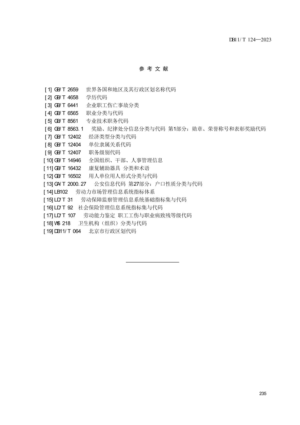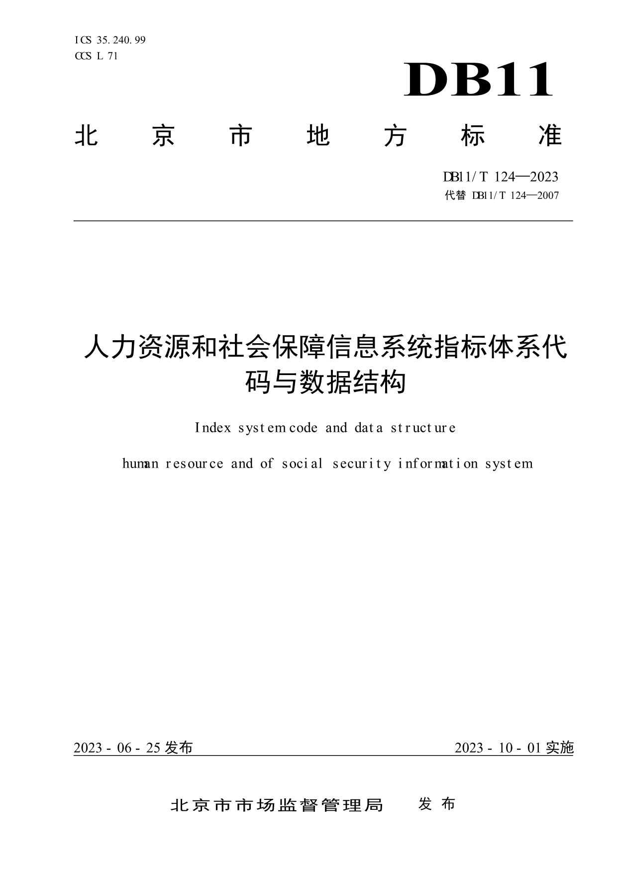 《人力资源和社会保障信息系统指标体系代码与数据结构》(DB11/T 124-2023)