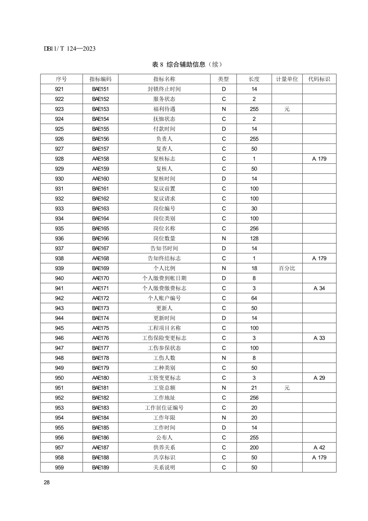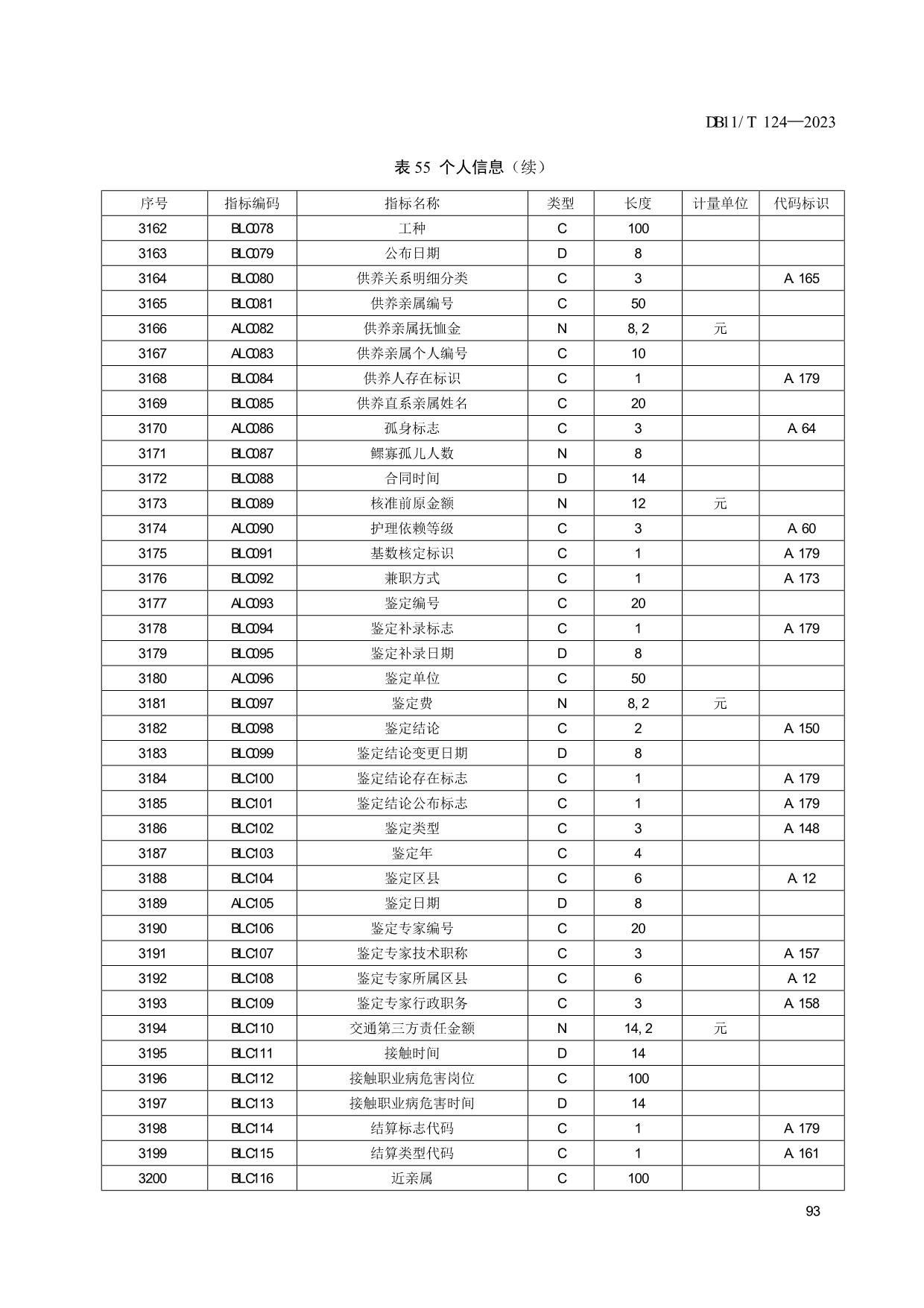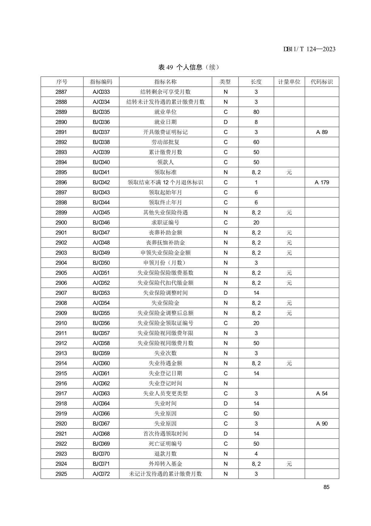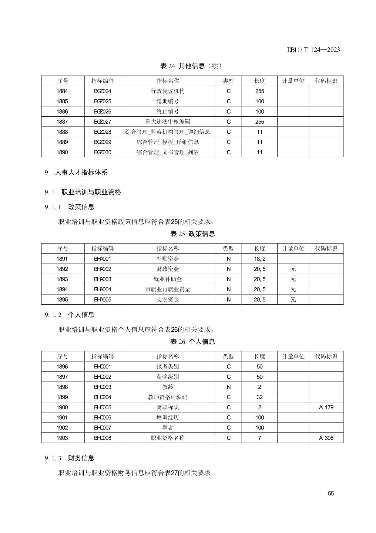 《人力资源和社会保障信息系统指标体系代码与数据结构》(DB11/T 124-2023)