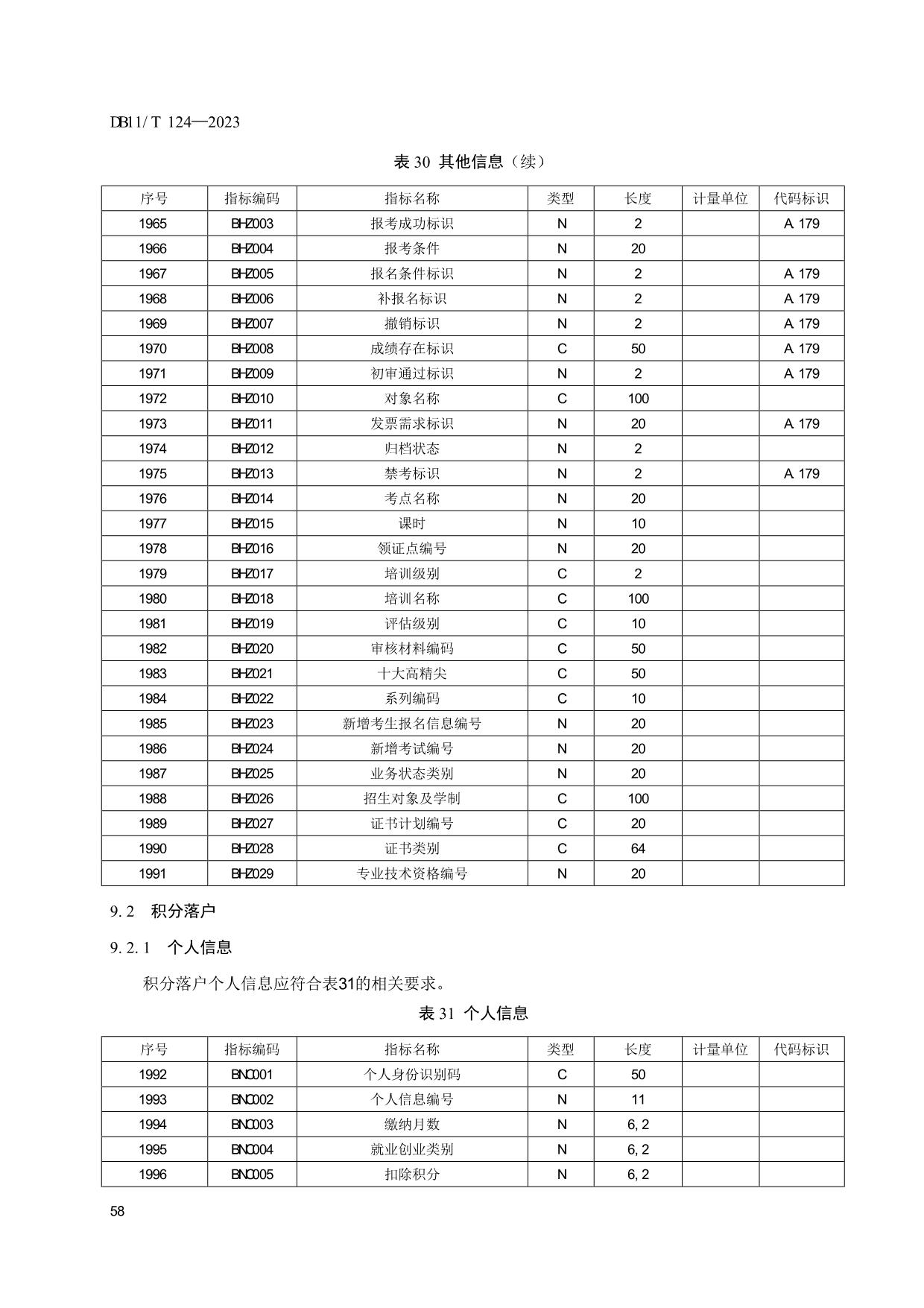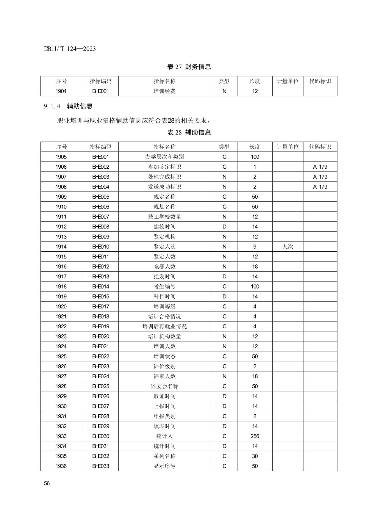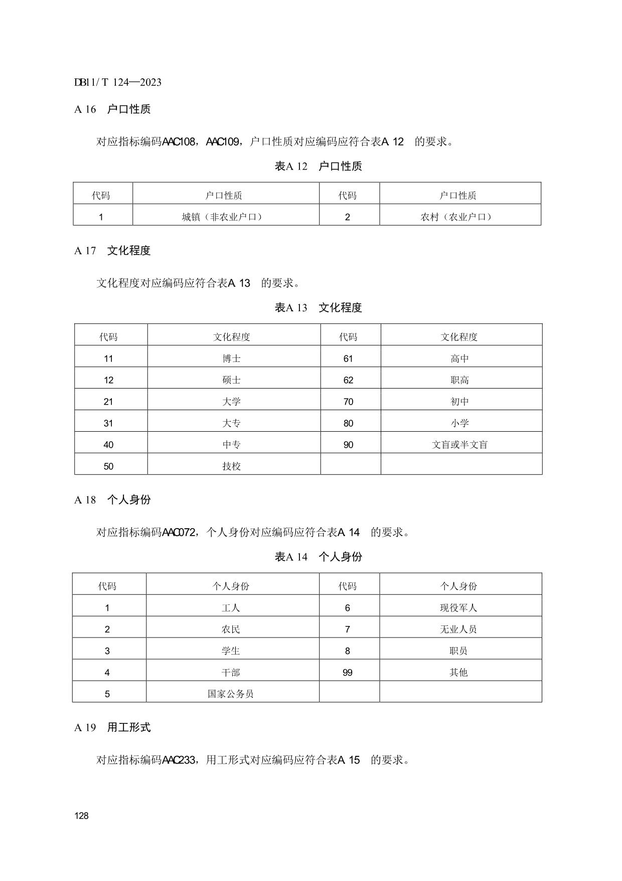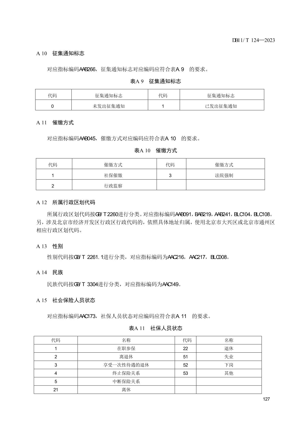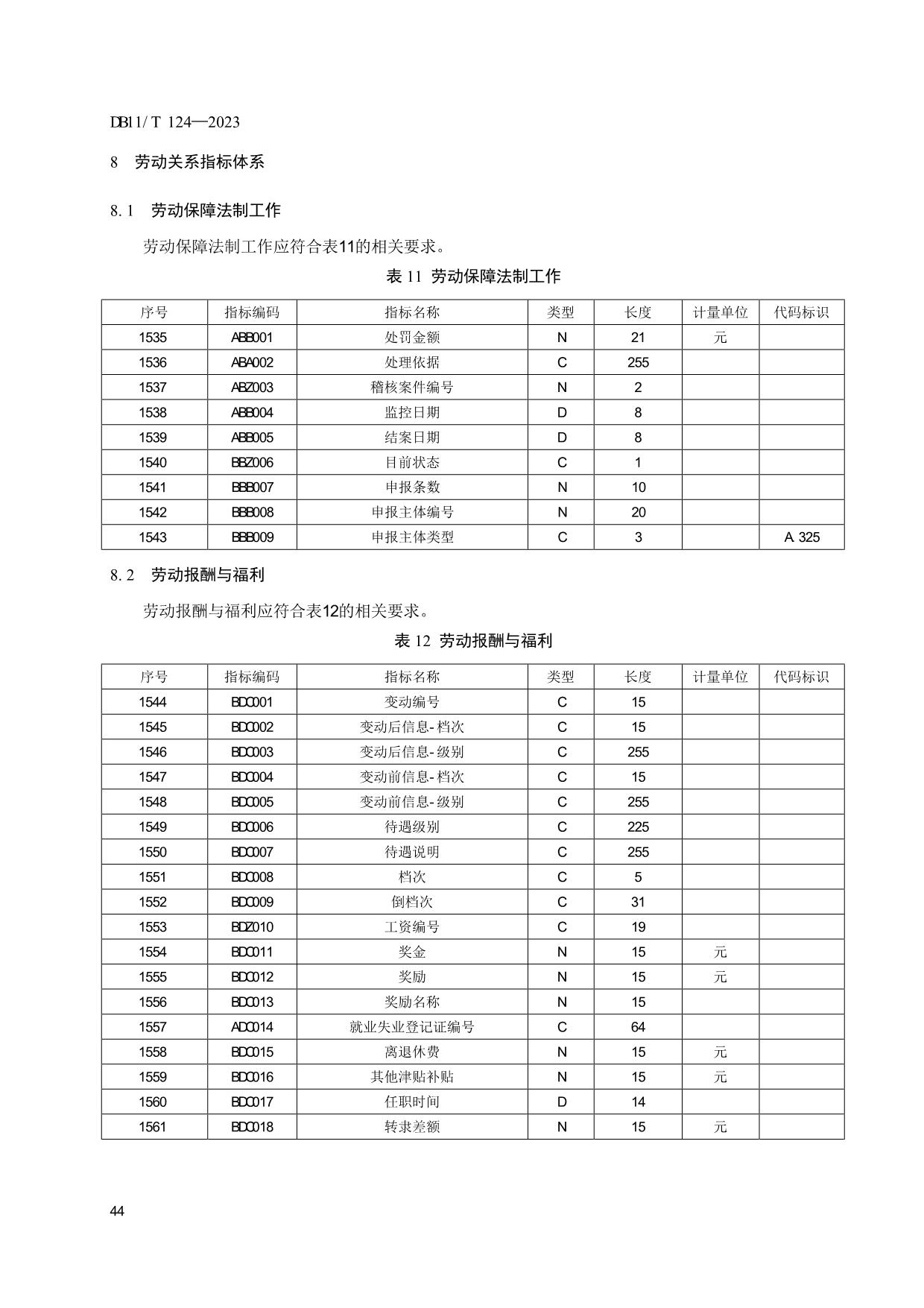 《人力资源和社会保障信息系统指标体系代码与数据结构》(DB11/T 124-2023)