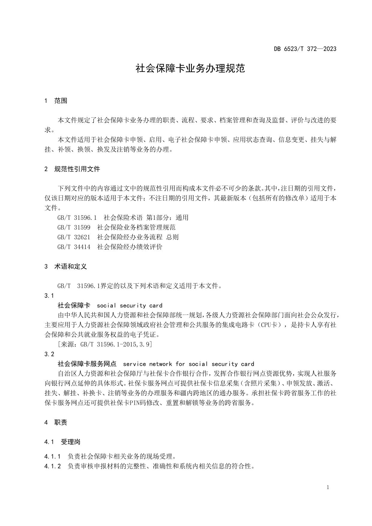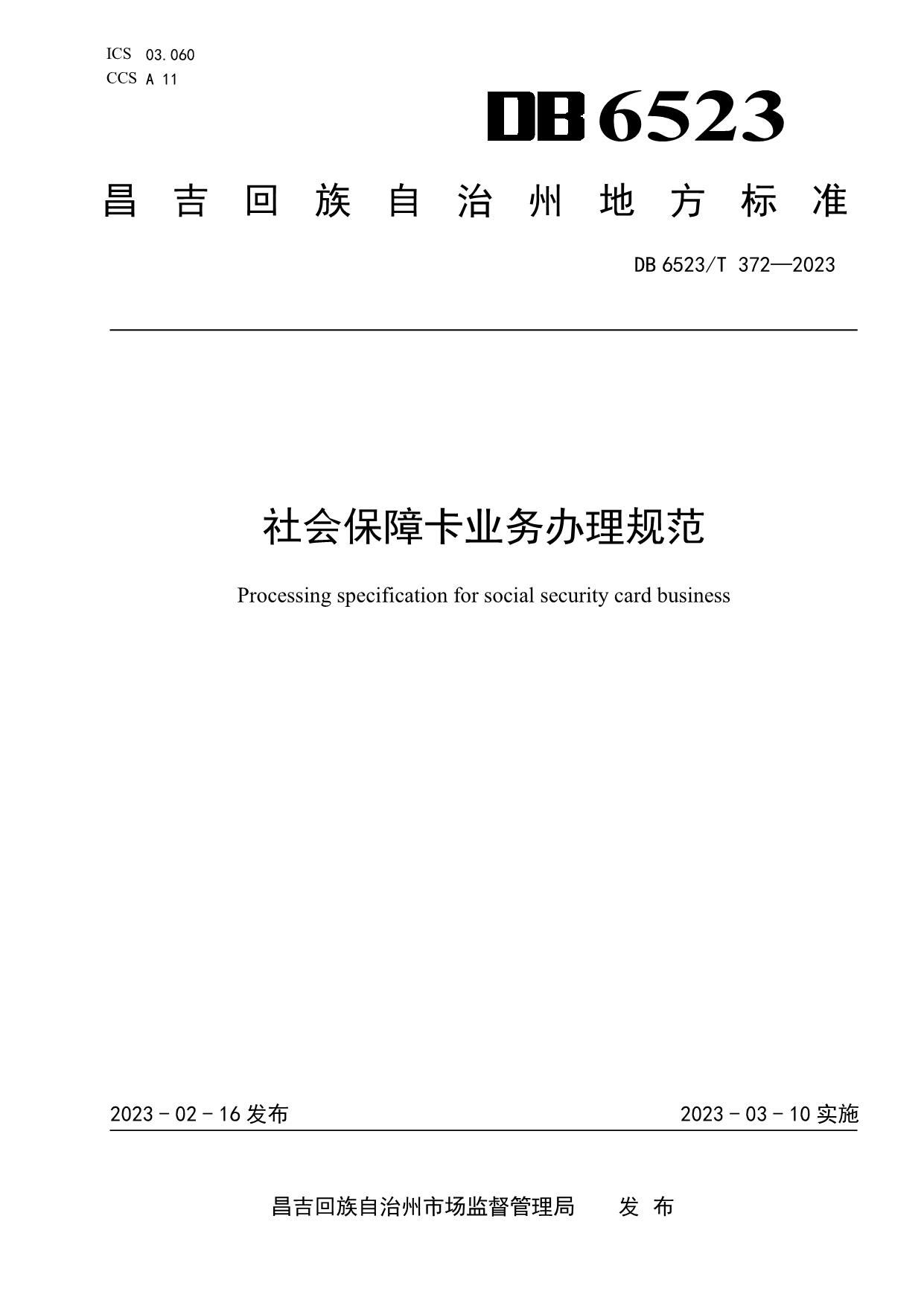 《社会保障卡业务办理规范》(DB6523/T 372-2023)