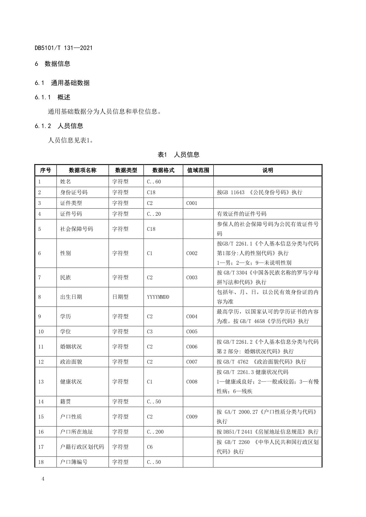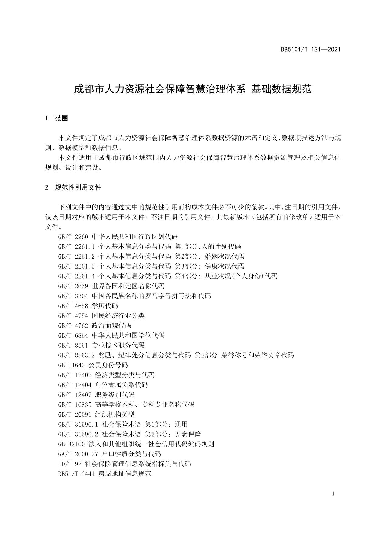 《成都市人力资源社会保障智慧治理体系 基础数据规范》(DB5101/T 131—2021)
