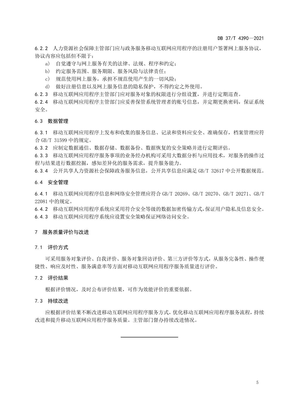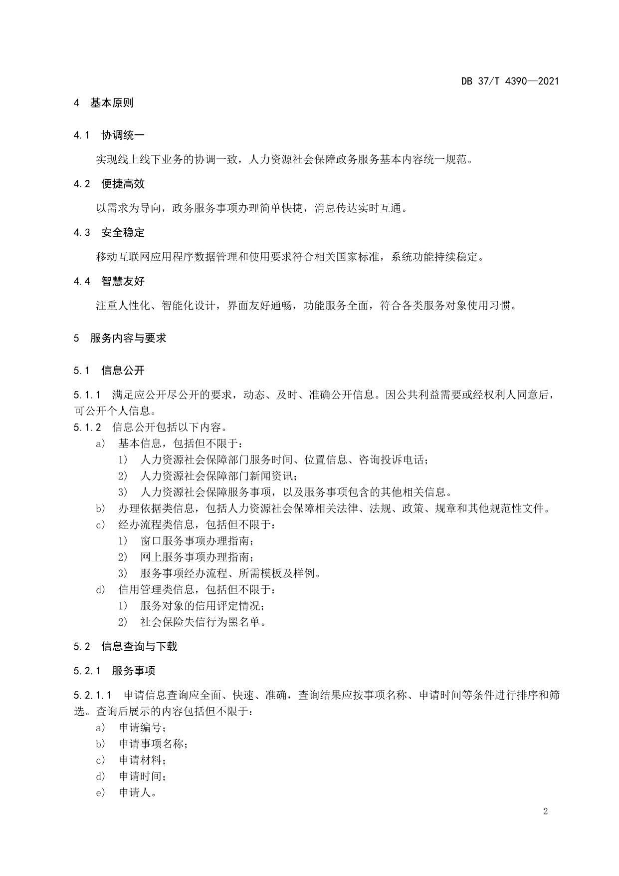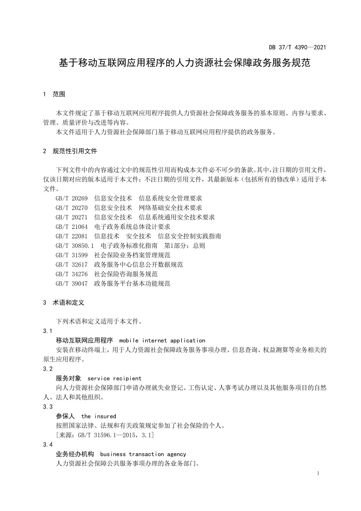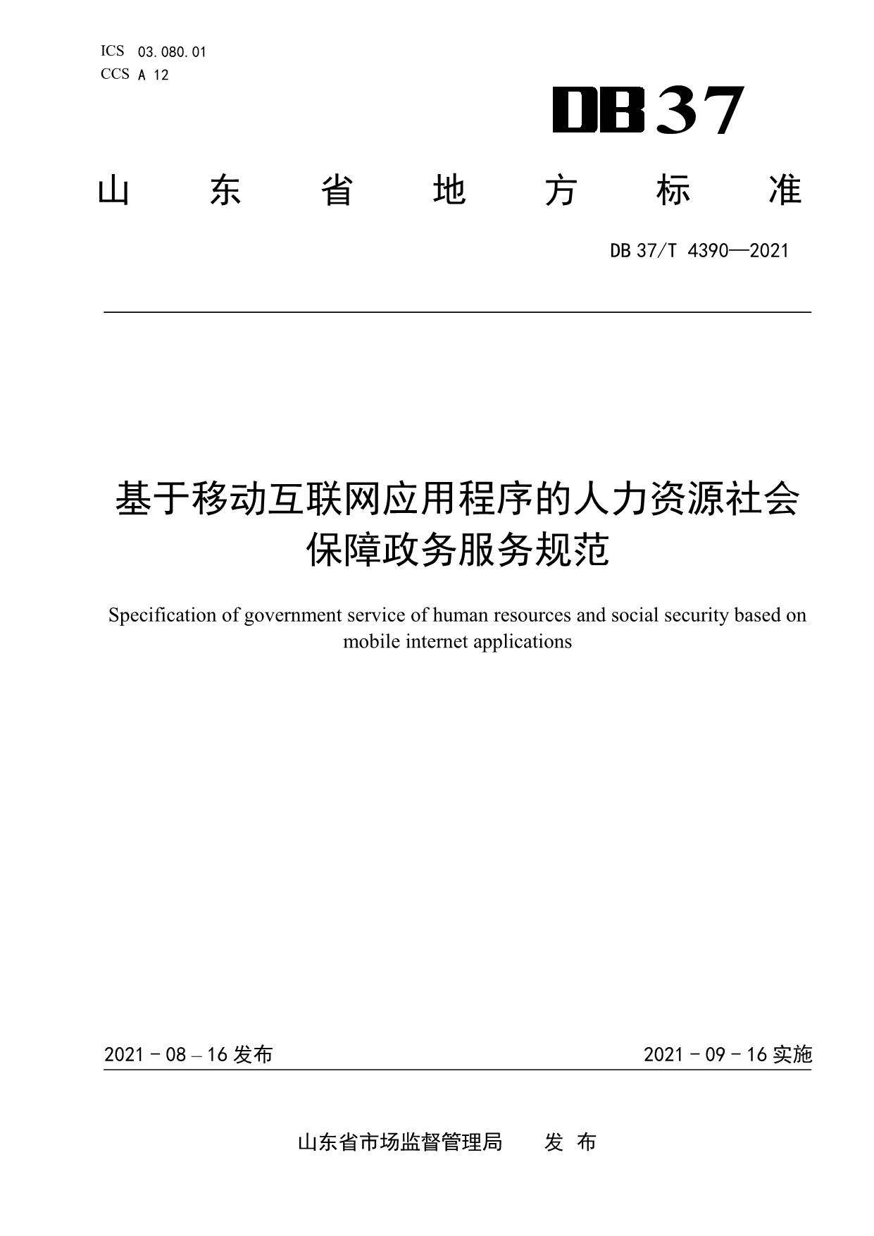 《基于移动互联网应用程序的人力资源社会保障政务服务规范》(DB37/T 4390—2021)