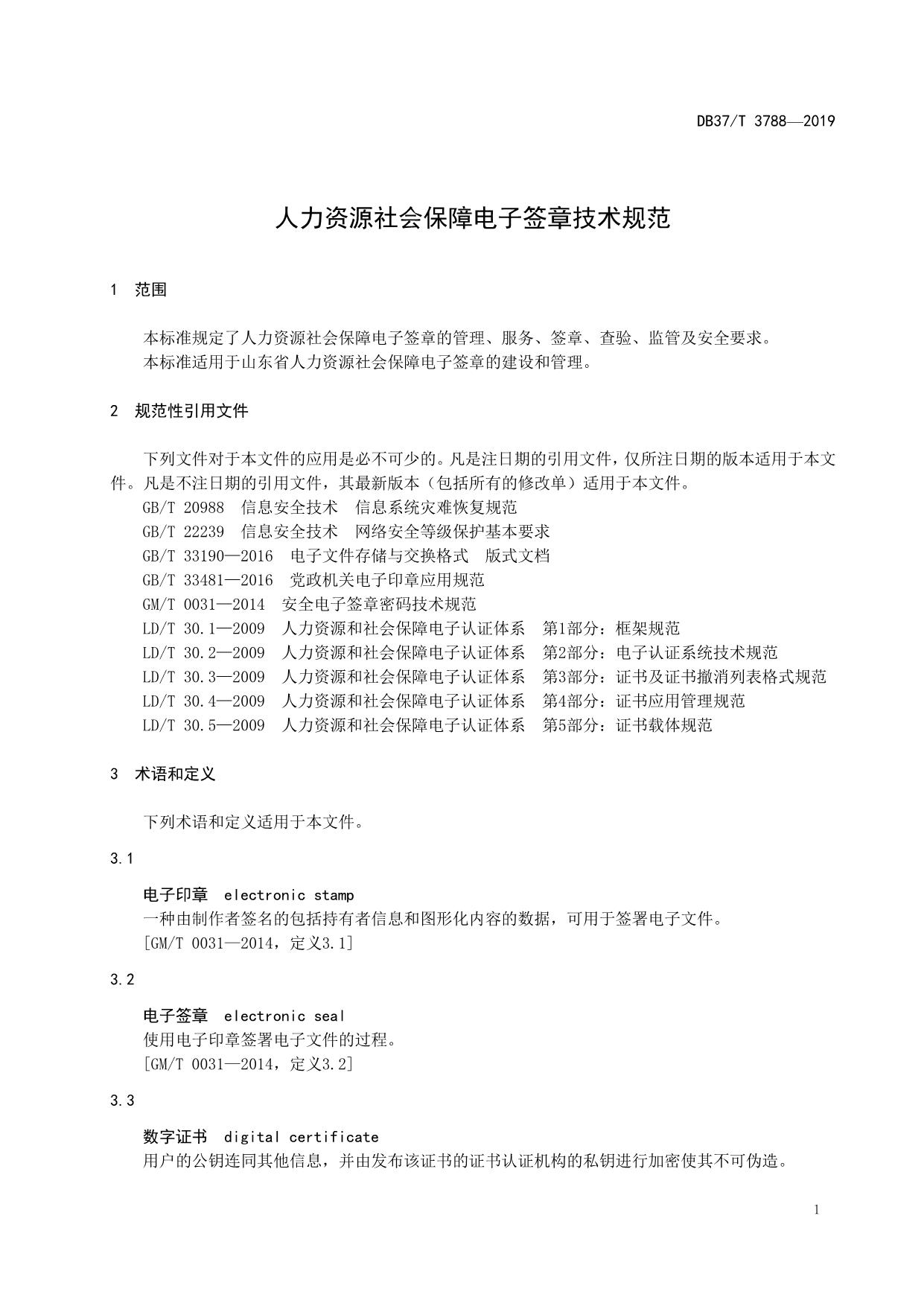 《人力资源社会保障电子签章技术规范》(DB37/T 3788-2019)