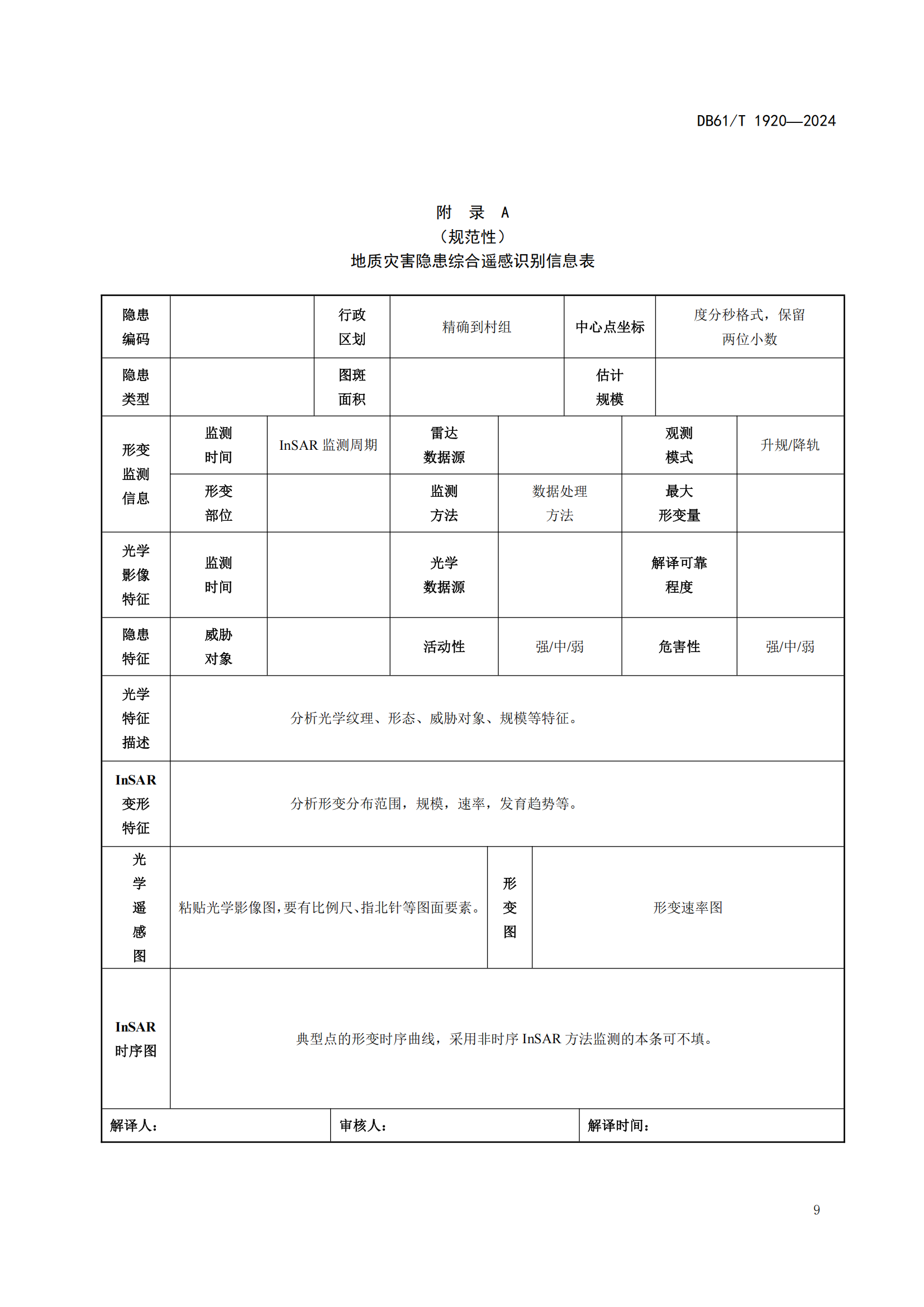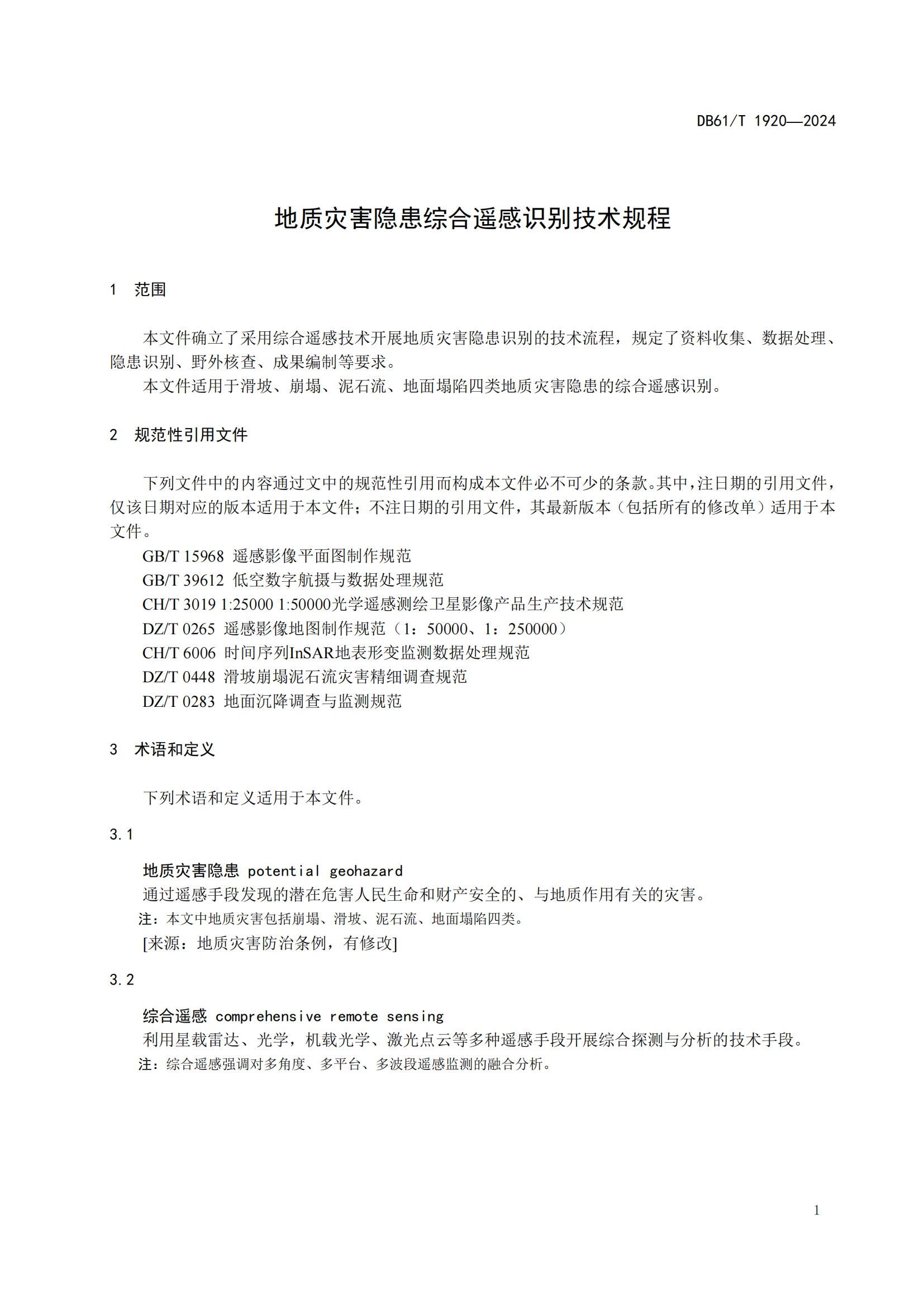 地质灾害隐患综合遥感识别技术规程