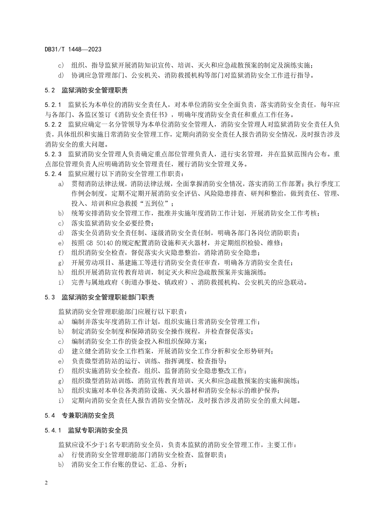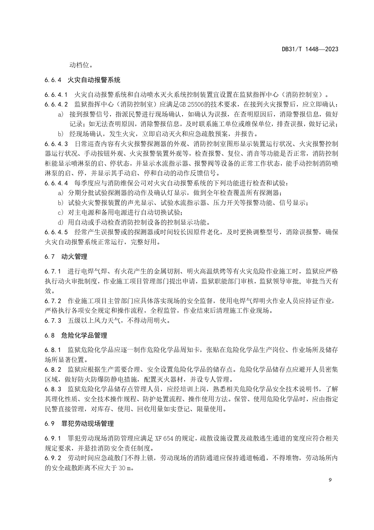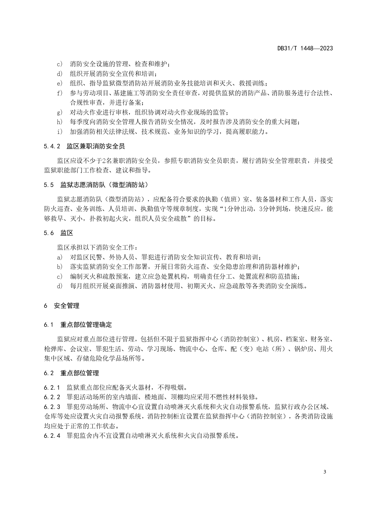 监狱场所消防安全管理规范DB31/T 1448-2023