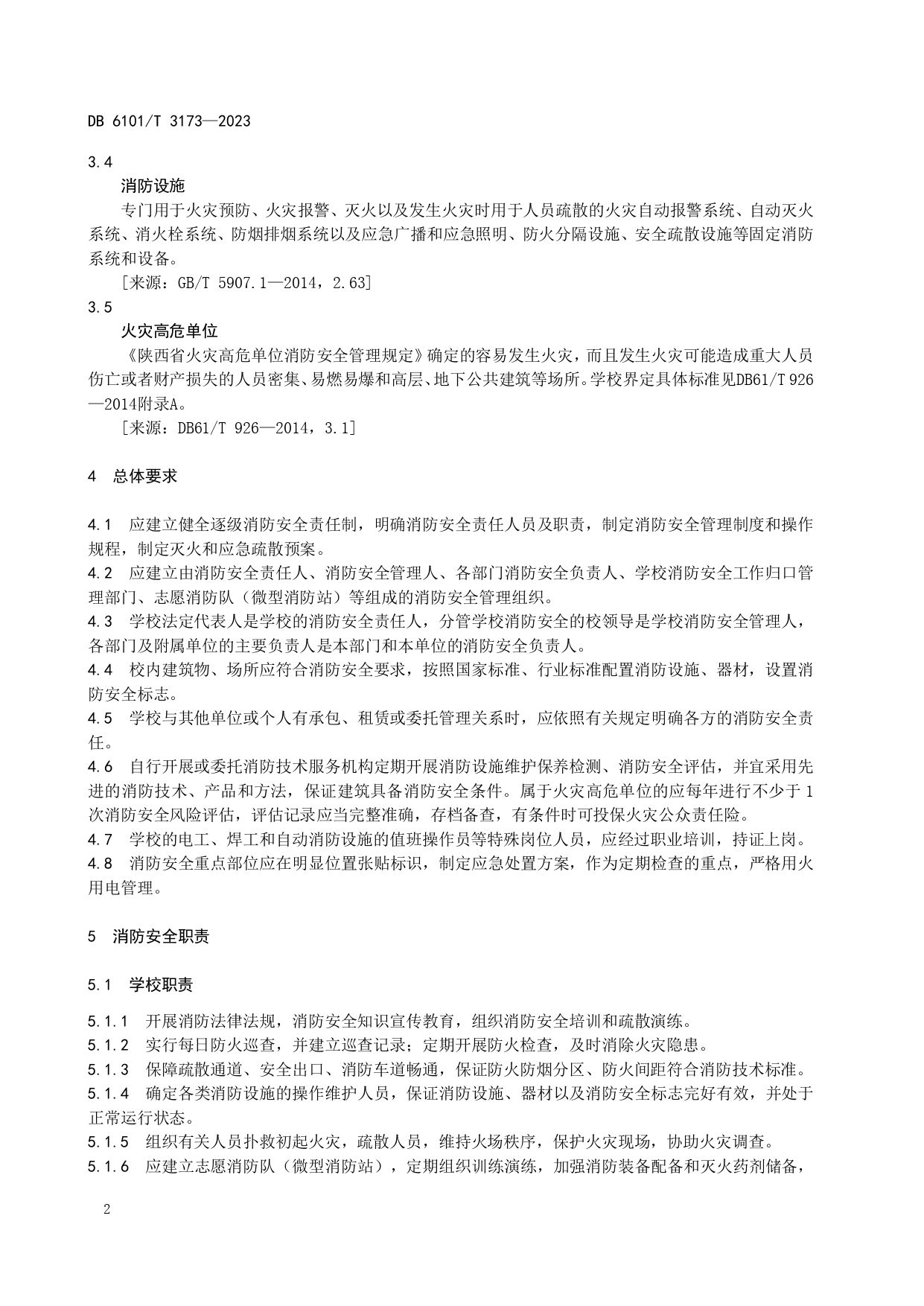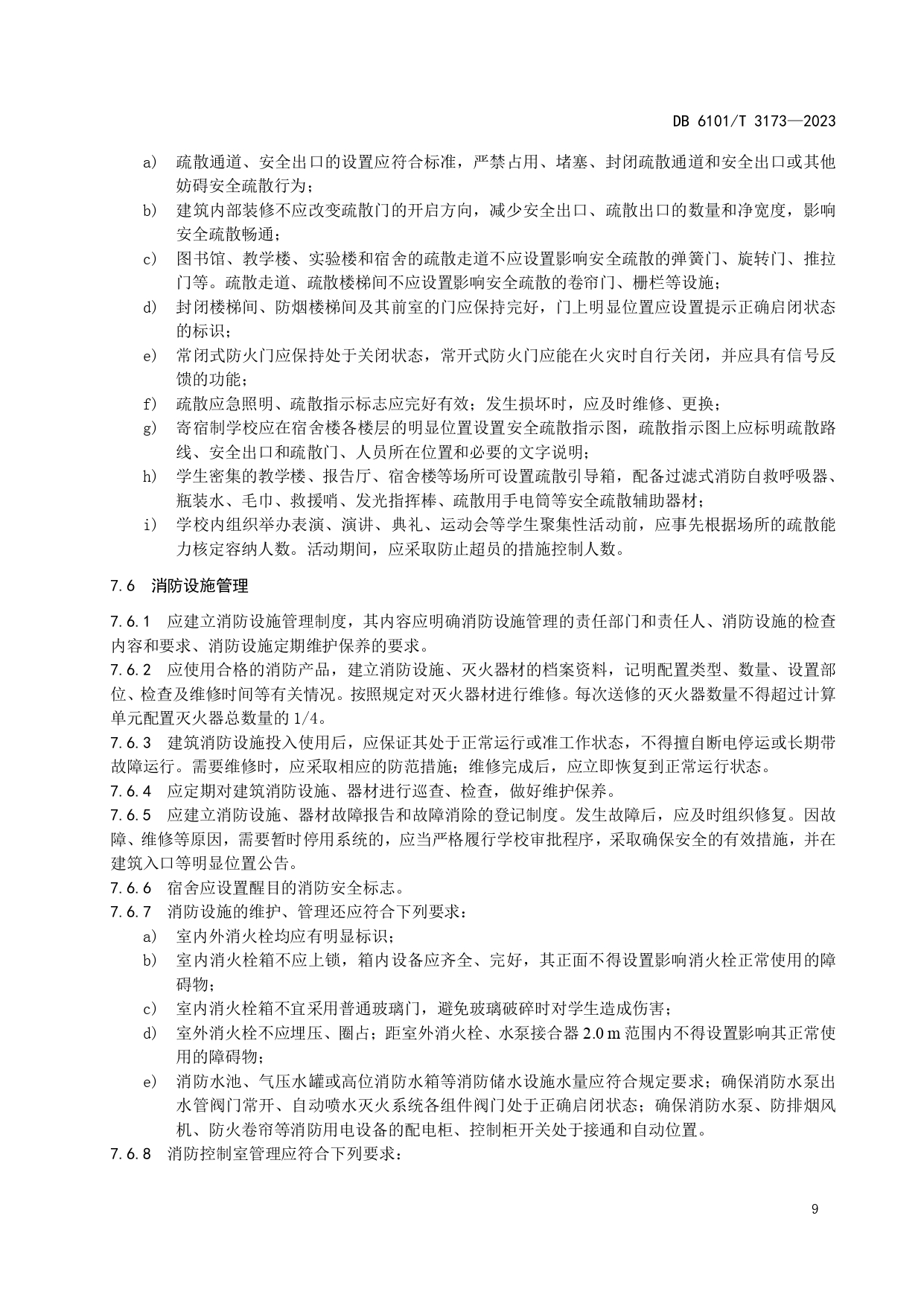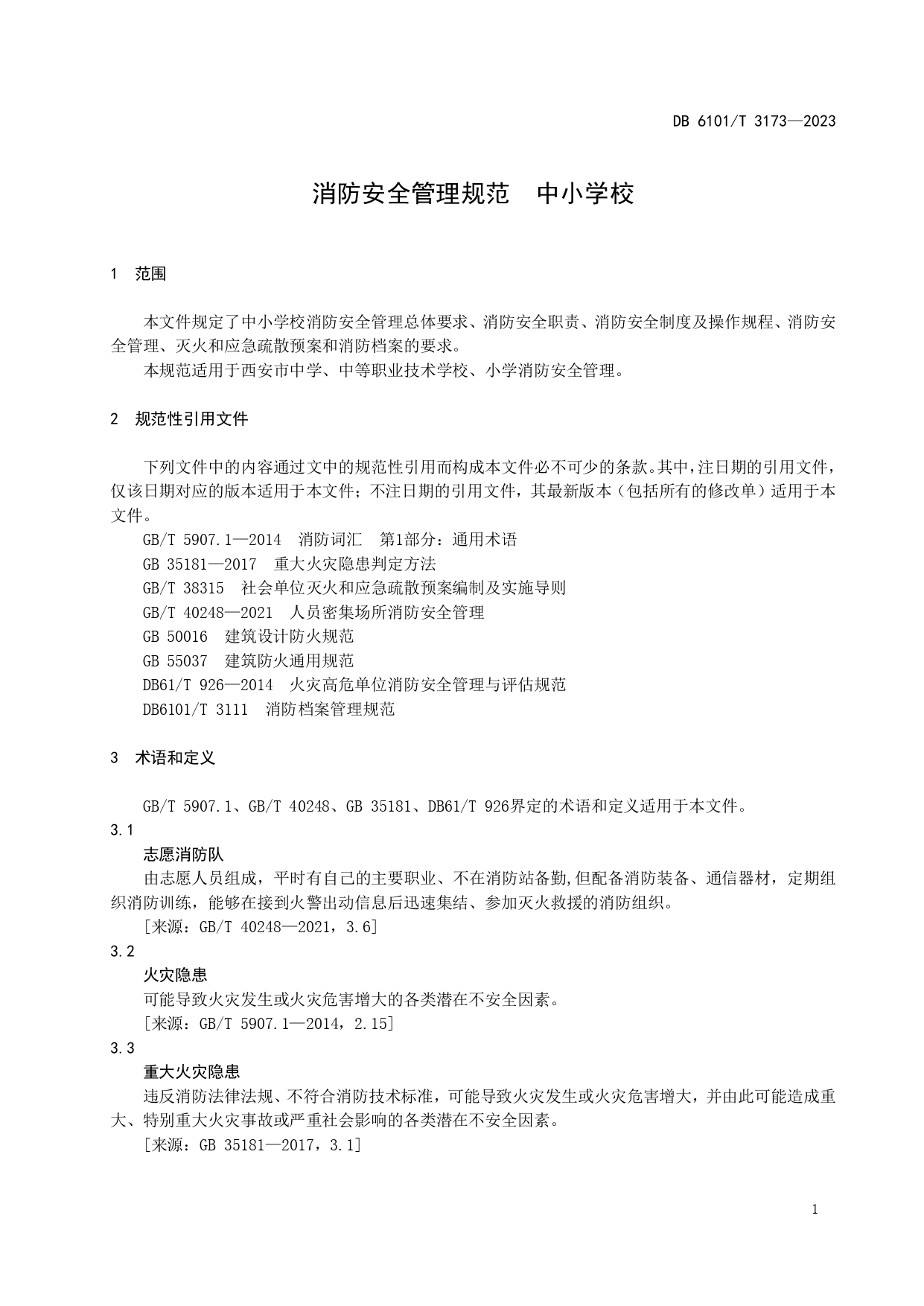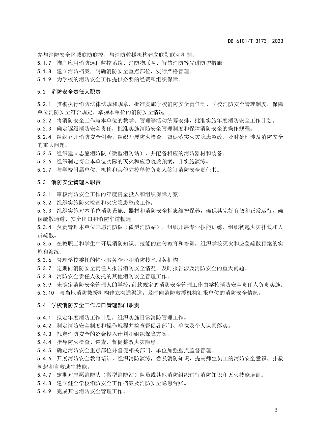 消防安全管理规范 中小学校DB6101/T 3173-2023