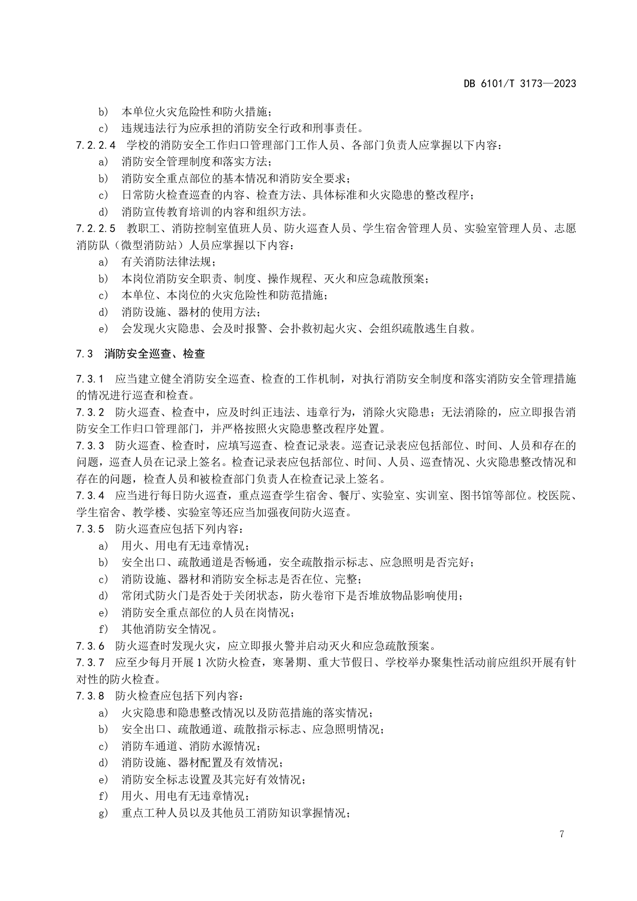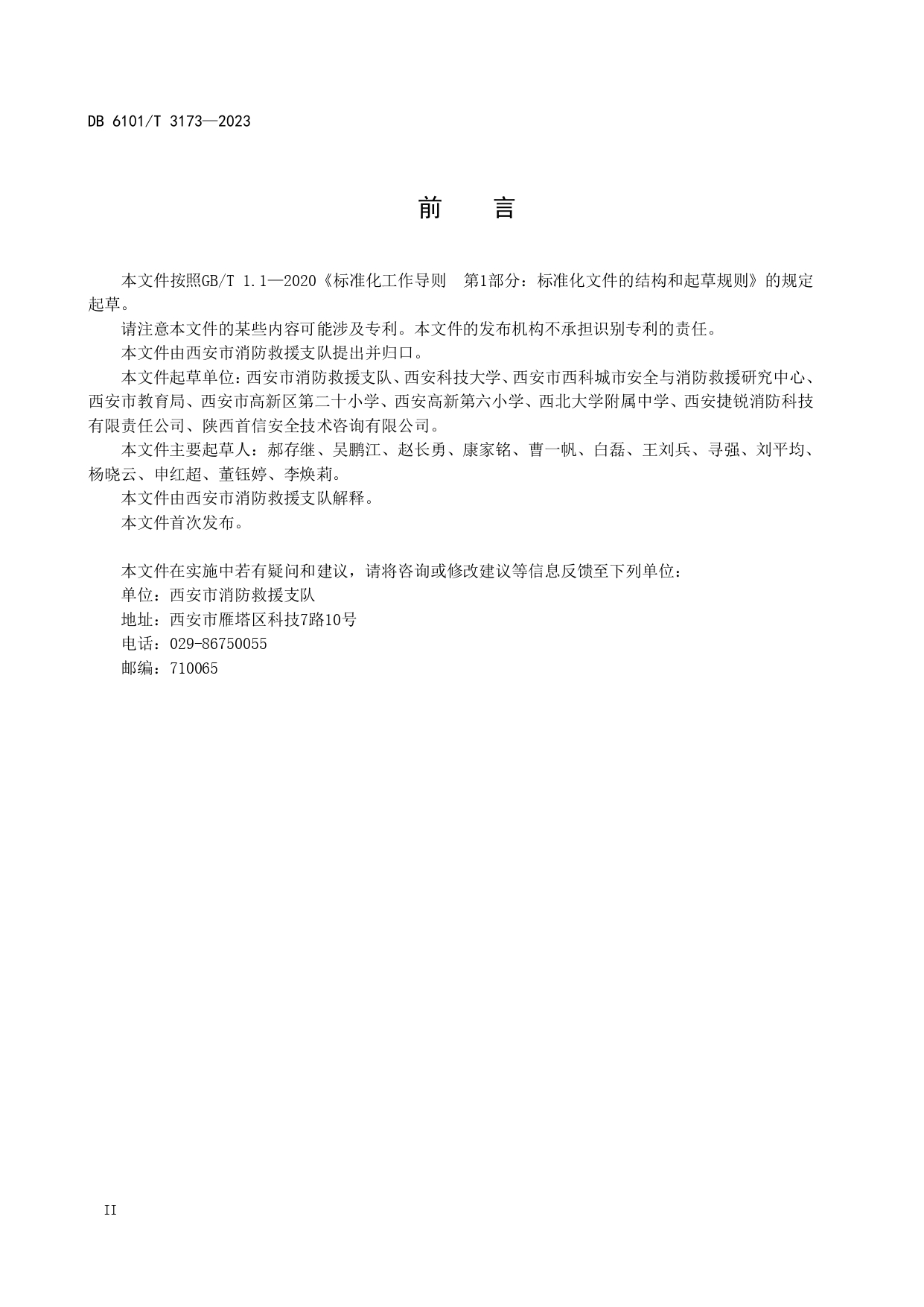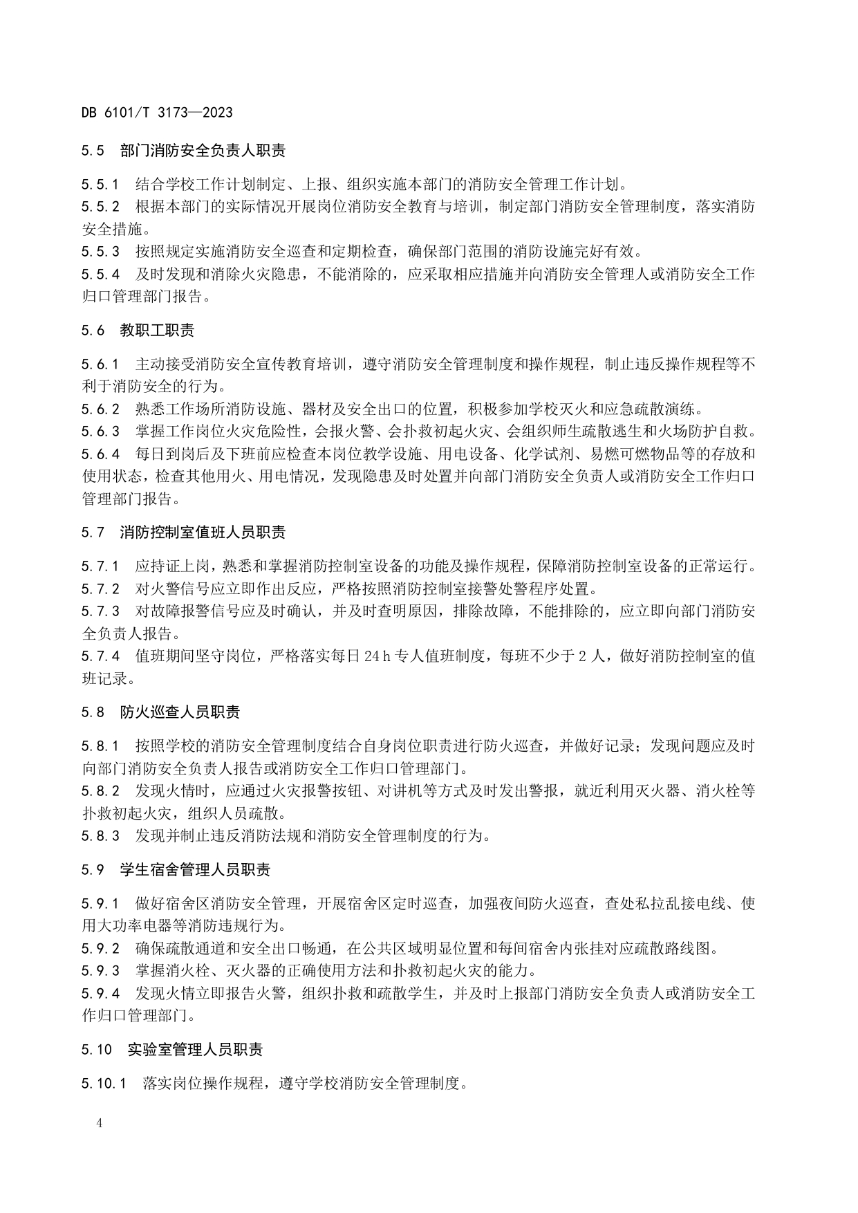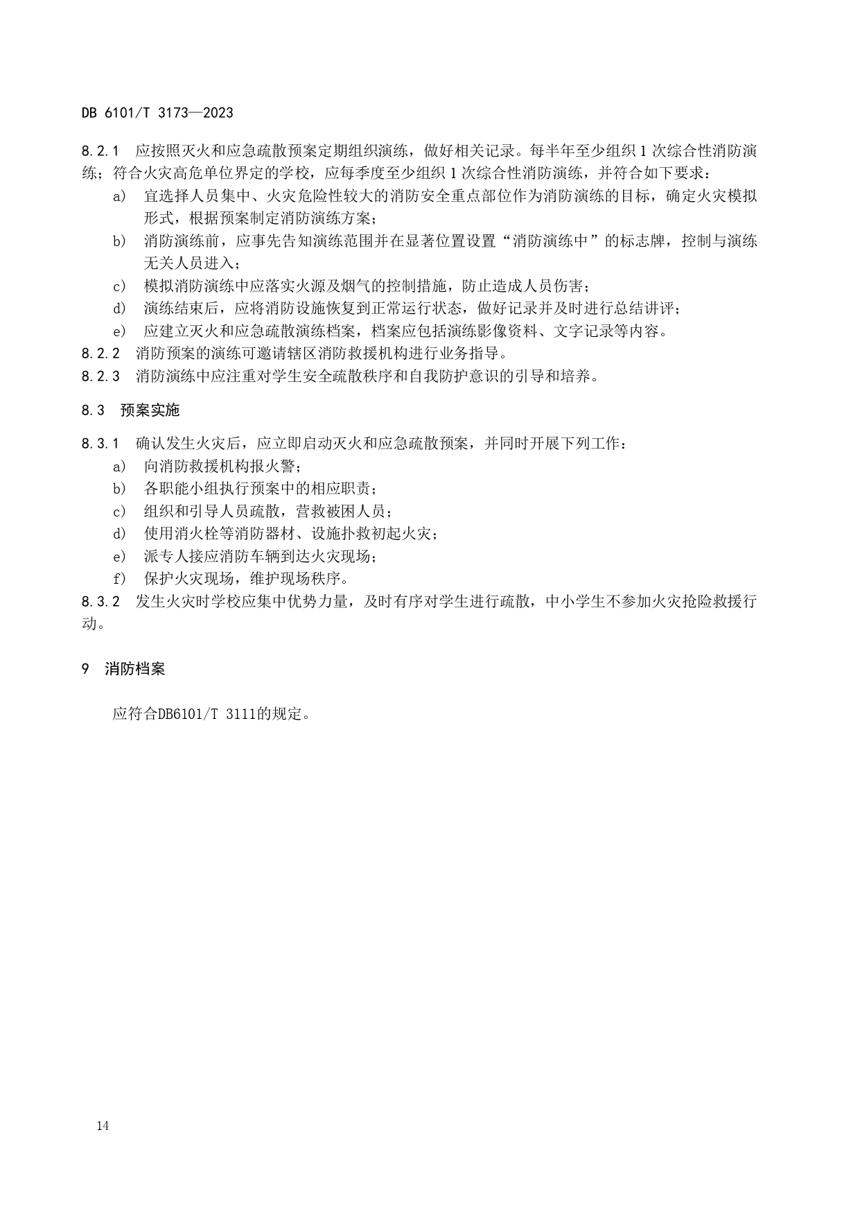 消防安全管理规范 中小学校DB6101/T 3173-2023