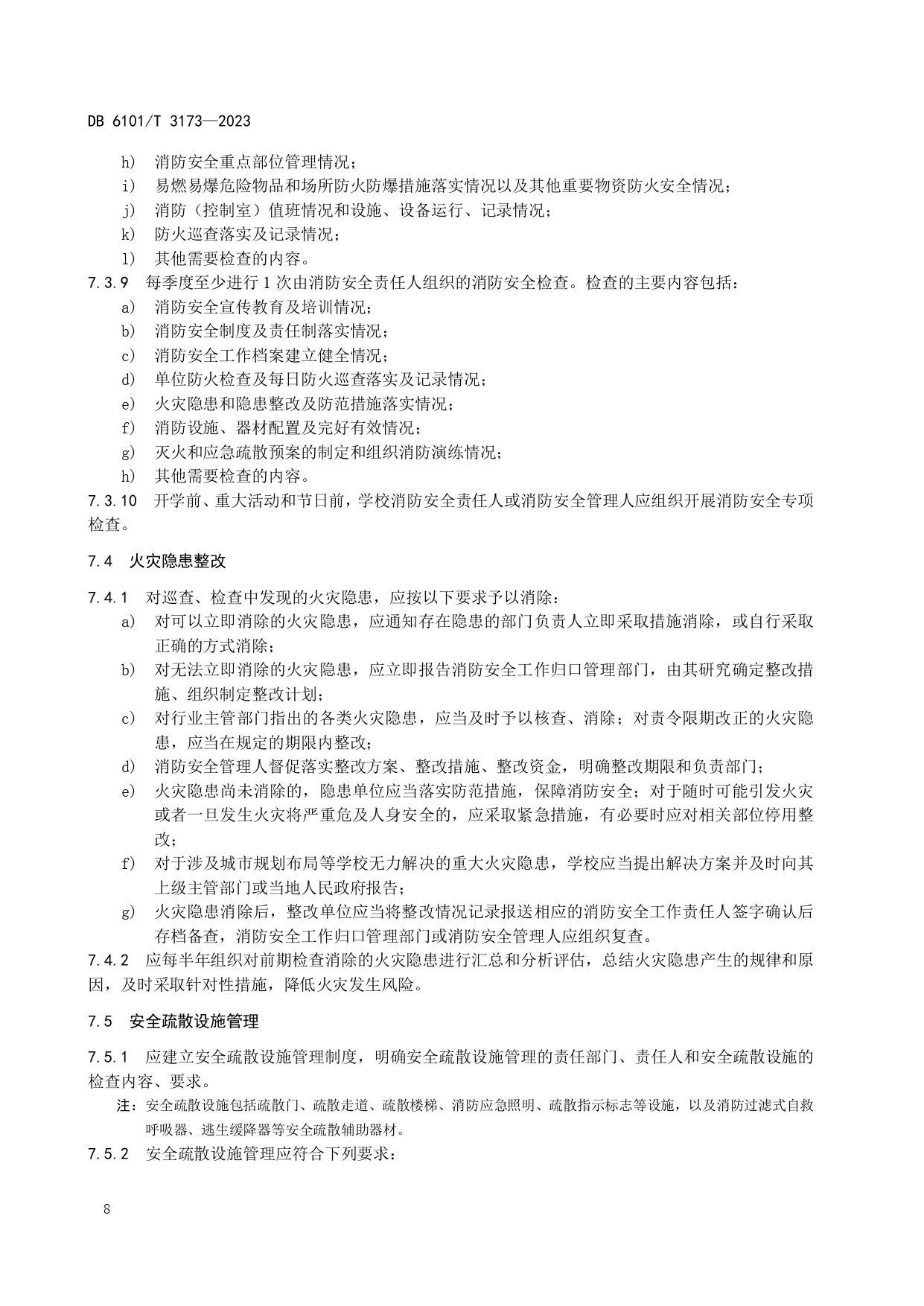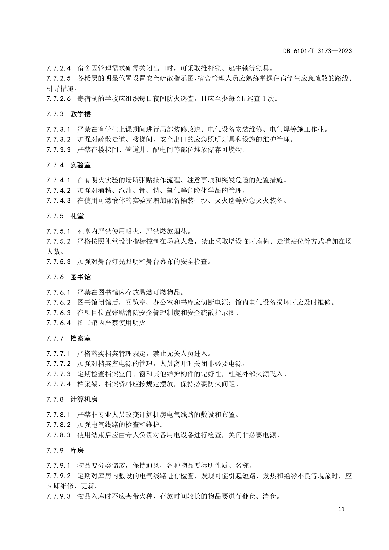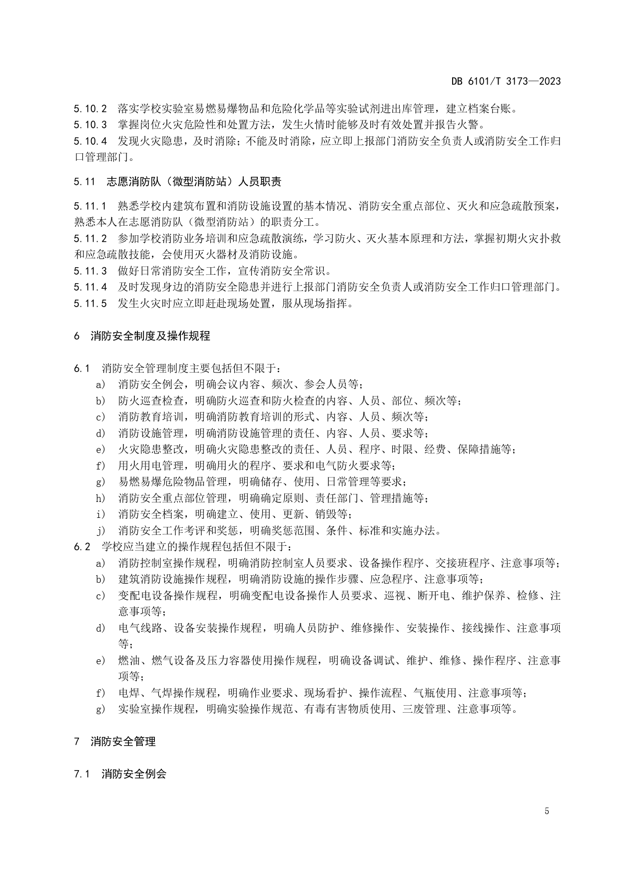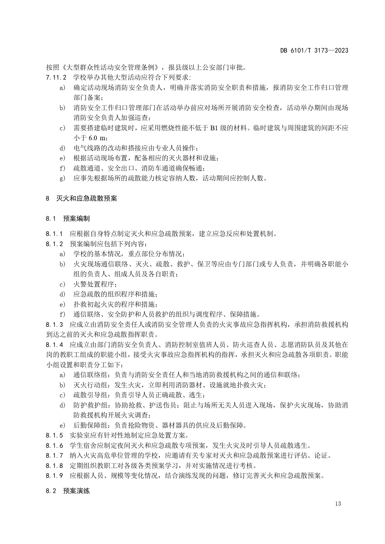 消防安全管理规范 中小学校DB6101/T 3173-2023