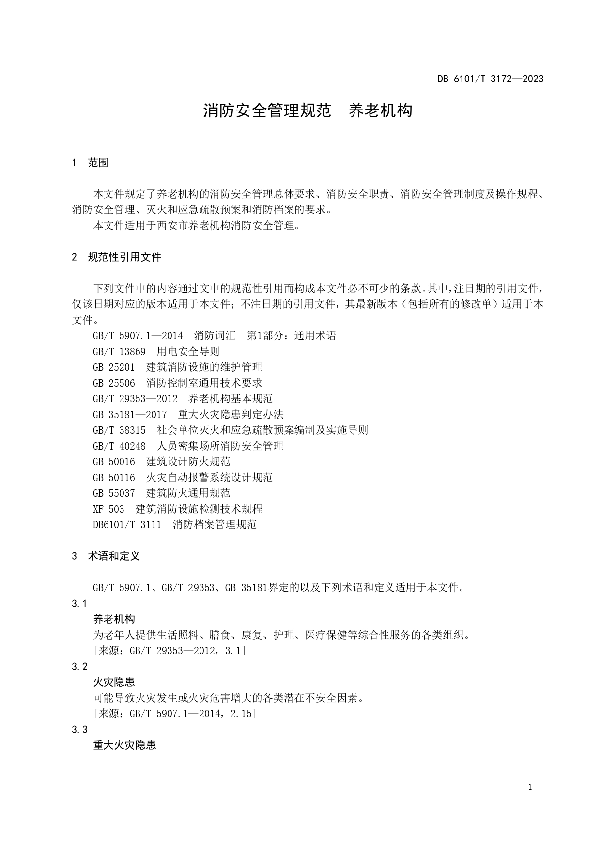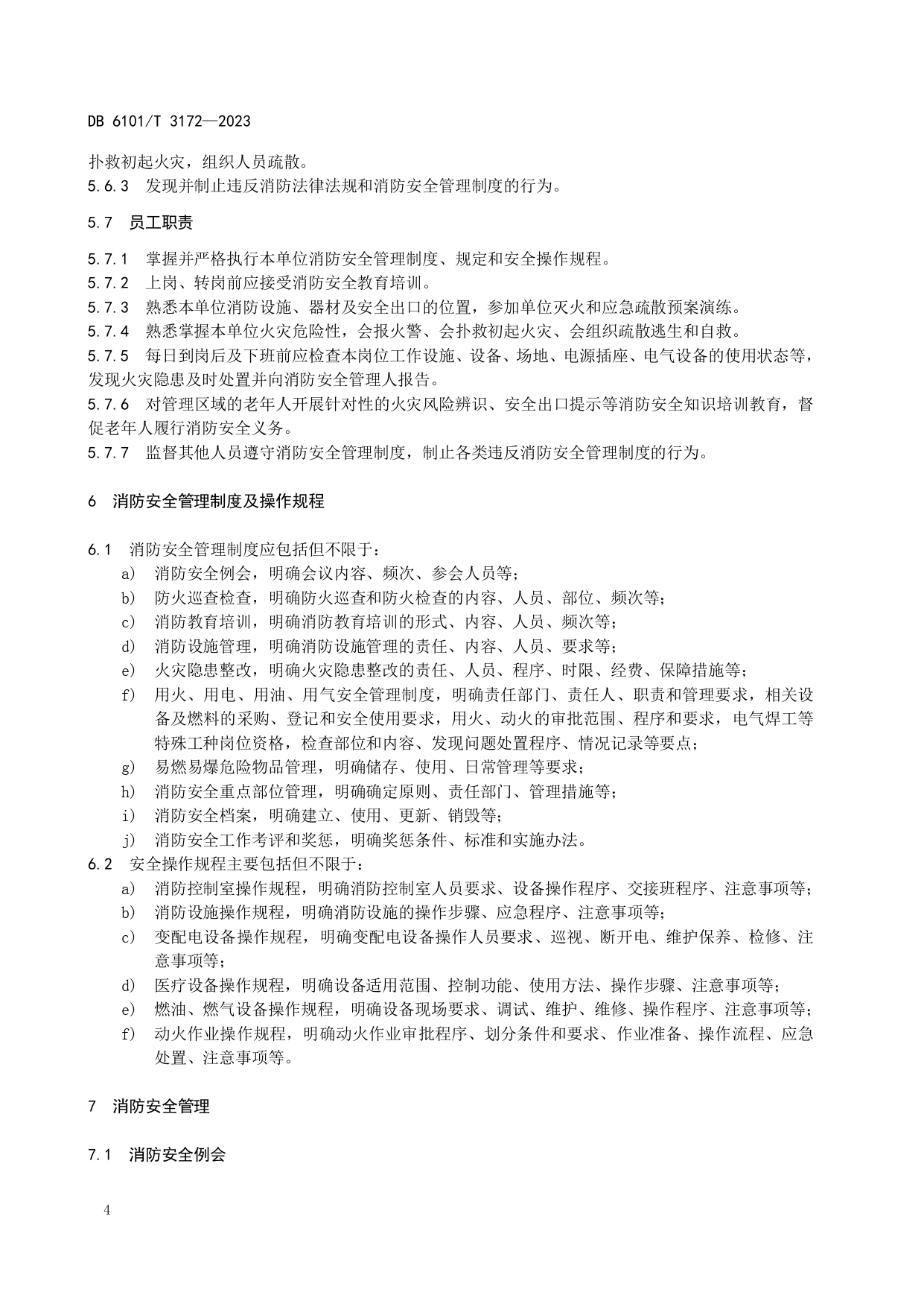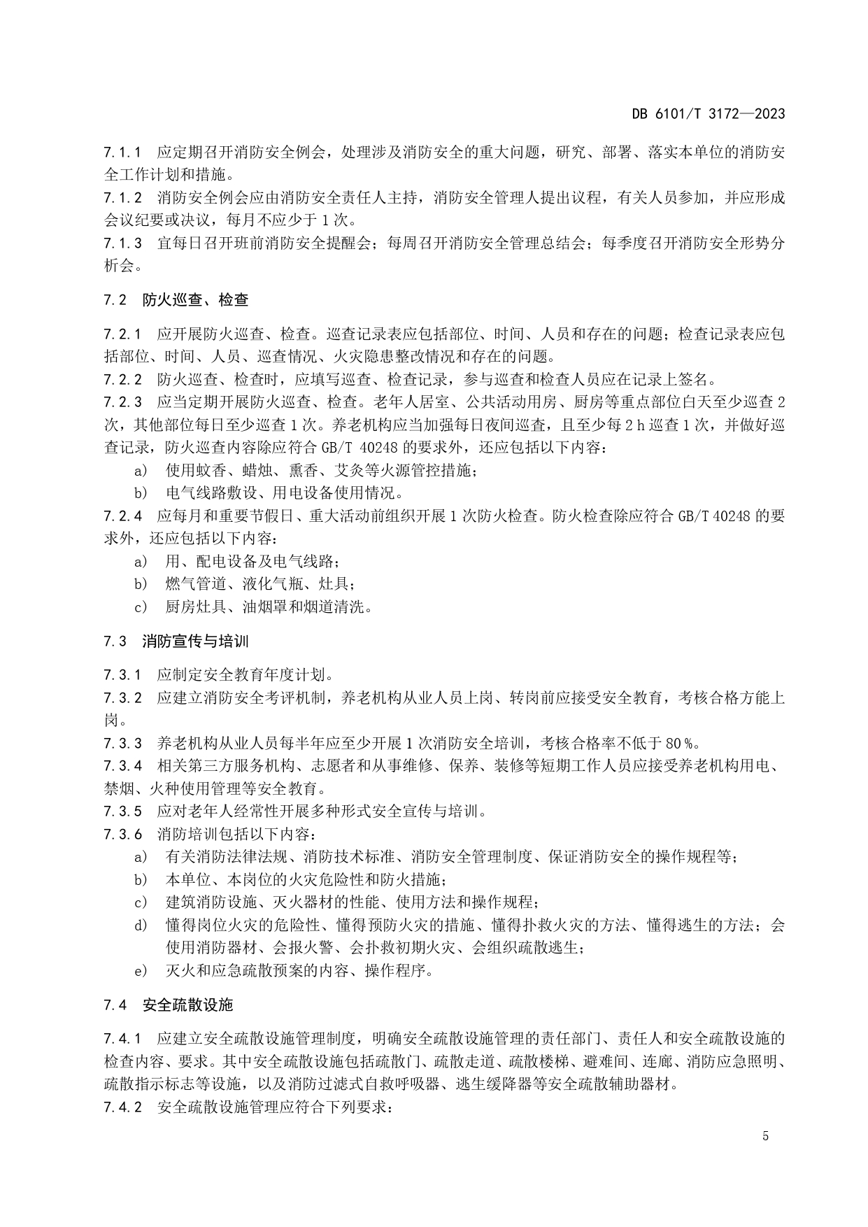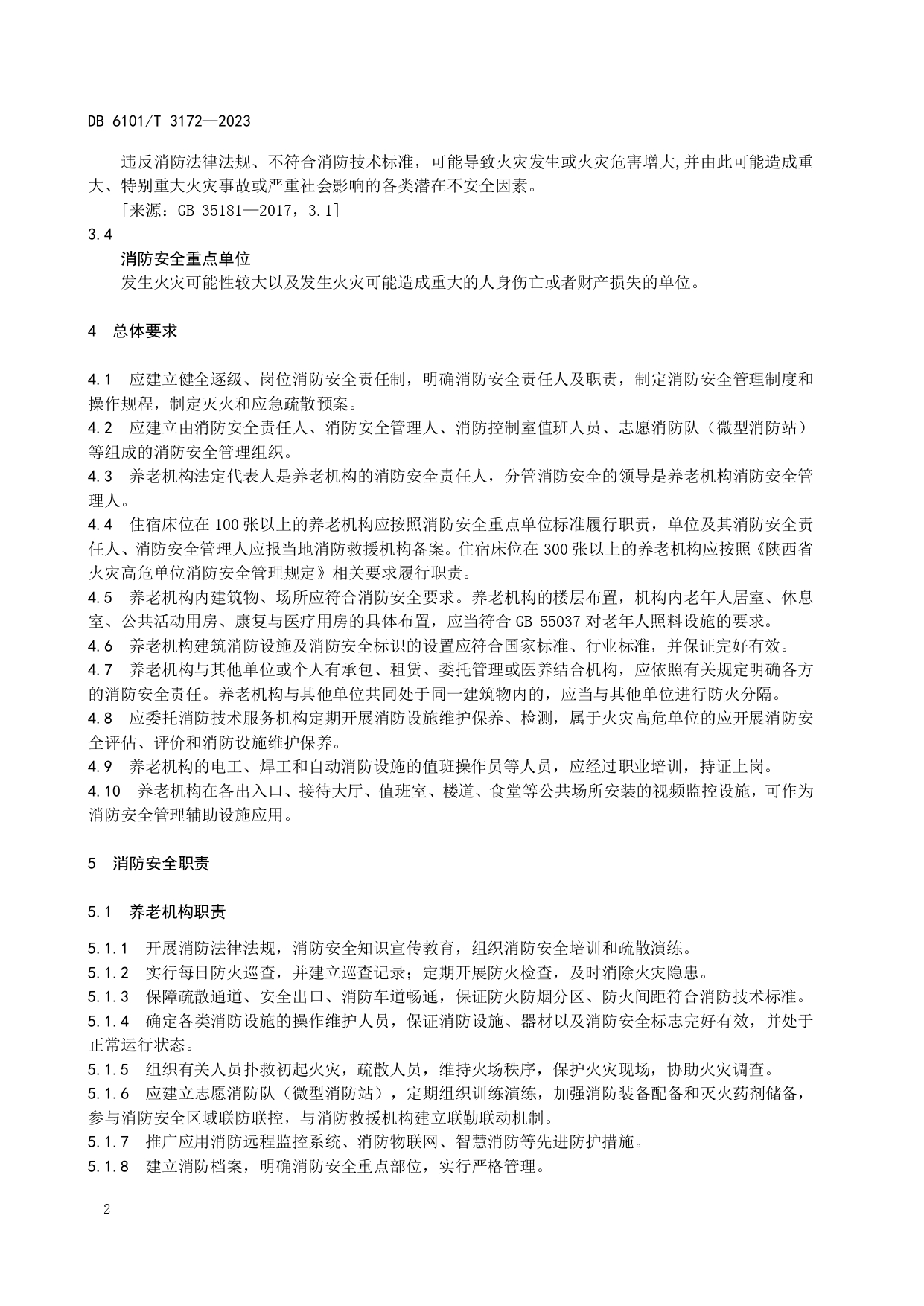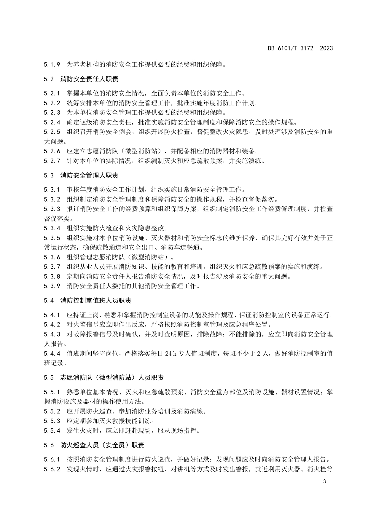 消防安全管理规范 养老机构DB6101/T 3172-2023