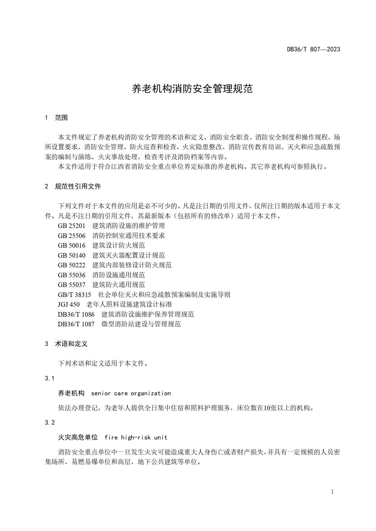 养老机构消防安全管理规范DB36/T 807-2023