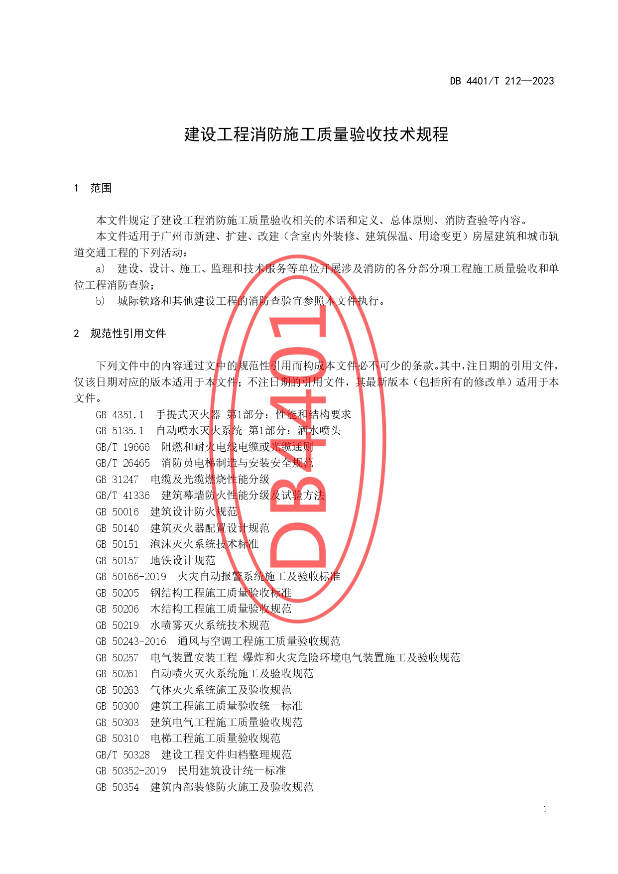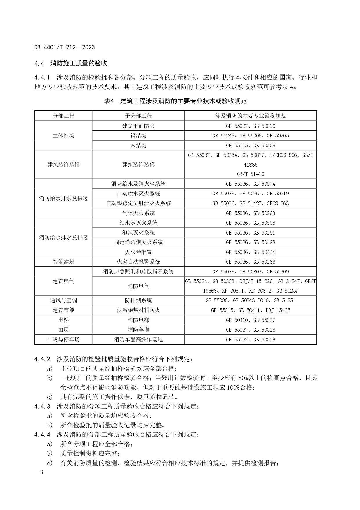 建设工程消防施工质量验收技术规程DB4401/T 212—2023