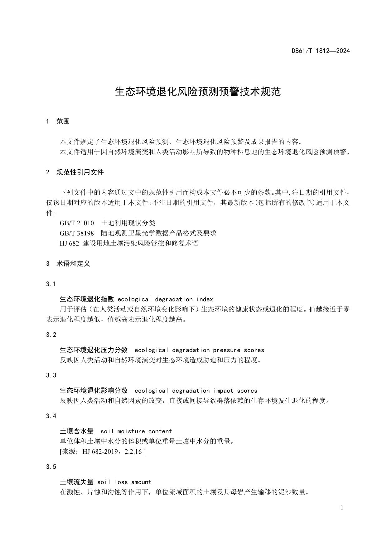 《生态环境退化风险预测预警技术规范》(DB61/T 1812-2024)